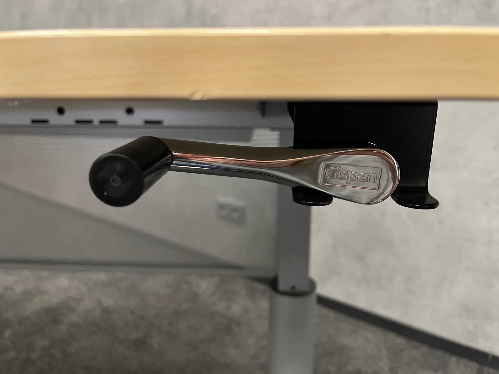 Kavel bestaande uit 1x Gispen slingerbureau v.v. handslinger, draadgoot en schaamshot. hoogte ca. 62 tot 86 cm. ---- 1x Sedus ergonomische bureaustoel v.v. 3D verstelbare armleggers, zithoogte en zitdiepte instelbaar, actief zitten, lock rugleuning, lendensteun, netweave rug bekleding. Nee Merk: Gispen/ Sedus Slingerbureau: true Lengte: 220cm Breedte: 100cm Hoogte: 86cm