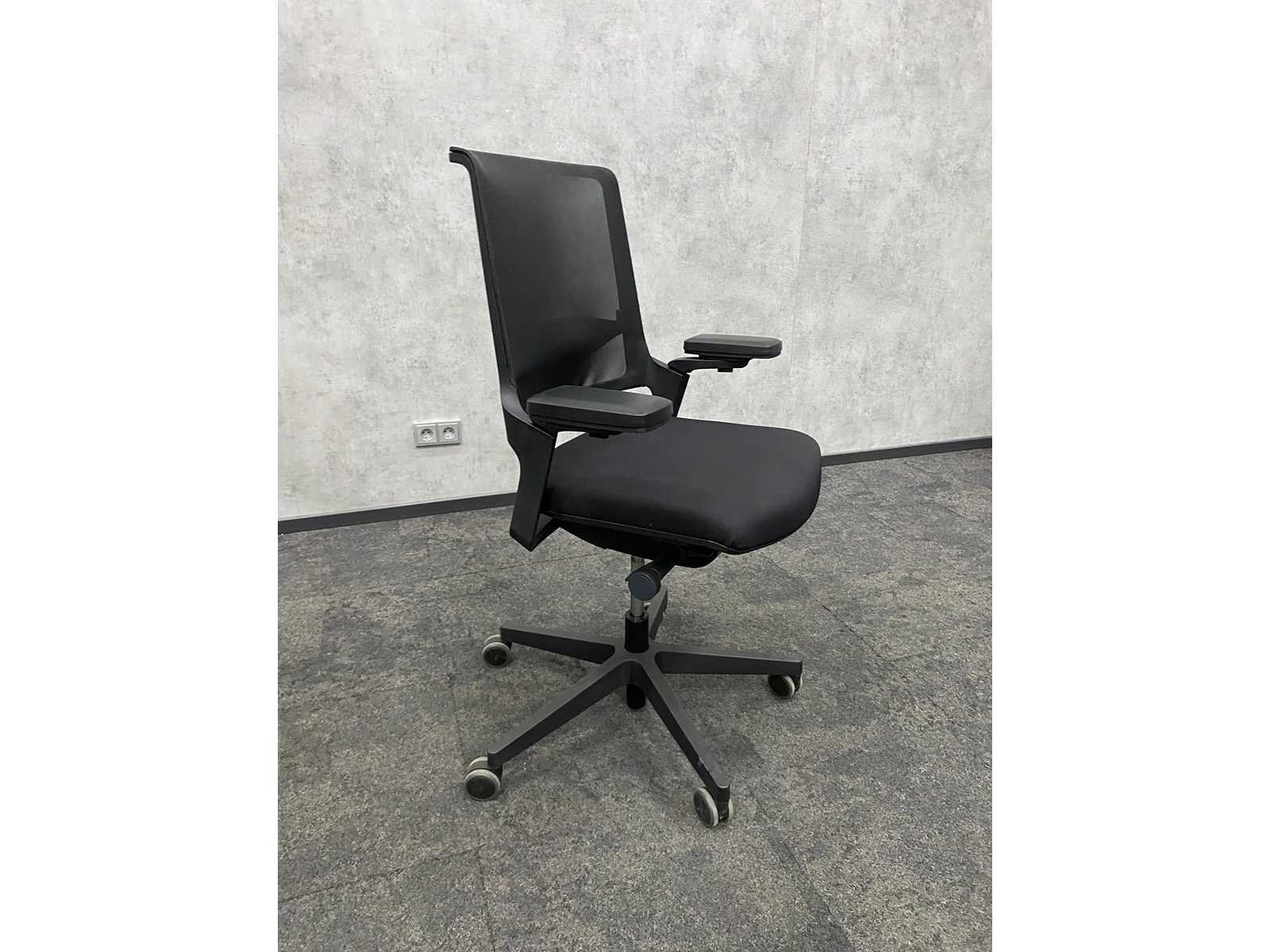 V.v. 4D verstelbare armleggers, zithoogte en zitdiepte instelbaar, actief zitten, zwart netweave rugbekleding, zwart gestoffeerd zitvlak, lendensteun. Nee Merk: Interstuhl Movy Kleur: zwart