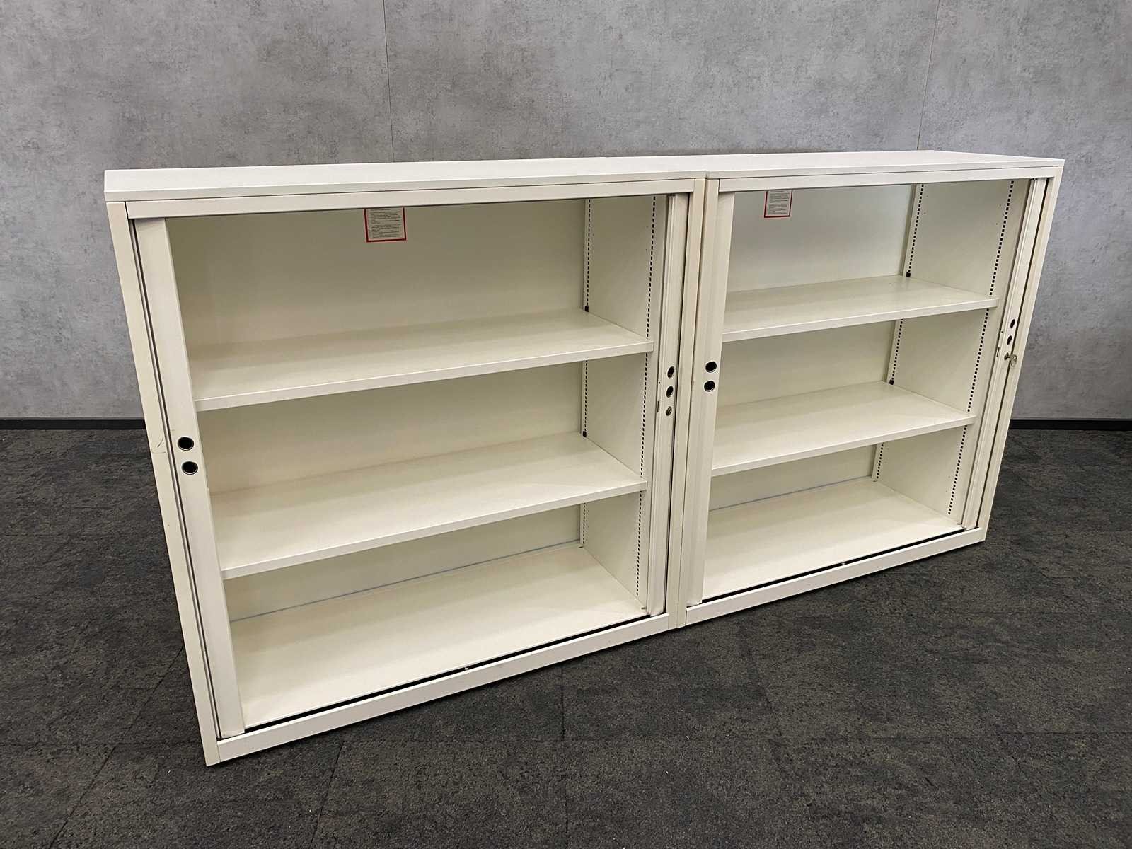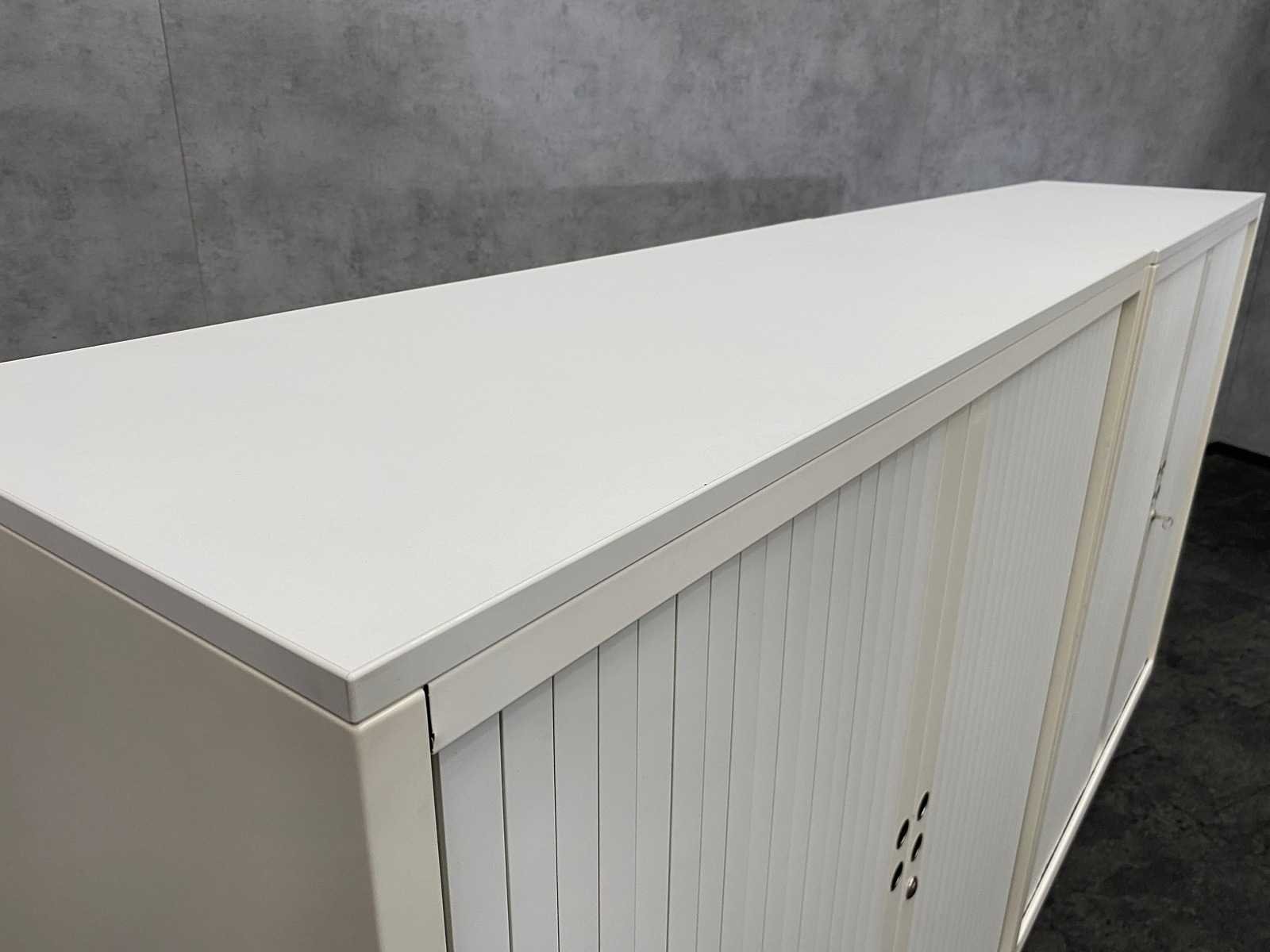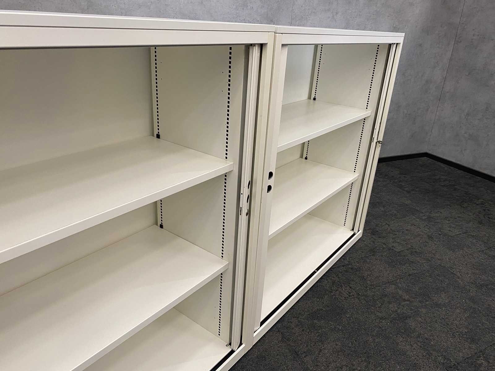 Afm. per kast ca. 123x120.5x47.5 cm. -- v.v. 2 verstelbare legborden per kast -- 1x met sleutel, 1x zonder sleutel Nee Merk: 2x Gispen Kleur: wit Materiaal: metaal, kunststof