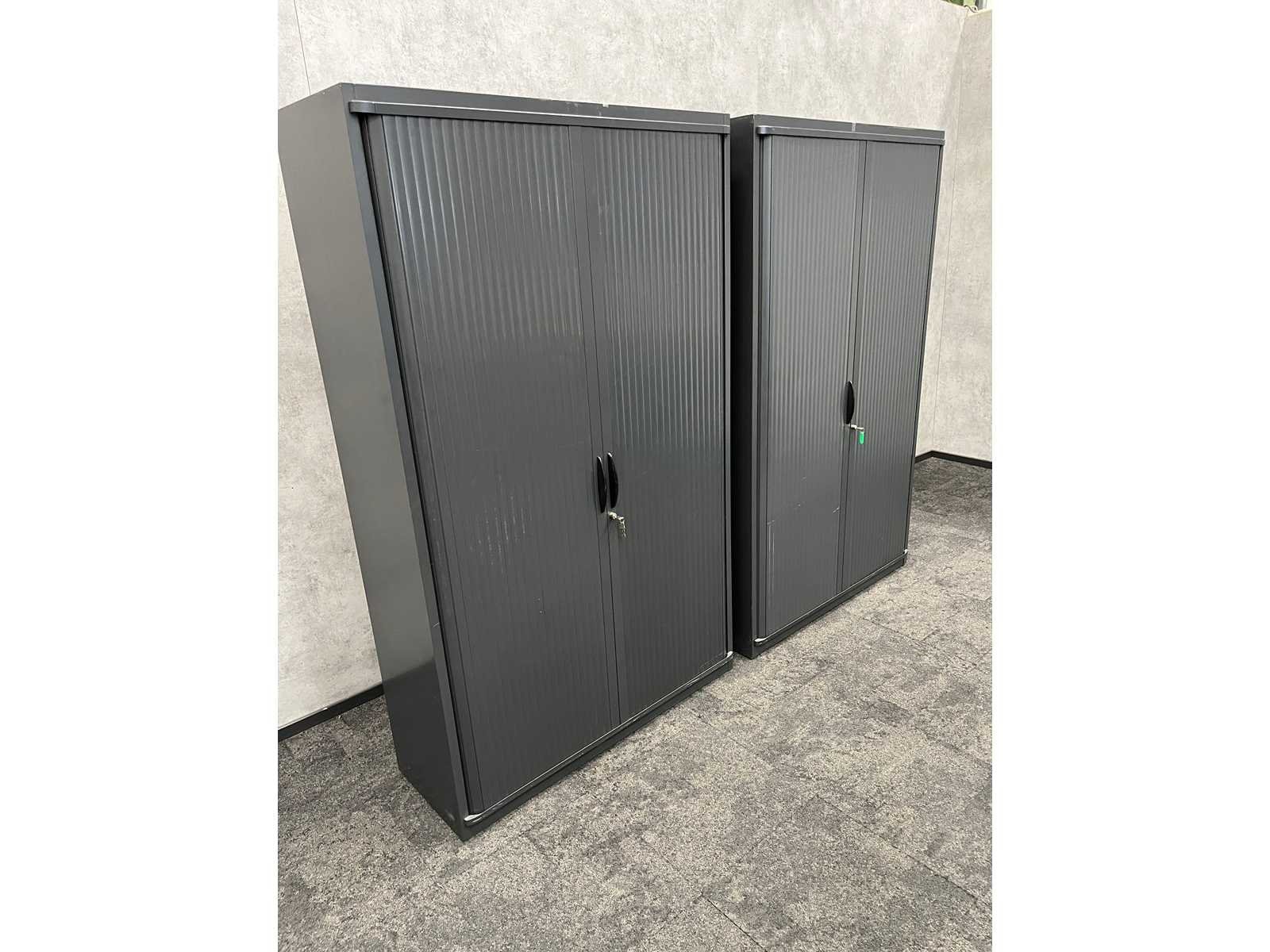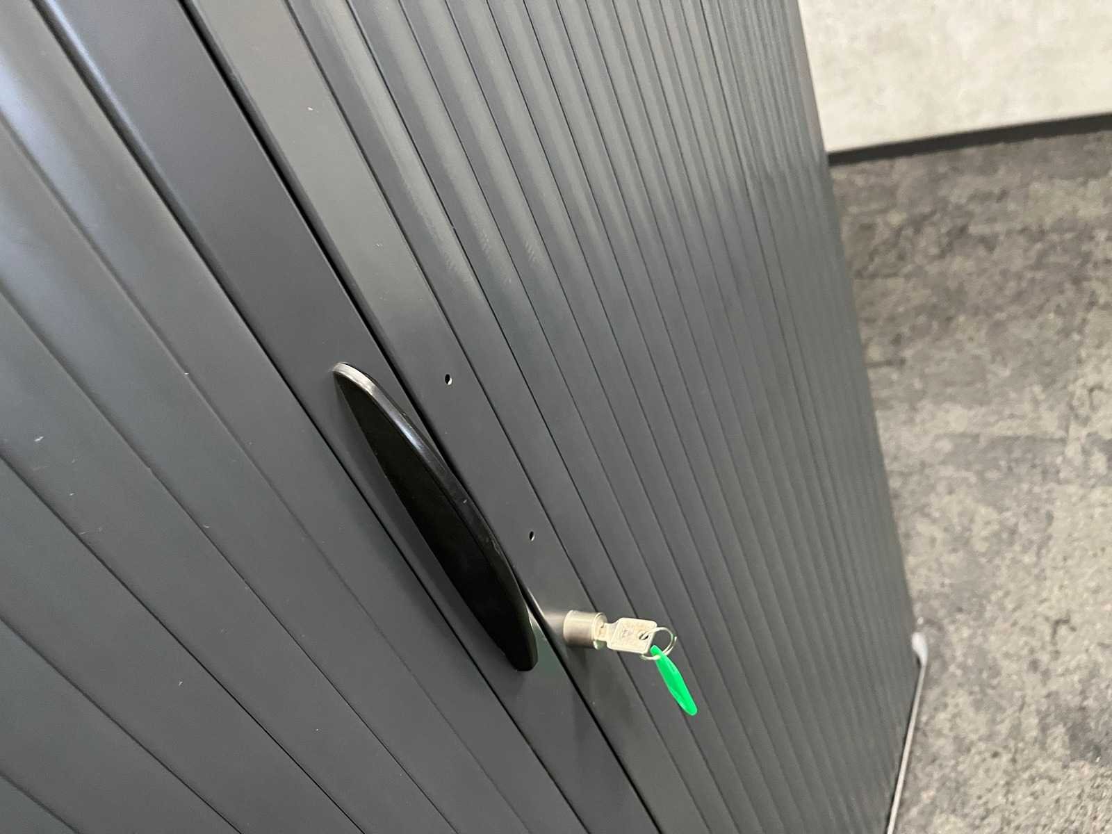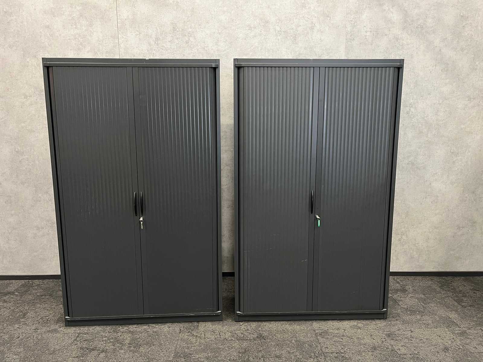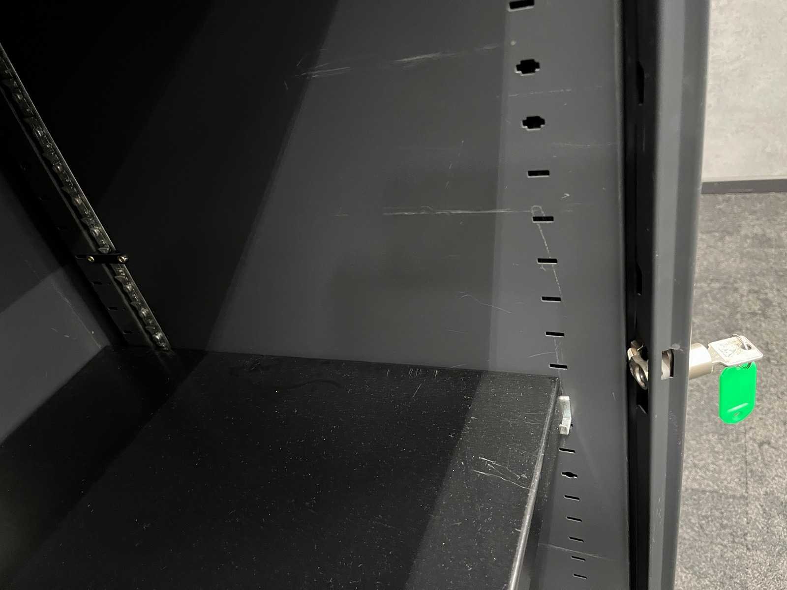 V.v. 4 verstelbare legborden, met sleutels. let op 1 kast mist 1 handgreep. Nee Kleur: antraciet Breedte: 120cm Hoogte: 198cm Diepte: 43cm Materiaal: metaal