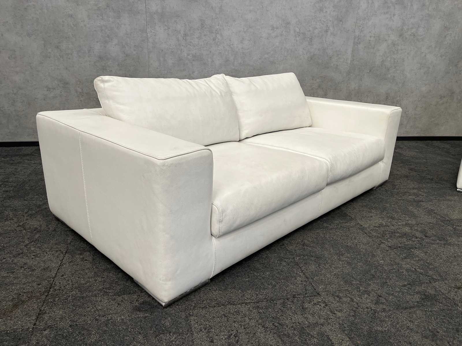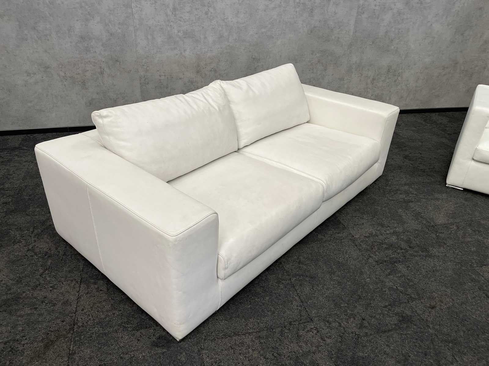 Afm. sofa ca. hxbxd 75x205x105 cm. zithoogte ca. 38 cm. -- Afm. fauteuil ca. hxbxd 63x78x78 cm. zithoogte ca. 35 cm. Nee Kleur: wit Materiaal: kunstleer