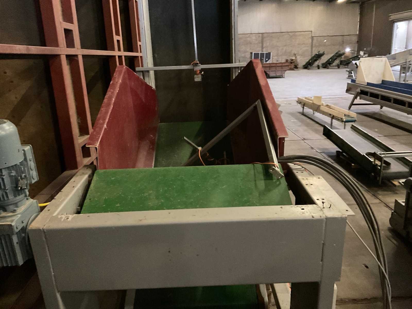 Band afm. ca. 2500x900 mm No Merk: ERC Machinery Bouwjaar: 2011 Aansluiting: 400V Kratafmeting l: 1600mm Kratafmeting b: 900mm Transportband: true Totale afmeting L: 1500mm Totale afmeting Breedte: 3000mm Totale afmeting Hoogte: 3000mm