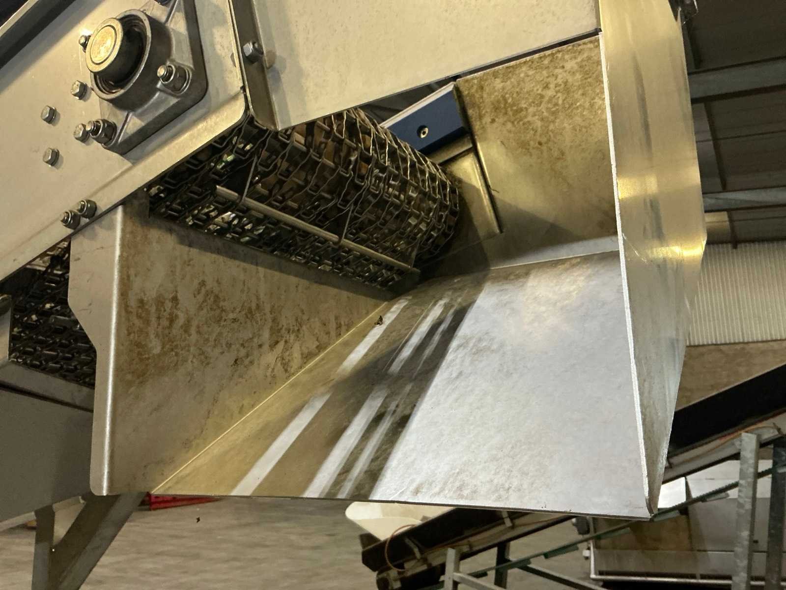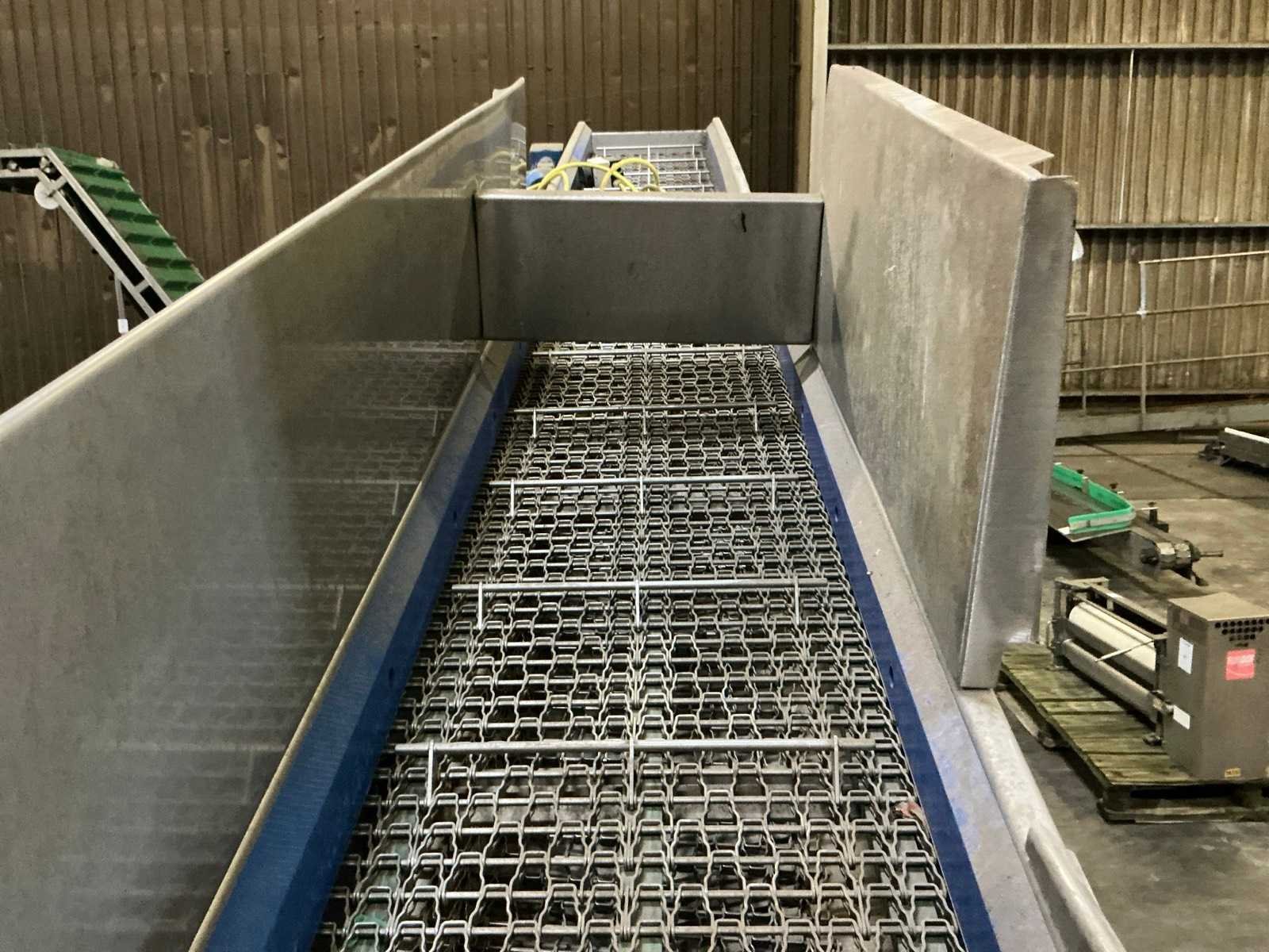 Verrijdbaar. Voorzien metalen band. 1600mm hoogte invoer, uitvoer circa 1900mm Nee Bouwjaar: 2018 Band afm. l: 3600mm Band afm. b: 400mm Eigen gewicht: 460kg Totale afmeting L: 3950mm Totale afmeting Breedte: 880mm Totale afmeting Hoogte: 2300mm
