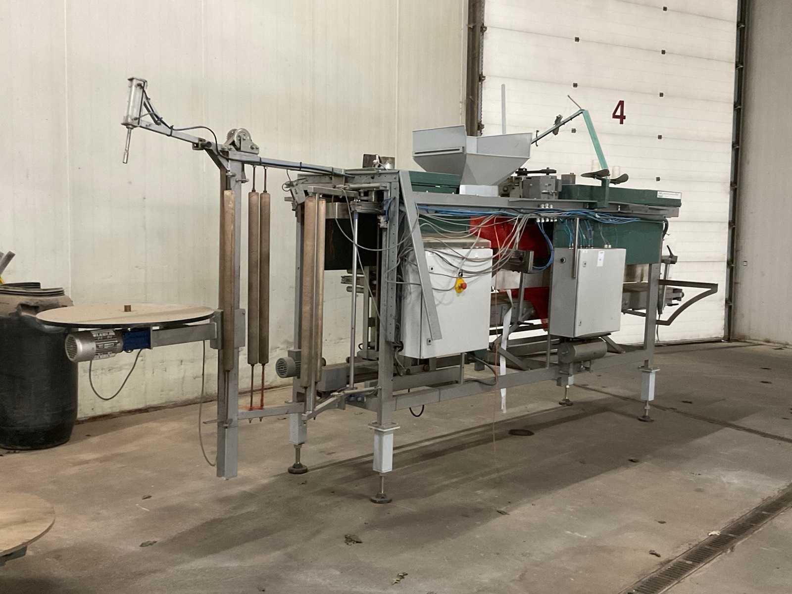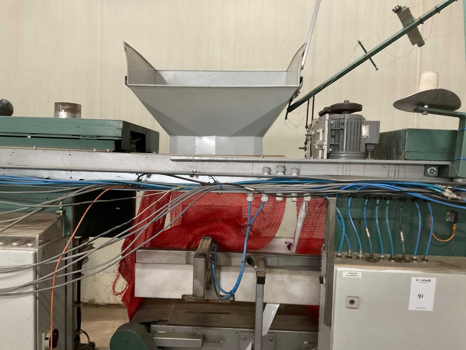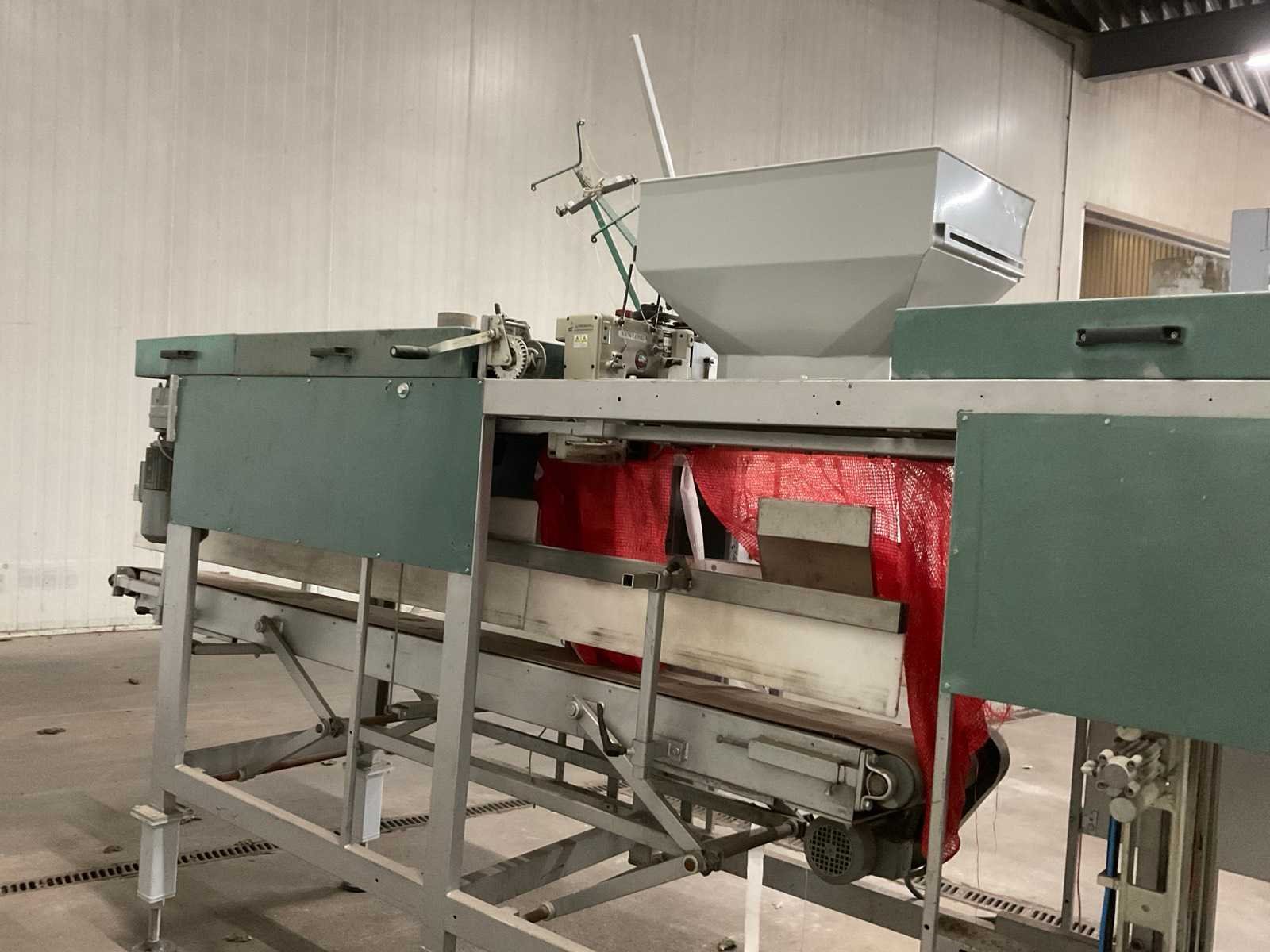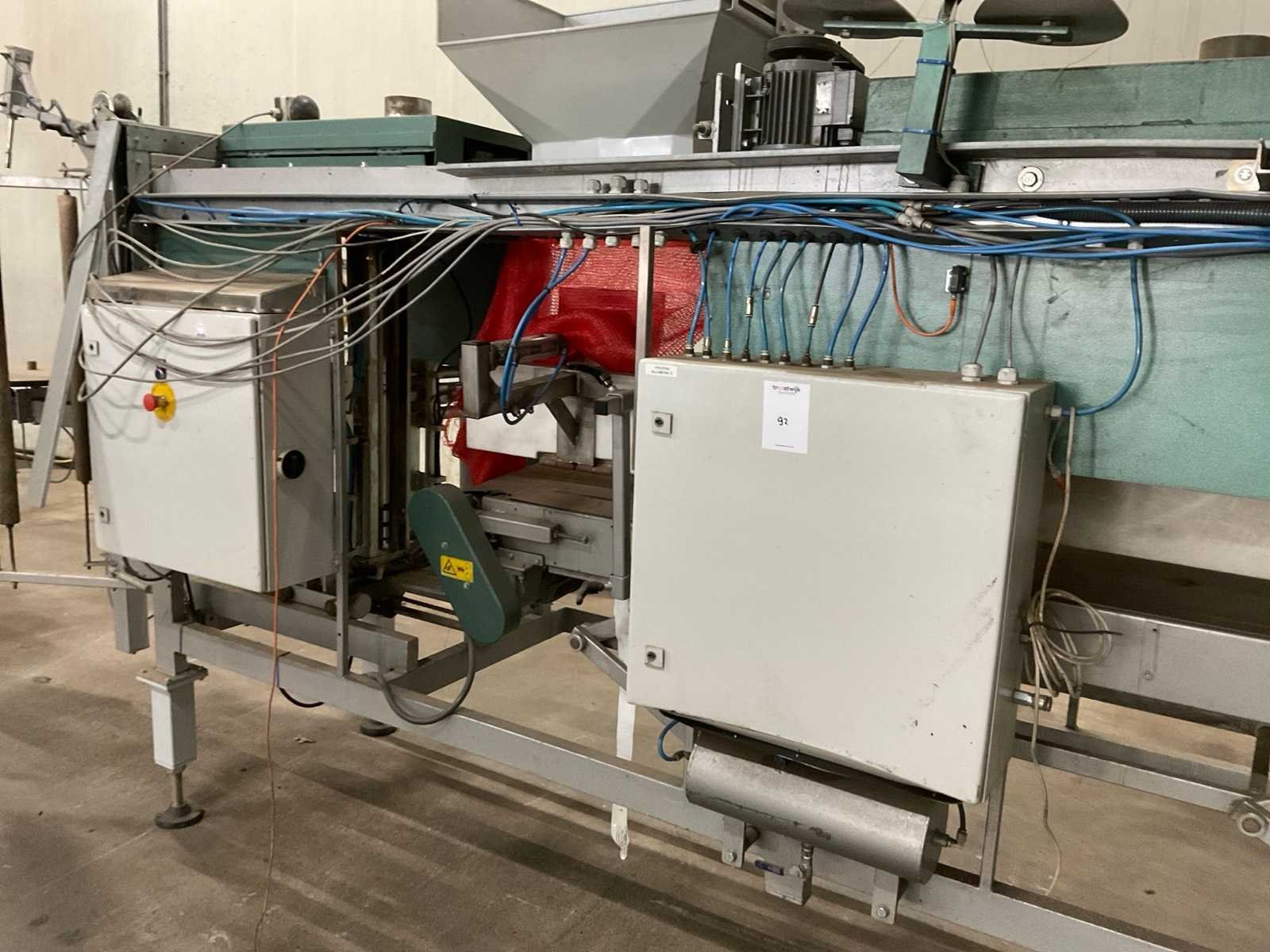 Netverpakkingsmachine; v.v. “NEWLONG” industriële naaikop; type DS-9P; bandlengte ca. 3800 mm; bandbreedte ca. 325 mm; v.v. beweegbare vulopening Nee Merk: Pro-Pak Type: BSM-I Bouwjaar: 1999 Totale afmeting L: 5600mm Totale afmeting Breedte: 1300mm Totale afmeting Hoogte: 2400mm