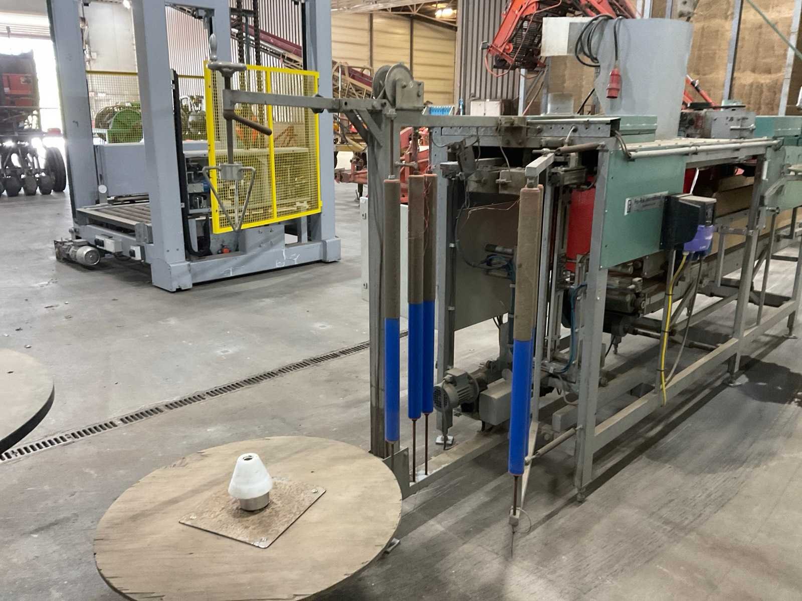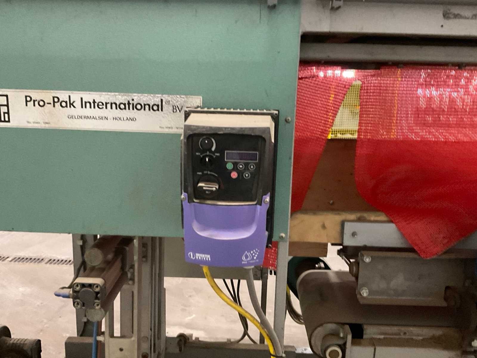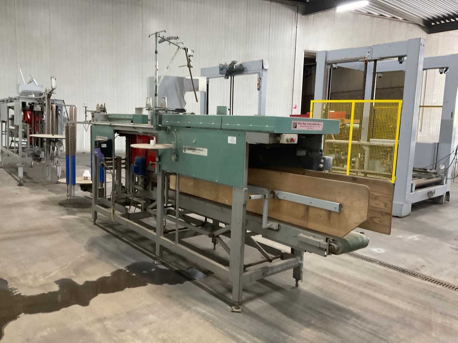Netverpakkingsmachine; v.v. “FISCHBEIN” industriële naaikop; type 100; bandlengte ca. 3000 mm; bandbreedte ca. 325 mm; v.v. beweegbare vulopening Nee Merk: Pro-Pak Type: BSM-I Bouwjaar: 1992 Totale afmeting L: 5600mm Totale afmeting Breedte: 1300mm Totale afmeting Hoogte: 2400mm