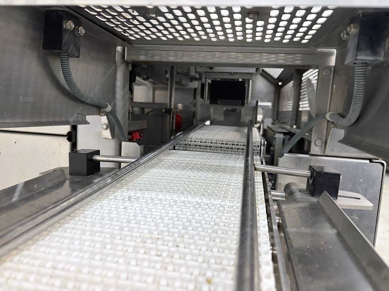 Nee Merk: Multivac Type: T350 Aansluiting: 400V Totale afmeting L: 3870mm Totale afmeting Breedte: 1150mm Totale afmeting Hoogte: 2050mm