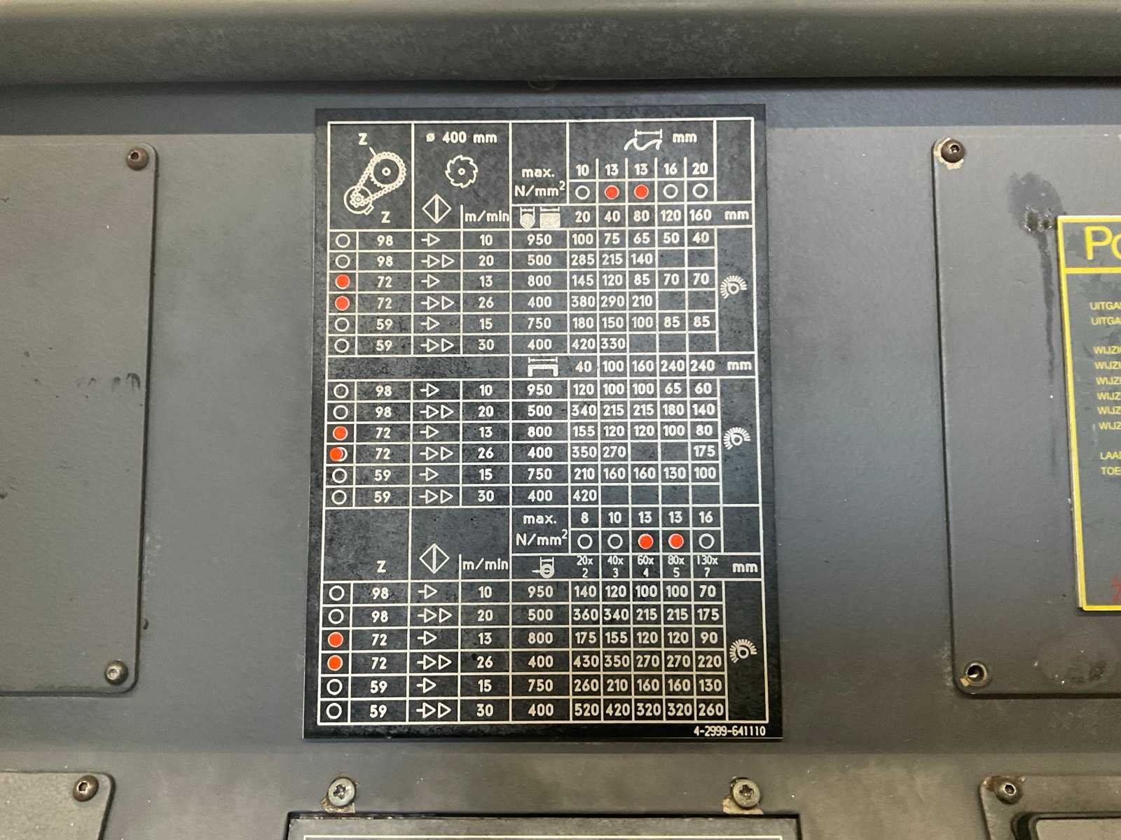 Voorzien van Positron S frequentie regeling Nee Merk: Kaltenbach Type: KKS 401 H Bouwjaar: 1995 Serienummer: 117748 Zaagblad Ø: 400mm Verstekhoek max.: 45° Tafel afmeting l: 600mm Tafel afmeting b: 600mm Digitale uitlezing: true Aansluiting: 400V Afmeting l: 1250mm Afmeting b: 1300mm Afmeting h: 2200mm