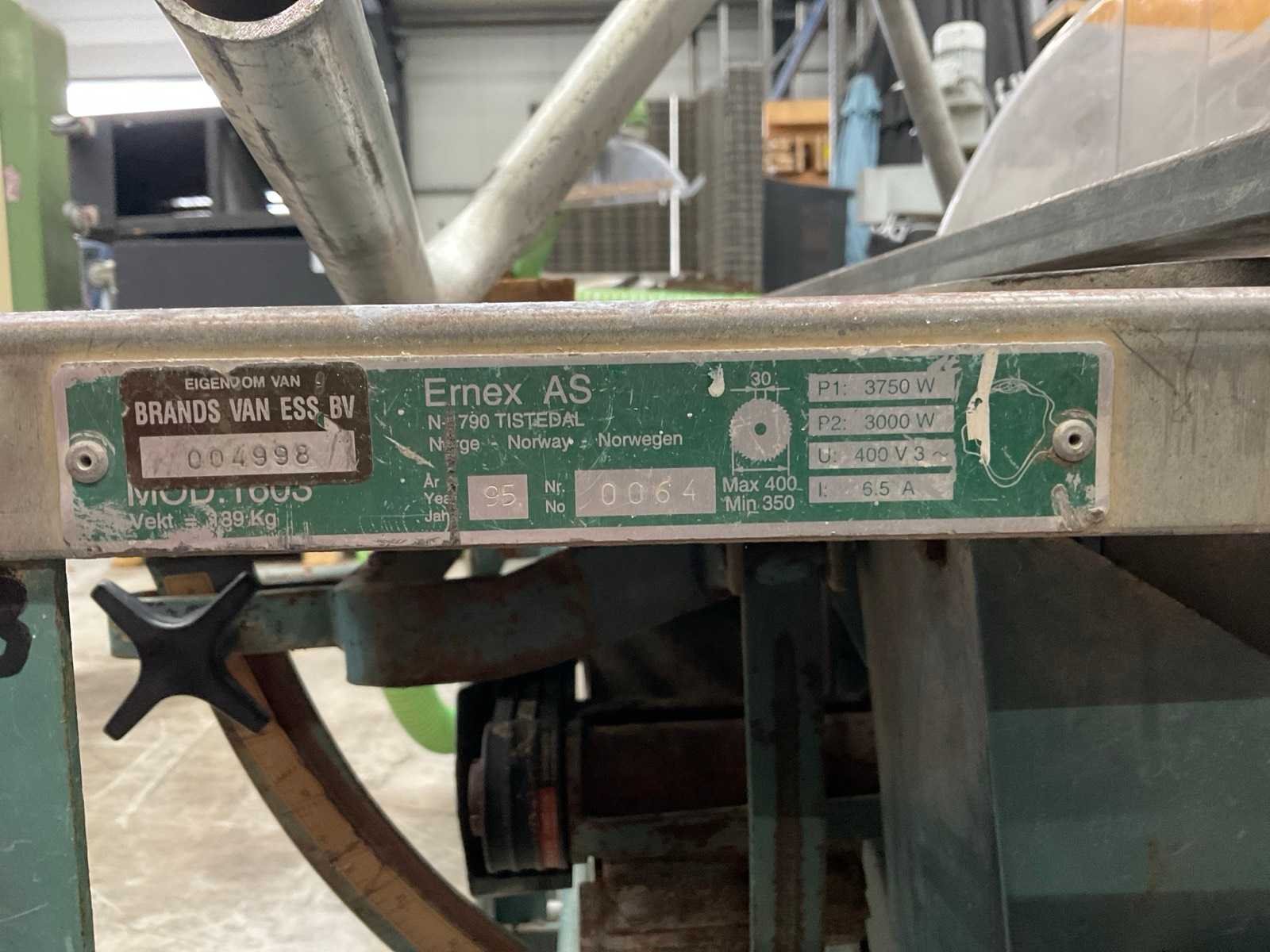 Zaagblad ø max 400mm - min 350mm, zonder zaagblad Nee Merk: Ernex Type: 1603 Serienummer: 0064 Bouwjaar: 1995 Spanning: 400 Vermogen: 3750W