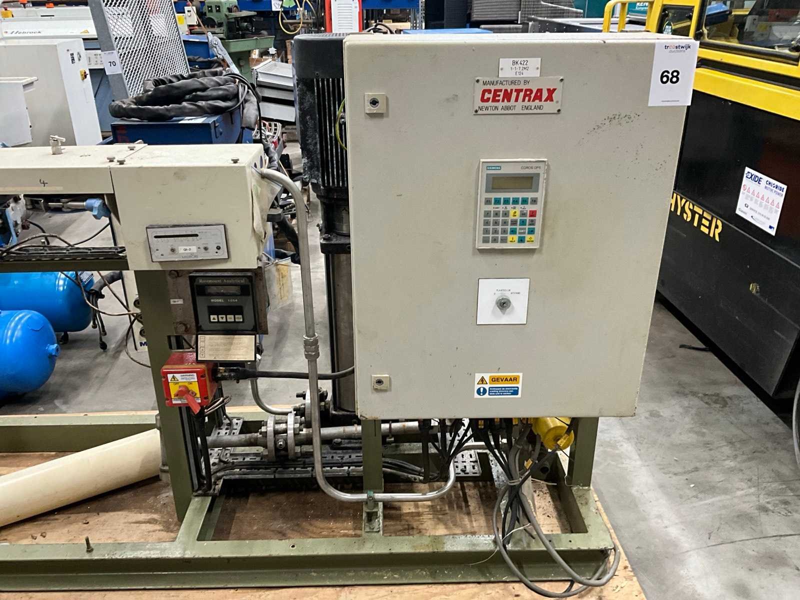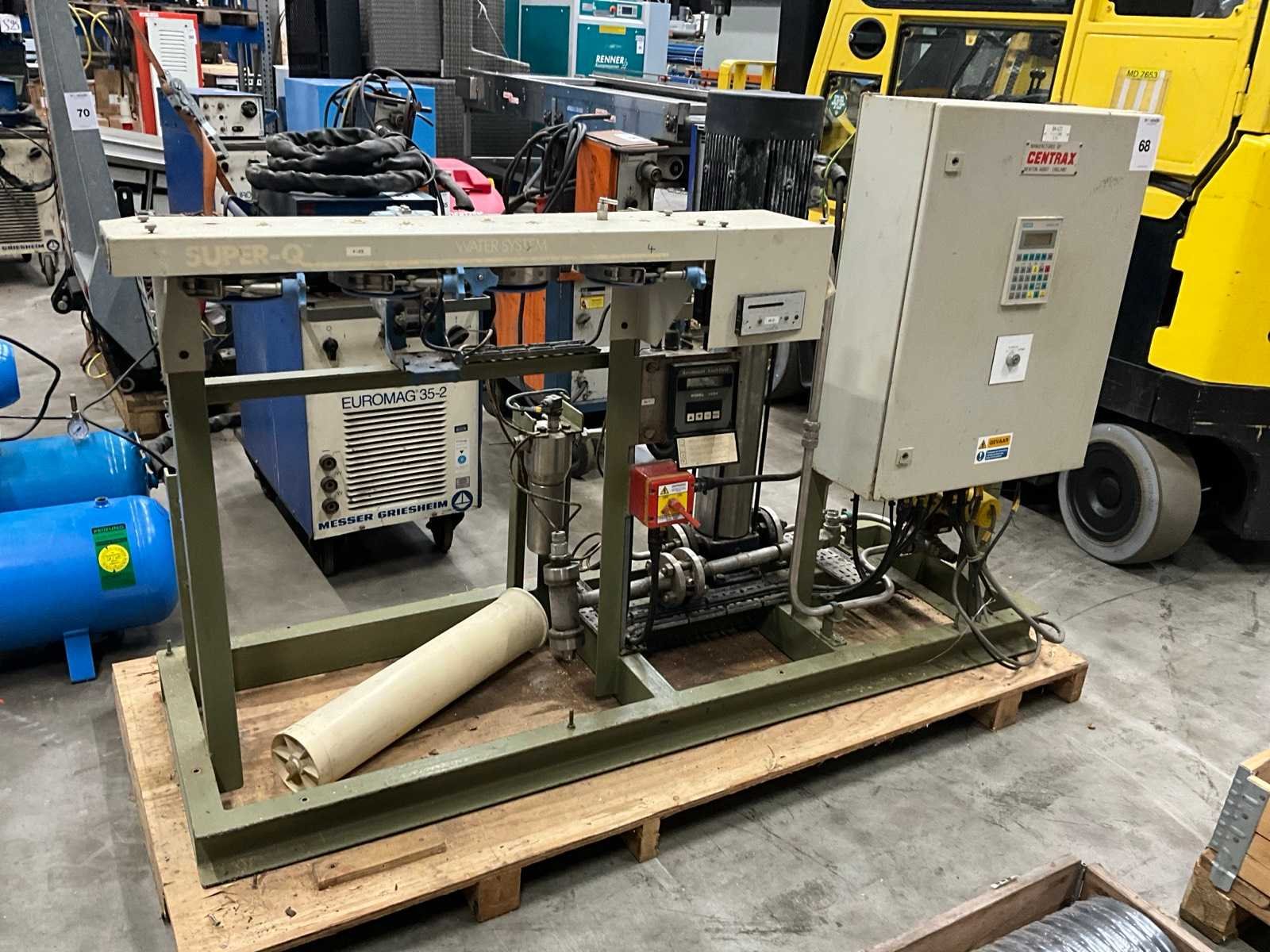 Industriële waterbehandelings- en doseerinstallatie “SUPER-Q Water System”, compleet op frame, voorzien van Centrax besturing en Rosemount Analytical meetapparatuur. Nee Merk: Super-Q Totale afmeting L: 1920mm Totale afmeting Hoogte: 1240mm Totale afmeting Breedte: 640mm