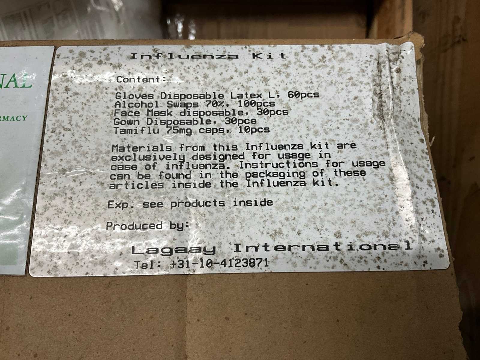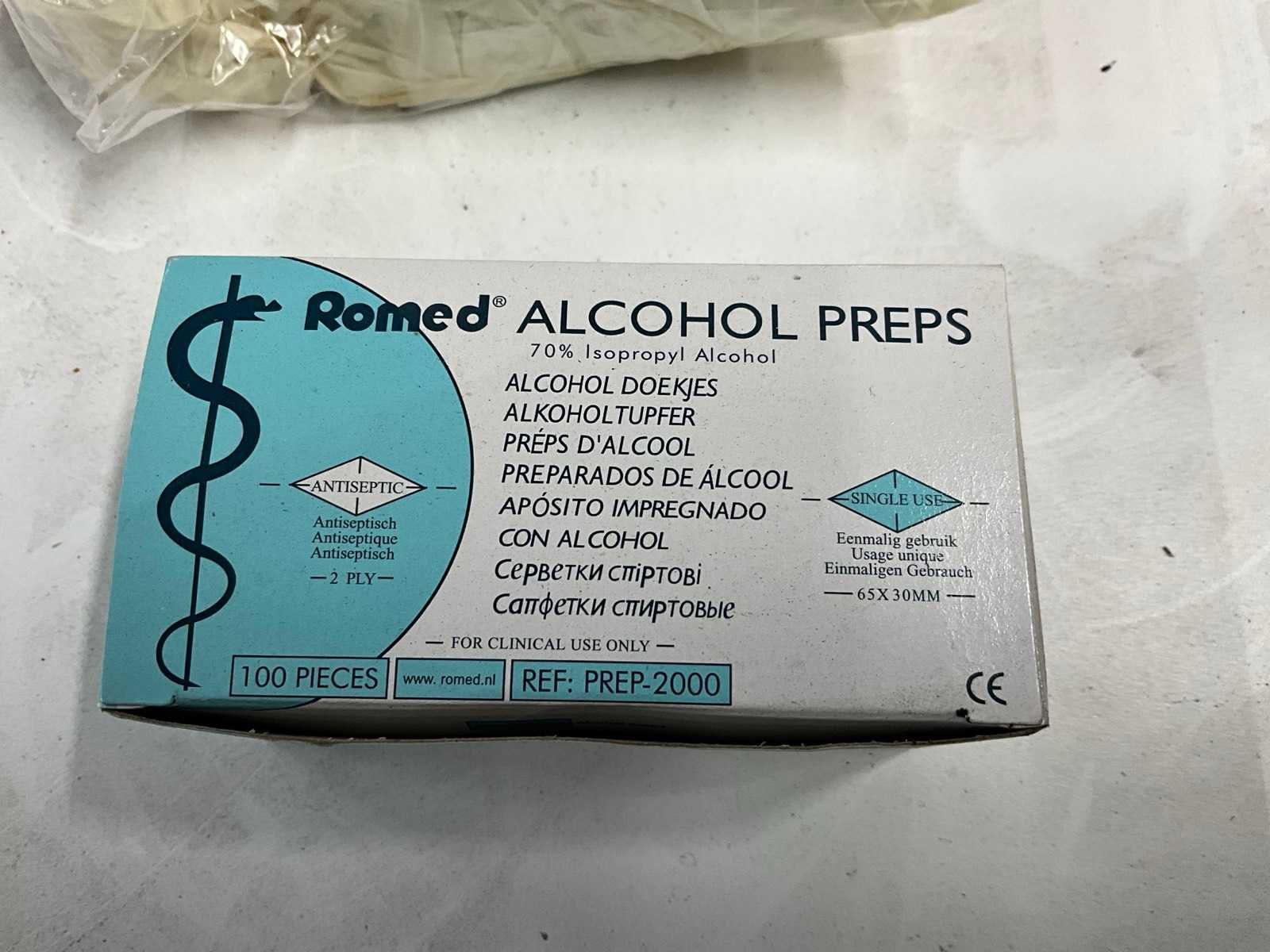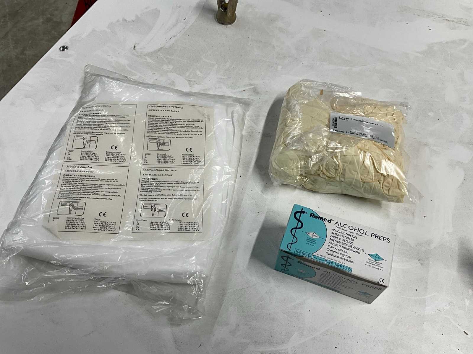 Waaronder: laboratorium jassen, alcohol doekjes, wegwerphandschoenen, in 13 dozen. Nee