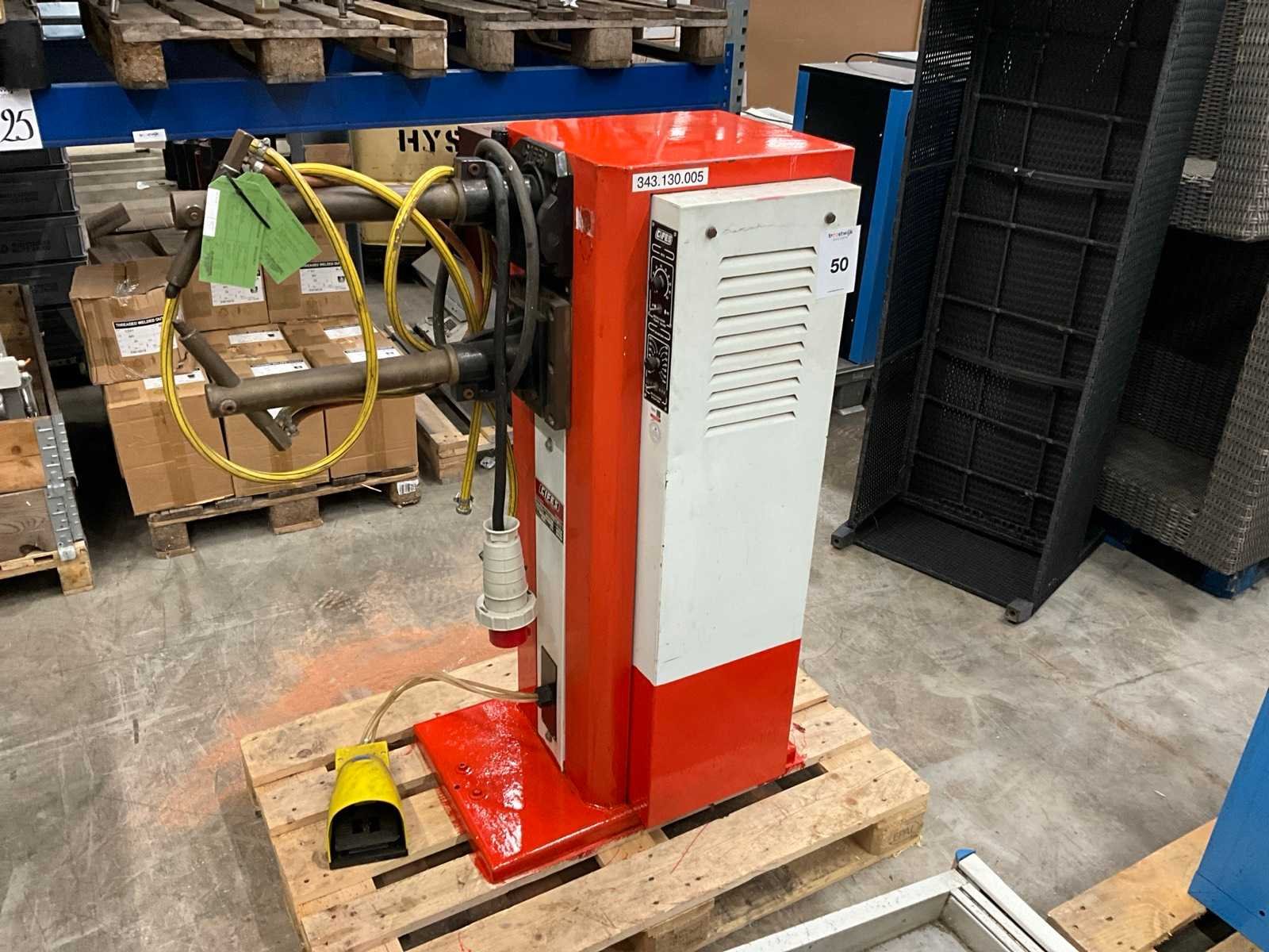 Nee Merk: Cifes Type: Star 25 Bouwjaar: 1991 Max. lasvermogen: 25kVA Uitlading: 570mm Voetbediening: true Aansluiting: 380V Afmeting l: 1000mm Afmeting b: 500mm Afmeting h: 1250mm