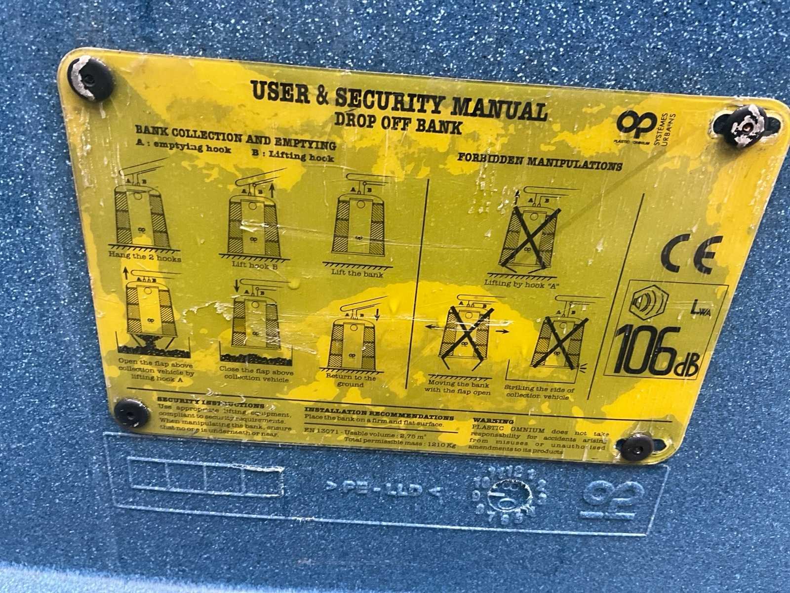 Nee Merk: Plastic Omnium Gebruikt voor papier en karton: true Totale afmeting L: 1300mm Totale afmeting Breedte: 2000mm Totale afmeting Hoogte: 2000mm