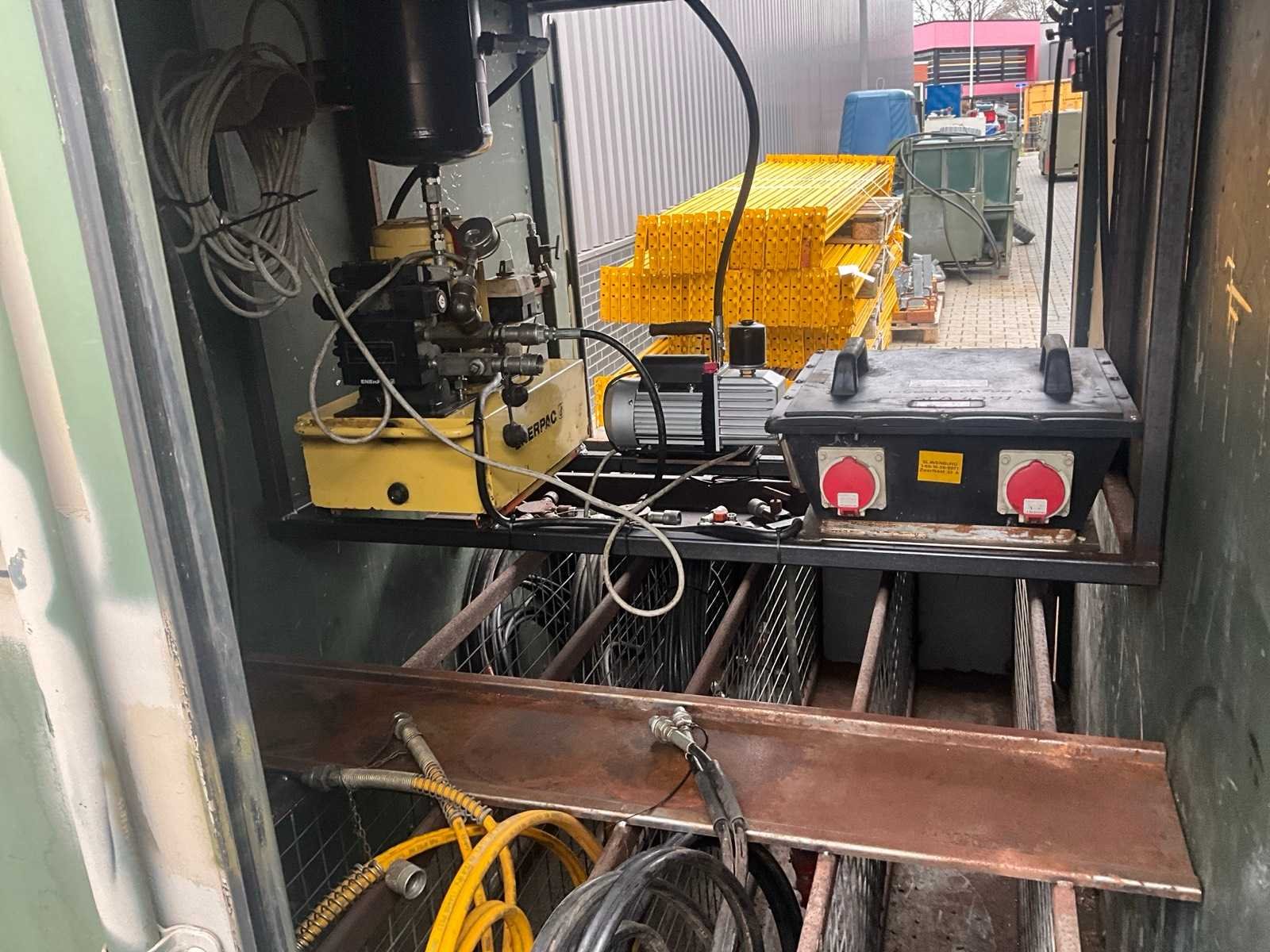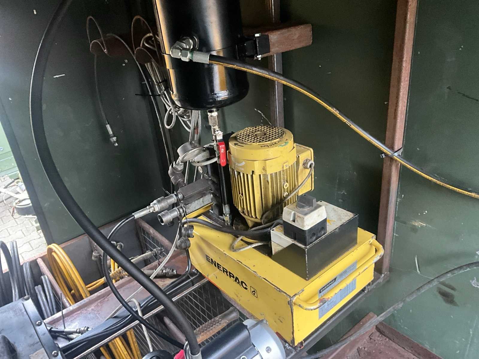 Voorzien van “Enerpac” hydrauliekpomp, vacuümpomp, verlichting, stroomverdeler, diverse hydrauliekslangen en verdeelkoppelingen. Nee