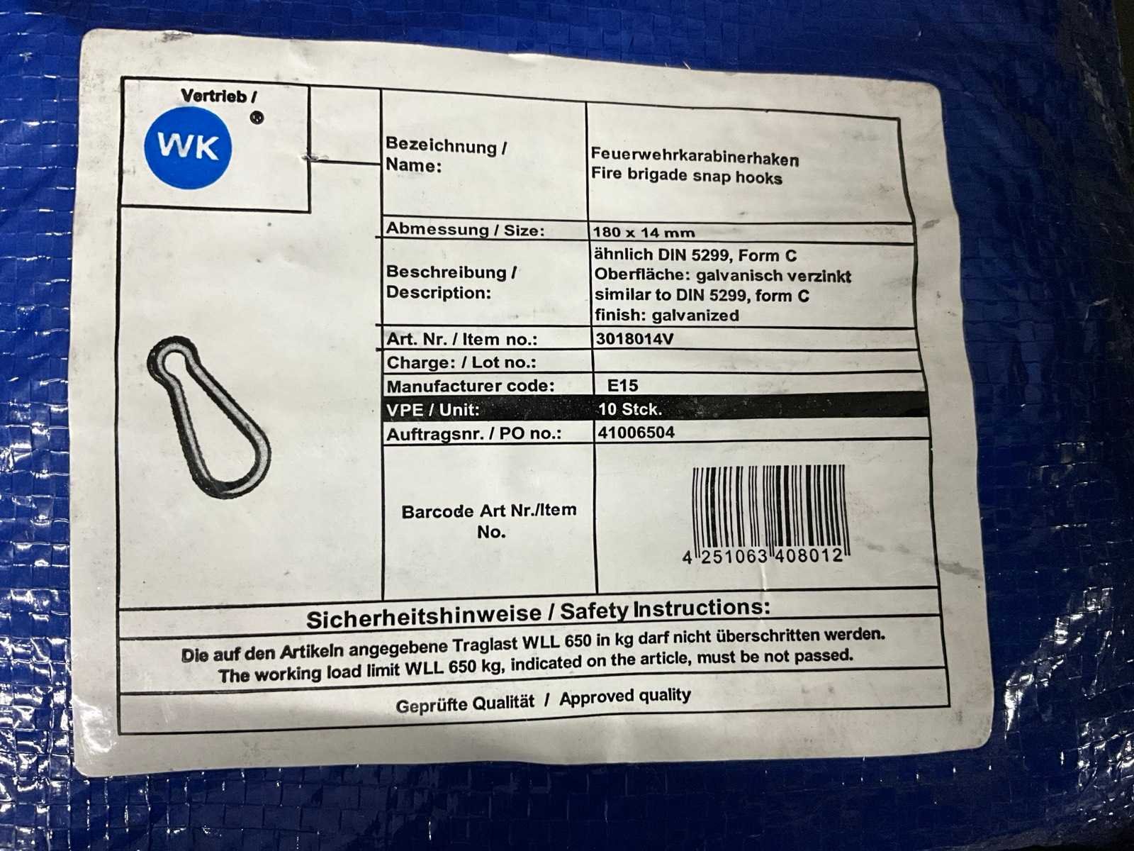 Verzinkte karabijnhaak 180x14mm (20x)