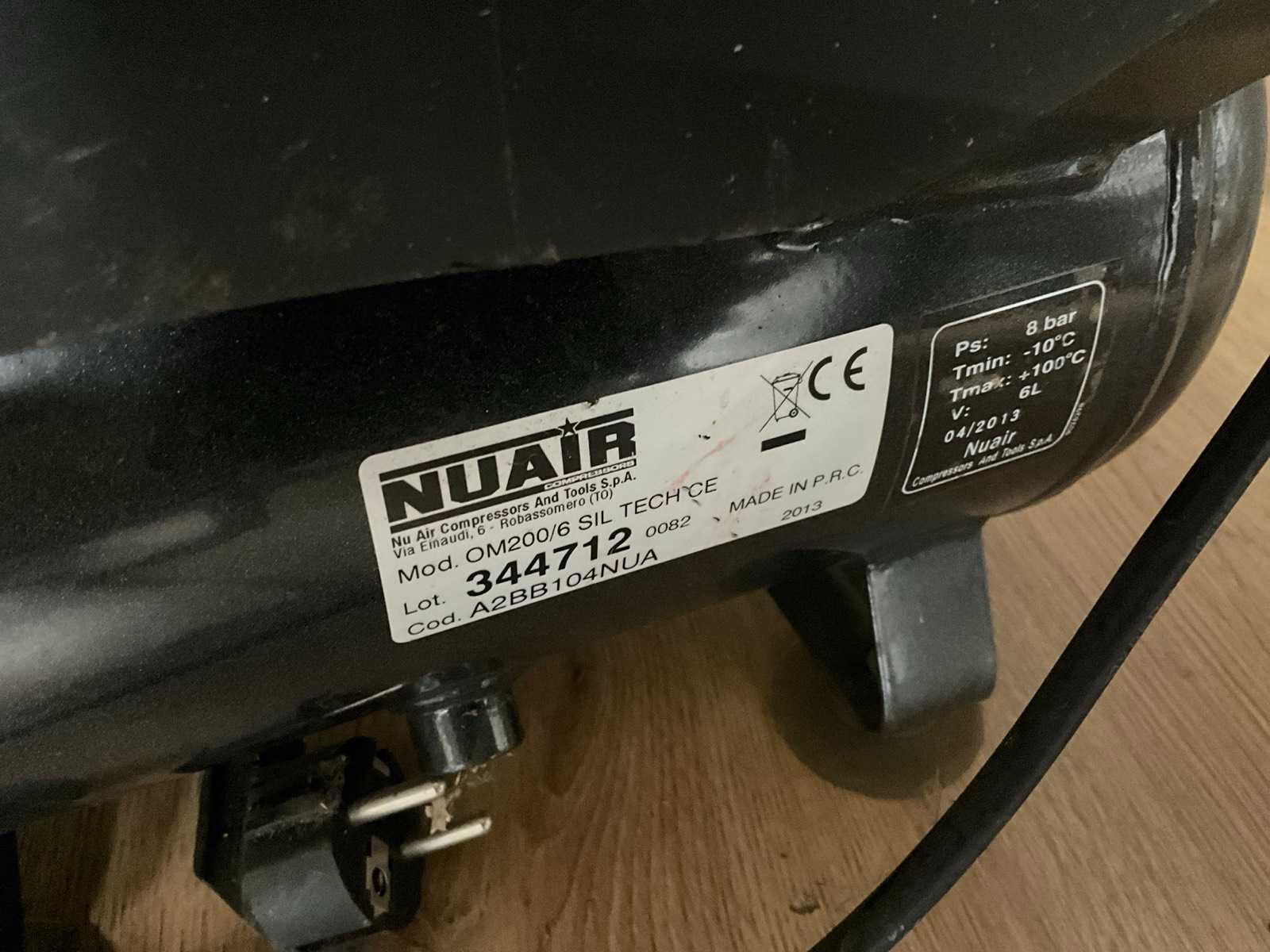 Nee Merk: NuAir Type: OM200/6 Capaciteit.: 8bar Buffertank inhoud: 6l Aansluiting: 230V Eigen gewicht: 16kg