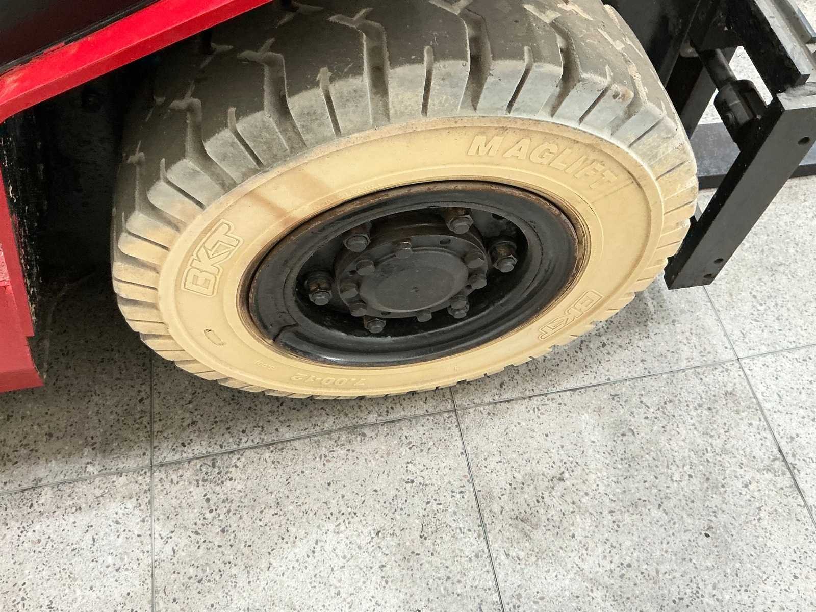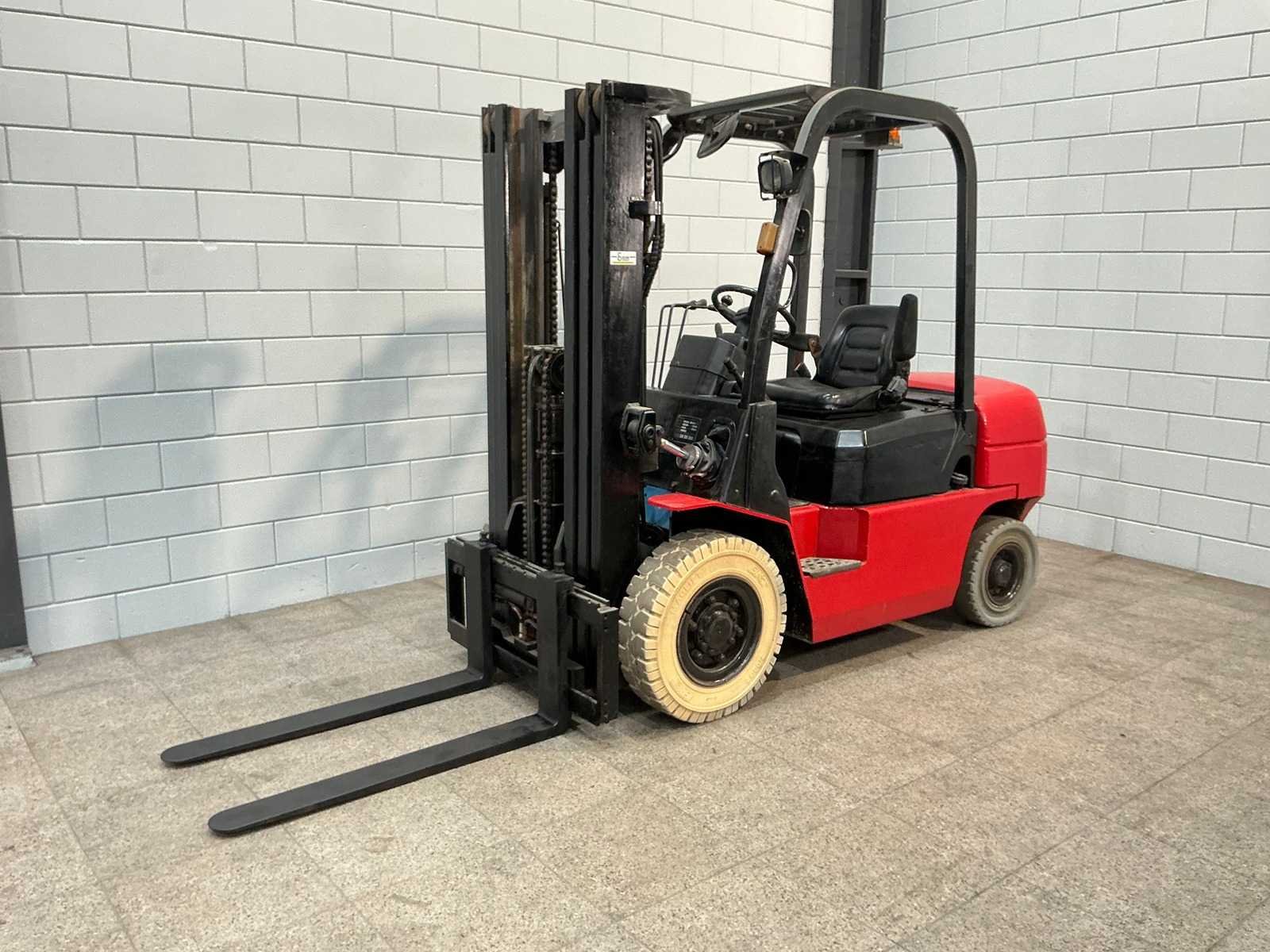 Nee Merk: hangcha Type: CPCD25N Bouwjaar: 2008 Serienummer: 080929171 Brandstof: Diesel Mast: Triplex Soort band: Volrubber Aantal wielen: 4 Afgelezen urenstand: 3295 Free-lift: true Side-shift: true Triple mast: true Eigen gewicht: 4050kg Hefvermogen: 2500kg Lepellengte: 1070mm Hefhoogte: 4320mm Vol rubber banden: true Totale afmeting L: 2560mm Totale afmeting Breedte: 1140mm Totale afmeting Hoogte: 2120mm Diesel: true