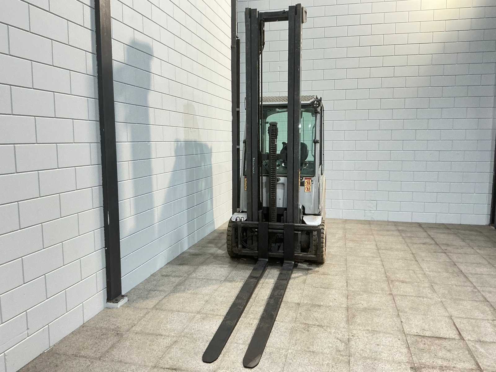 Nee Merk: Still Type: RX60-25 Bouwjaar: 2015 Serienummer: 516345F00709 Brandstof: Elektrisch Mast: Triplex Soort band: Volrubber Aantal wielen: 4 Afgelezen urenstand: 14014 Accu lader: true Free-lift: true Side-shift: true Triple mast: true Eigen gewicht: 5200kg Hefvermogen: 2500kg Lepellengte: 2200mm Hefhoogte: 7390mm Vol rubber banden: true Totale afmeting L: 2320mm Totale afmeting Breedte: 1190mm Totale afmeting Hoogte: 3170mm