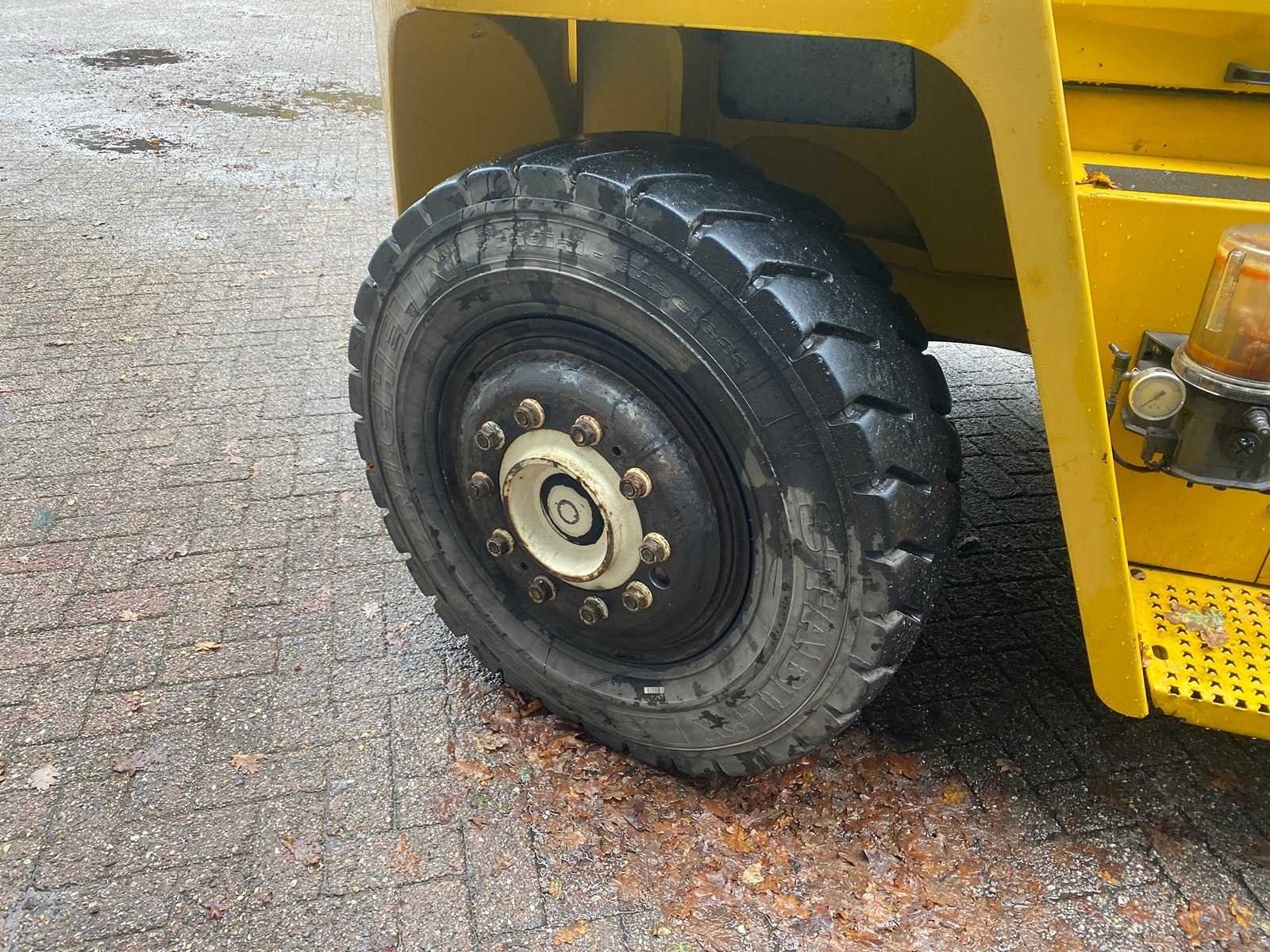 Luchtbanden Volledige cabine Werklampen Kenteken Verwarming Nee Merk: Yale Type: GDP 120 DC Bouwjaar: 2013 Serienummer: F876E01576L Brandstof: Diesel Mast: Duplex Soort band: Luchtbanden Aantal wielen: 6 Afgelezen urenstand: 16859 Side-shift: true Hydraulisch verstelbare lepels: true Duplex mast: true Eigen gewicht: 16350kg Hefvermogen: 12000kg Lepellengte: 3250mm Hefhoogte: 5250mm Luchtbanden: true Minimale doorrijhoogte: 4500mm Totale afmeting L: 4350mm Totale afmeting Breedte: 2500mm Totale afmeting Hoogte: 4500mm Diesel: true