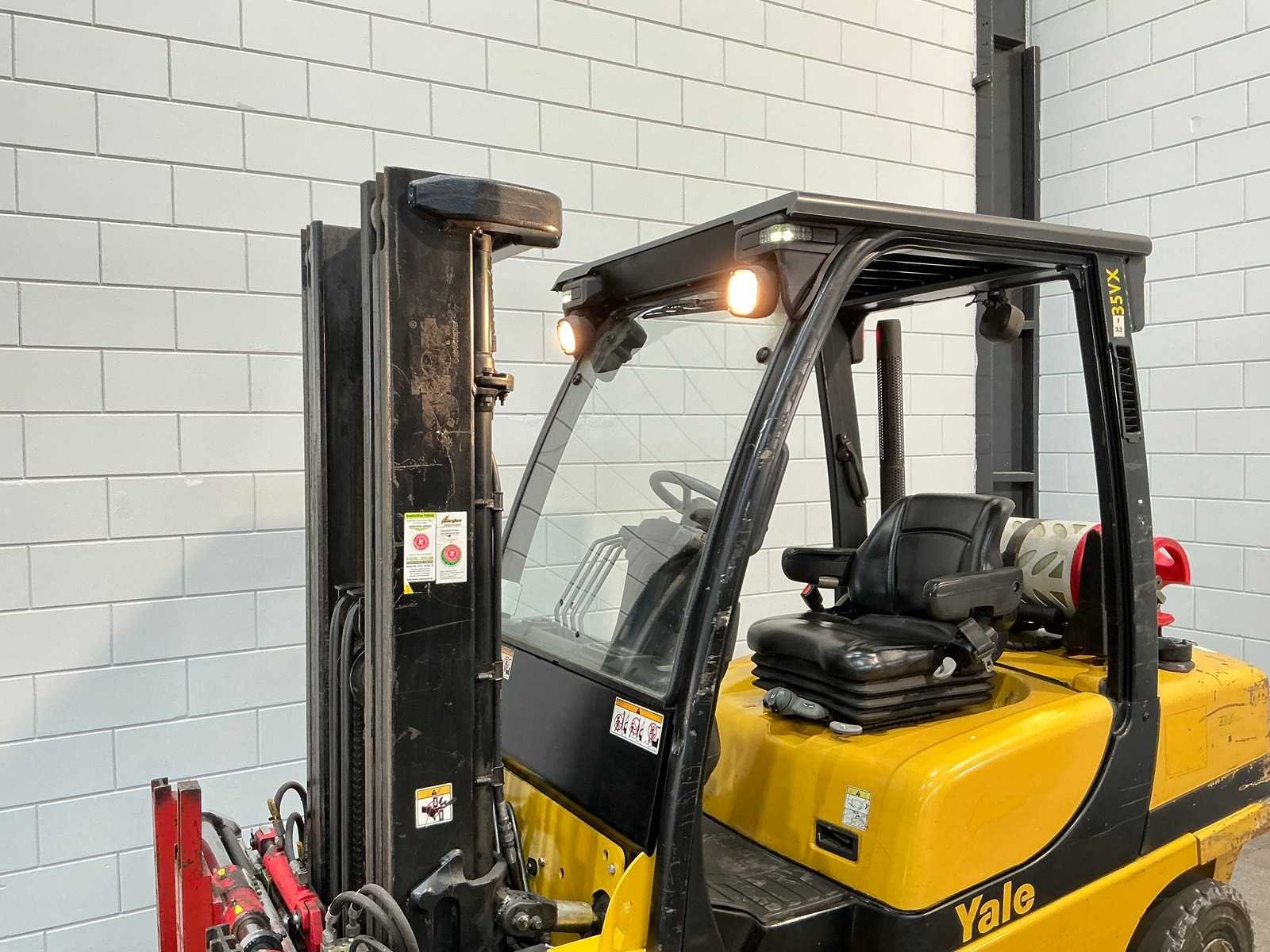 Nee Merk: Yale Type: GLP35VX Bouwjaar: 2011 Serienummer: B875B22172J Brandstof: LPG Mast: Triplex Soort band: Volrubber Aantal wielen: 4 Afgelezen urenstand: 6337 Free-lift: true Side-shift: true Hydraulisch verstelbare lepels: true Triple mast: true Eigen gewicht: 5000kg Hefvermogen: 3500kg Lepellengte: 1180mm Hefhoogte: 4570mm Vol rubber banden: true Totale afmeting L: 2850mm Totale afmeting Breedte: 1630mm Totale afmeting Hoogte: 2170mm LPG: true