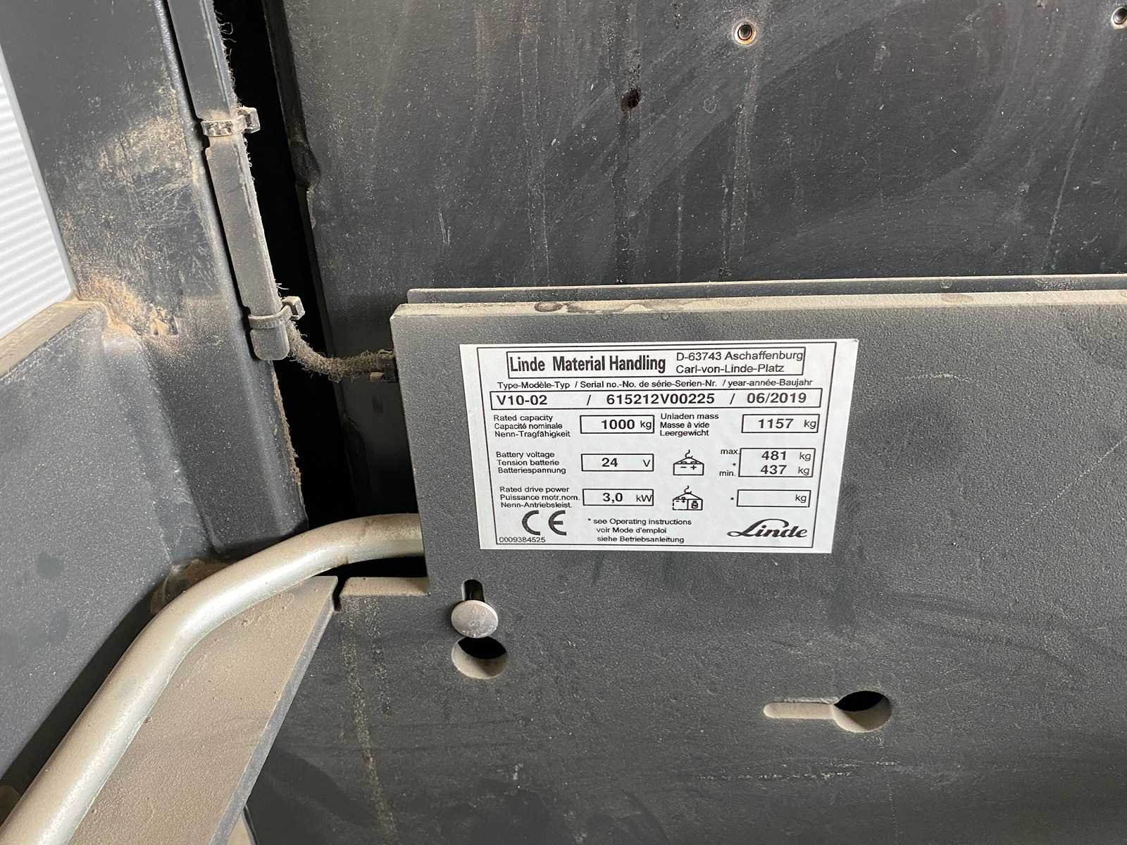 Lithium batterij Nee Merk: Linde Type: V10-02 Bouwjaar: 2019 Serienummer: 615212V00225 Hefvermogen: 1000kg Hefhoogte: 1050mm Lepellengte: 1150mm Accu lader: true Afgelezen urenstand: 4930 Eigen gewicht: 1641kg Totale afmeting L: 1700mm Totale afmeting Breedte: 800mm Totale afmeting Hoogte: 1620mm