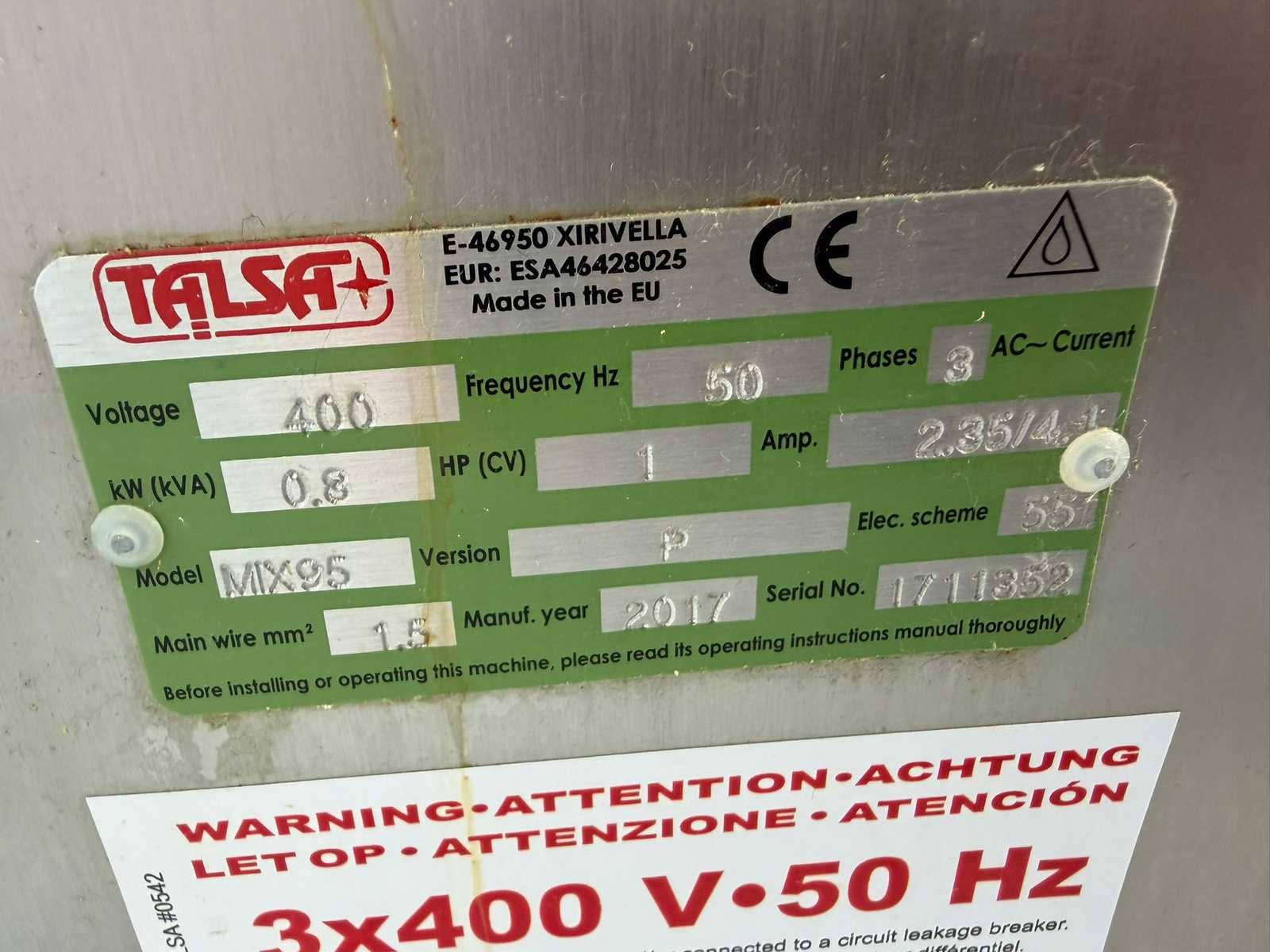 Nee Merk: Talsa Type: Mix-P 95L Bouwjaar: 2017 Aansluiting: 400V