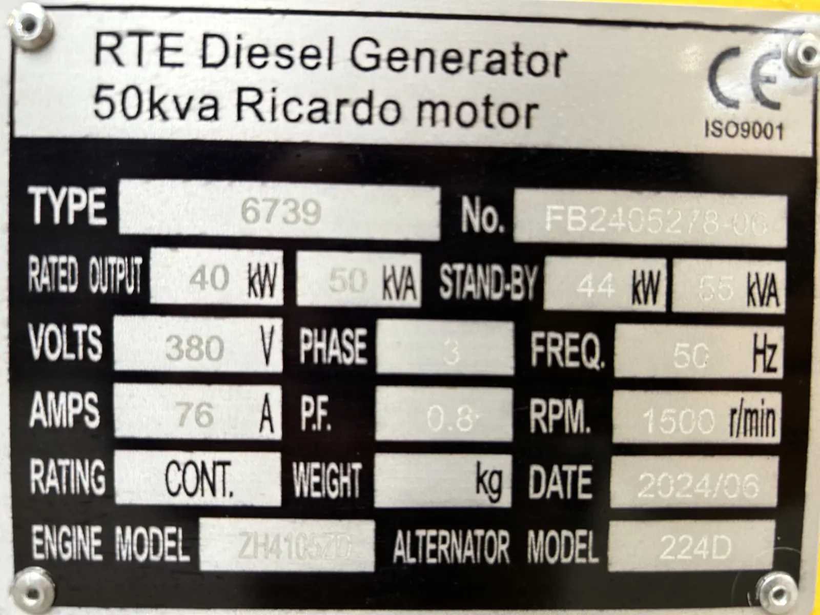 Rte - 50 kva - noodstroomaggregaat / generator diesel 2025