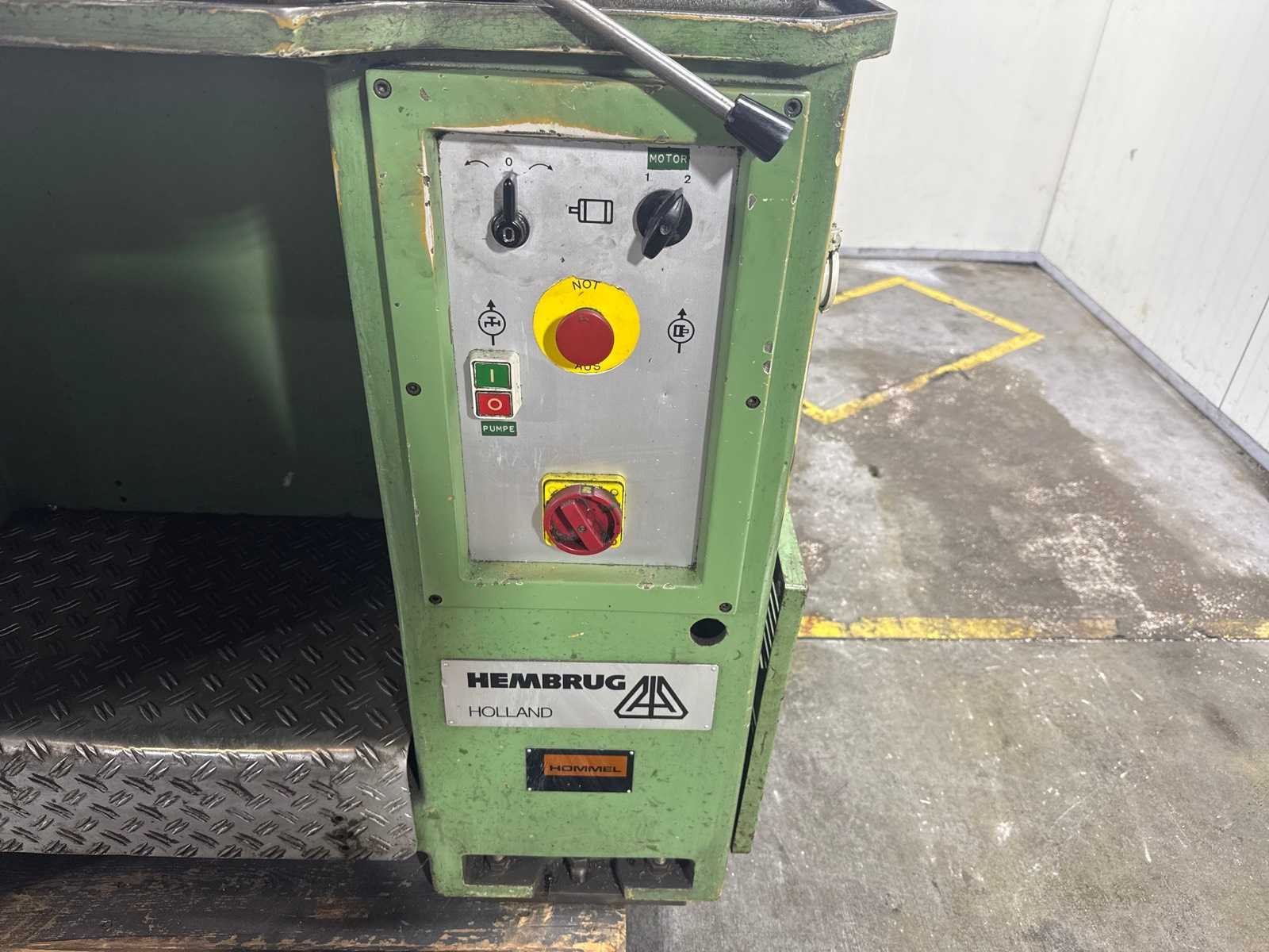 Machine reeds gereed voor transport en op kijkdag te beoordelen No Merk: Hemburg Type: AI Ergonomic Draailengte: 315mm Holle spil Ø: 42mm Snelheid van n =: 18rpm Snelheid tot n =: 3550rpm Machinegewicht: 1300kg Afmeting l: 1400mm Afmeting b: 800mm Afmeting h: 1900mm