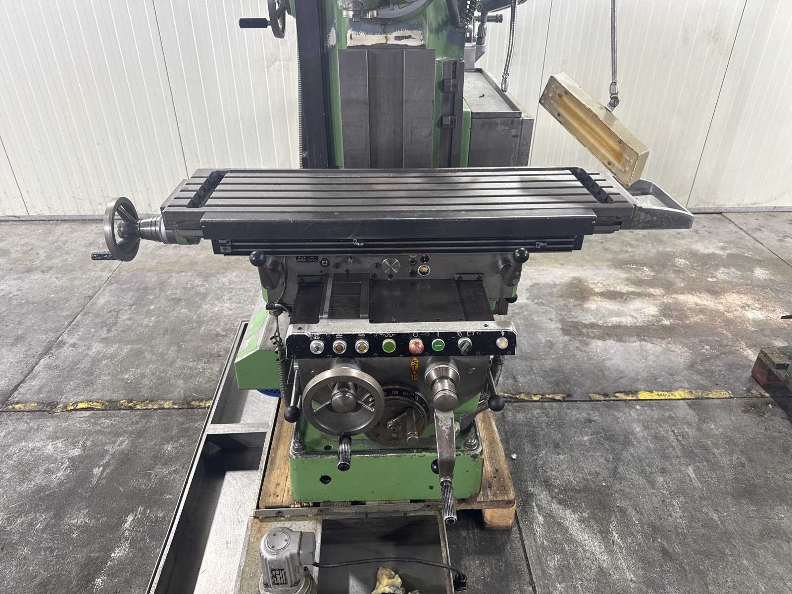 Machine reeds gereed voor transport en op kijkdag te beoordelen No Merk: Schaublin Type: 53N Serienummer: 275689 Verplaatsing x-as: 500mm Verplaatsing y-as: 200mm Verplaatsing z-as: 400mm Opname iso: 30 Opname: Sk30 Snelheid van n =: 50rpm Snelheid tot n =: 2500rpm T-gleuf opspantafelafmeting L: 20mm T-gleuf opspantafelafmeting B: 25mm Koelmiddelpomp: true Afgelezen urenstand: 40882 Aansluiting: 380V Machinegewicht: 1500kg Afmeting l: 2000mm Afmeting b: 1600mm Afmeting h: 1900mm