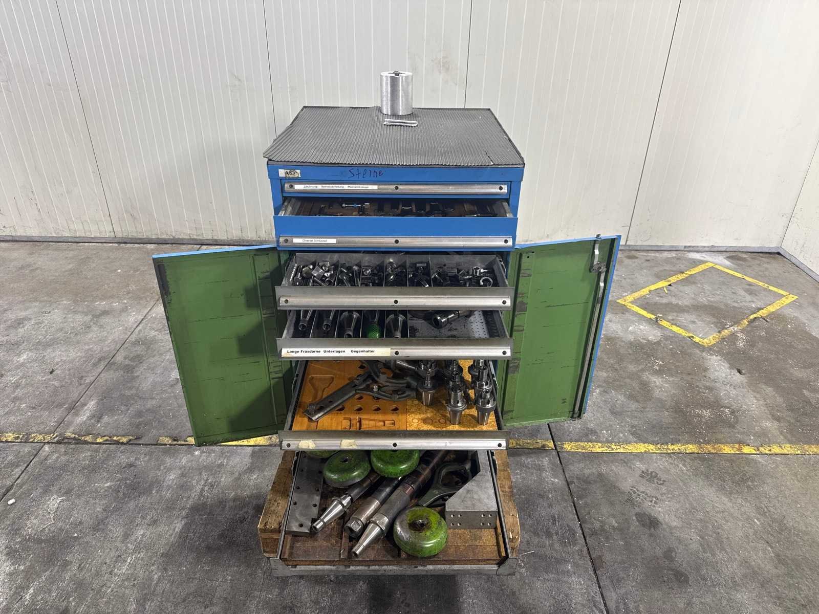 Kast hoort bij Schaublin 53 met lot nummer 75 No Aantal laden: 6 Gewicht: 150kg Lengte: 750 Breedte: 75cm Hoogte: 102cm Met sleutel: true