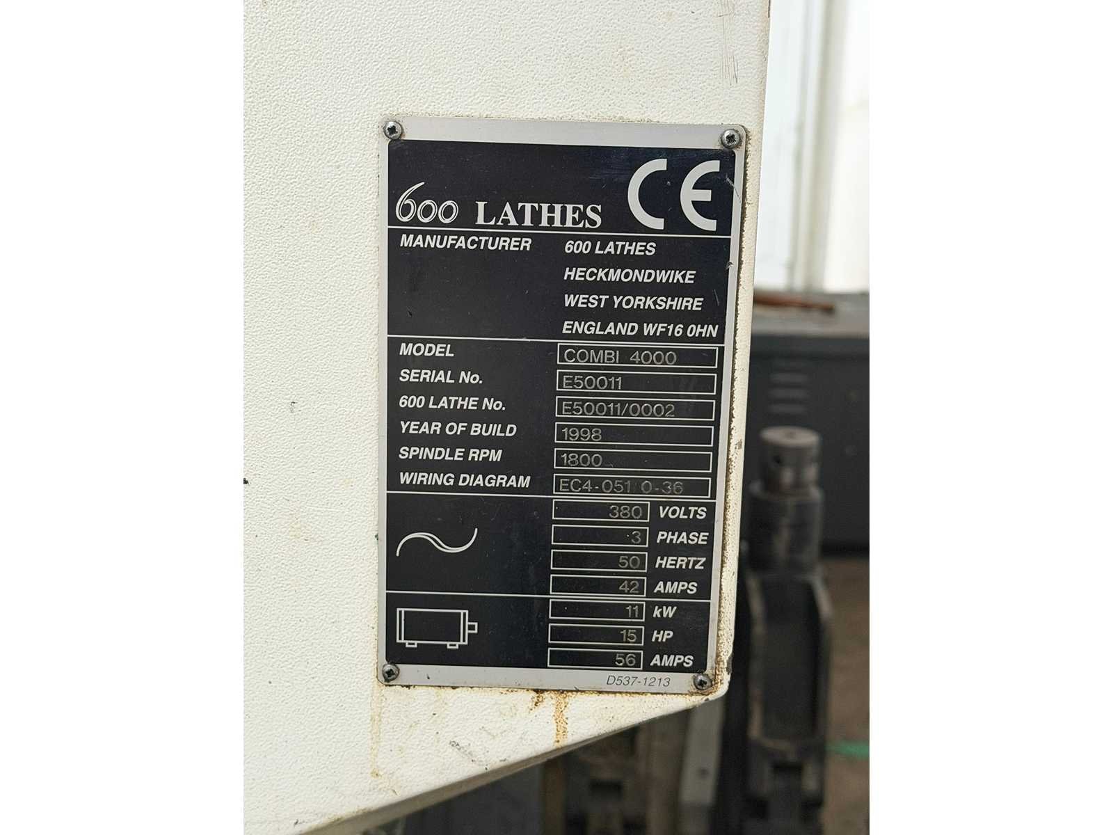 Machine reeds gereed voor transport en te beoordelen op kijkdag No Merk: Colchester Type: Combi 4000 Bouwjaar: 1998 Draai: 554mm Draailengte: 1920mm Holle spil Ø: 104mm Snelheid tot n =: 1800rpm Aantal gereedschapwisselstations: 8 Koelmiddelpomp: true CNC-besturing, merk, type: Fanuc 210i-T Motorvermogen (kW): 11kW Aansluiting: 400V Machinegewicht: 6500kg Afmeting l: 4500mm Afmeting b: 2200mm Afmeting h: 2000mm