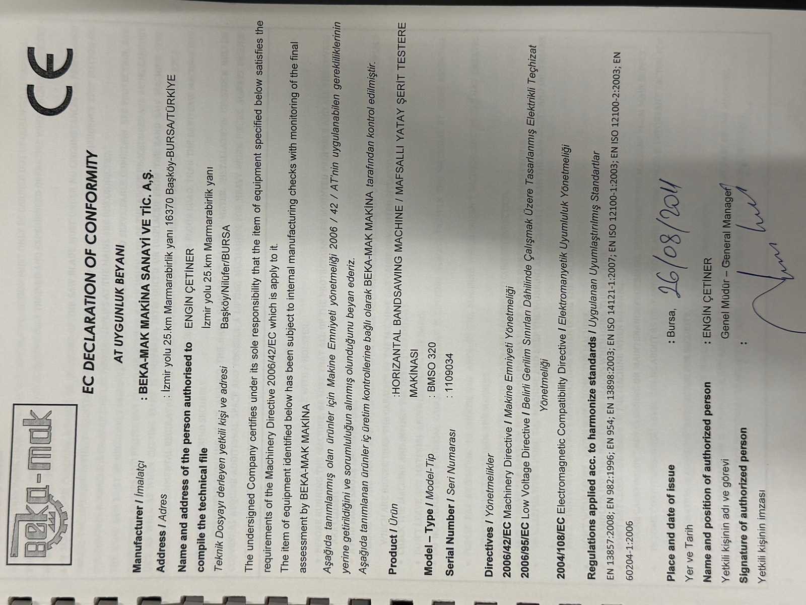 Bekamak - bmso 320 - metal vertical band sawing machine - 2011