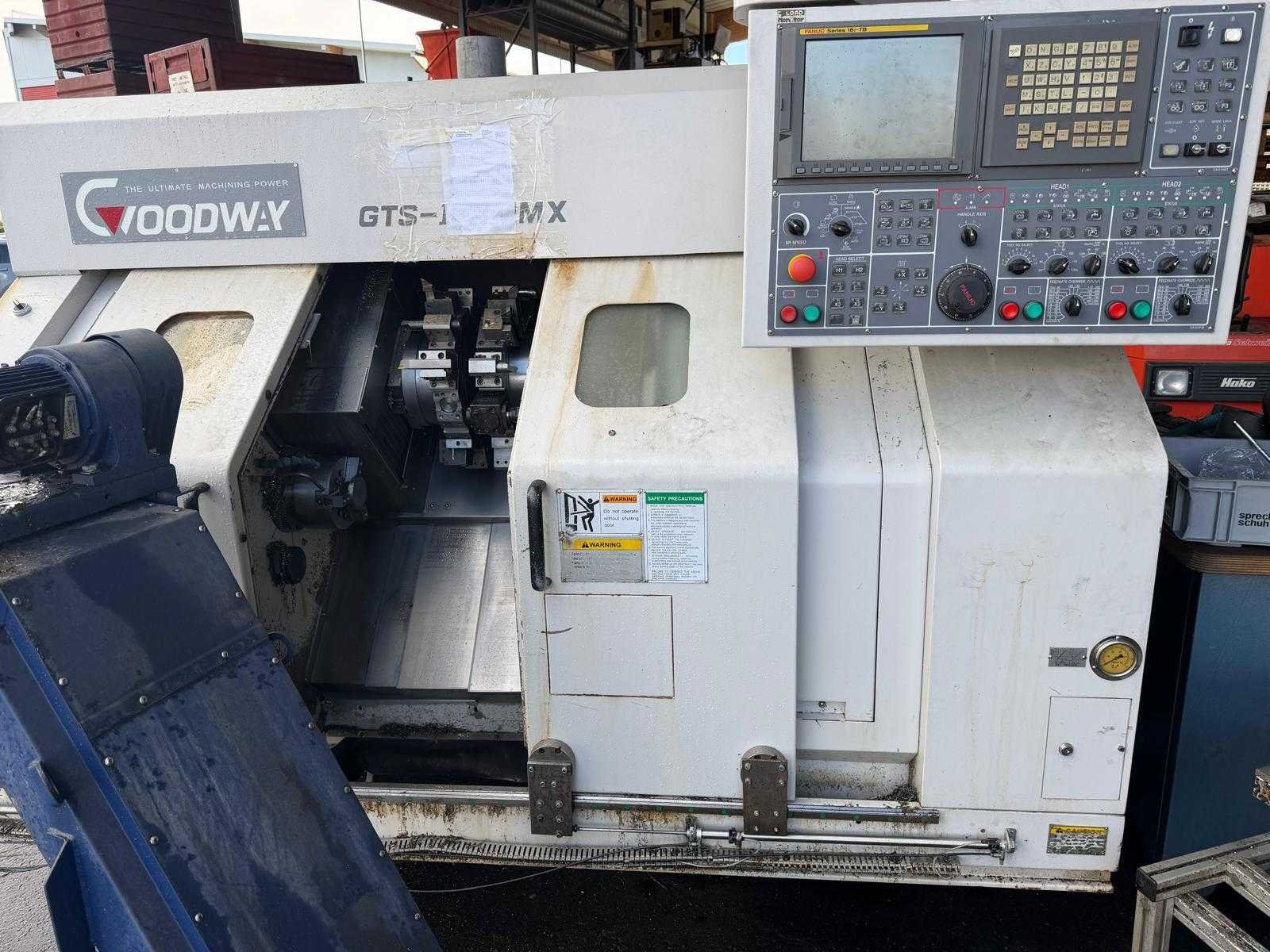 Machine reeds gereed voor transport en te beoordelen op kijkdag No Merk: Goodway Type: 150-MMX Bouwjaar: 2006 Serienummer: 8809 9 Draai: 180mm Draailengte: 160mm Holle spil Ø: 33mm Snelheid tot n =: 4000rpm Spanentransporteur: true CNC-besturing, merk, type: Fanuc 18i- TB Motorvermogen (kW): 7.5kW Aansluiting: 400V Machinegewicht: 6200kg Afmeting l: 2500mm Afmeting b: 1800mm Afmeting h: 1950mm
