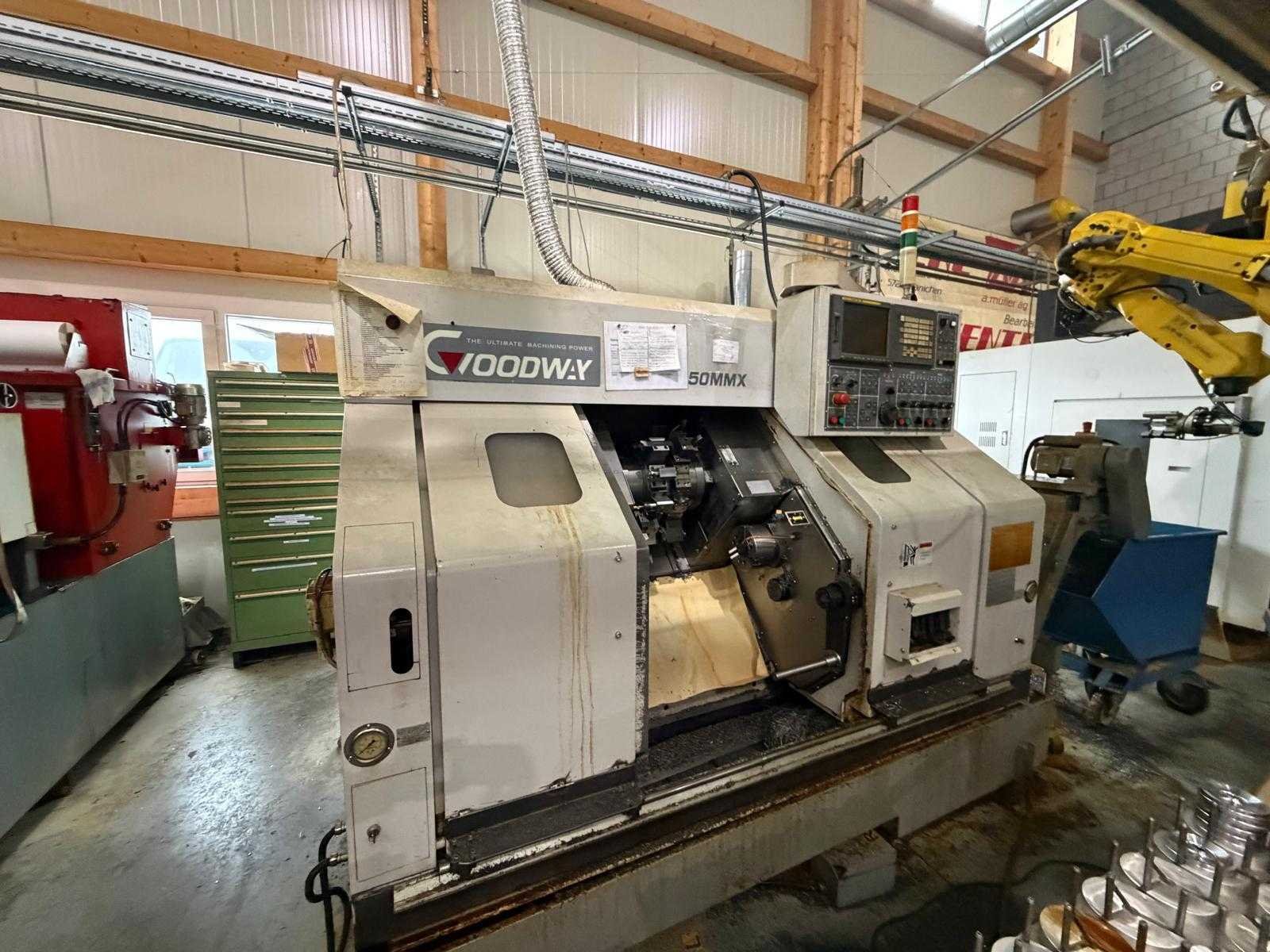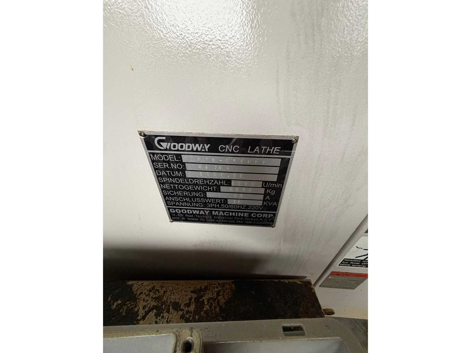 Machine reeds gereed voor transport en te beoordelen op kijkdag No Merk: Goodway Type: 150-MMX Bouwjaar: 2006 Serienummer: 8808 4 Draai: 180mm Draailengte: 160mm Holle spil Ø: 33mm Snelheid tot n =: 4000rpm Spanentransporteur: true CNC-besturing, merk, type: Fanuc 18i- TB Motorvermogen (kW): 7.5kW Aansluiting: 400V Machinegewicht: 6200kg Afmeting l: 2500mm Afmeting b: 1800mm Afmeting h: 1950mm