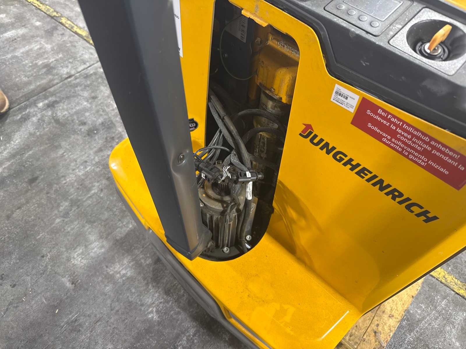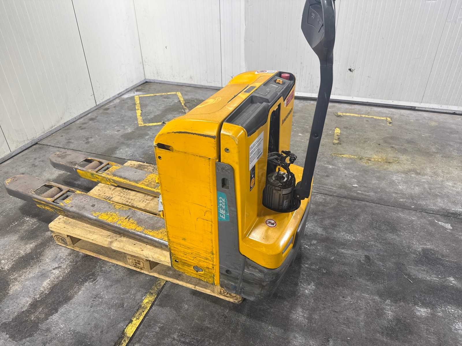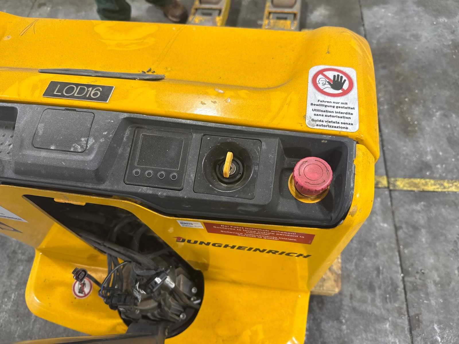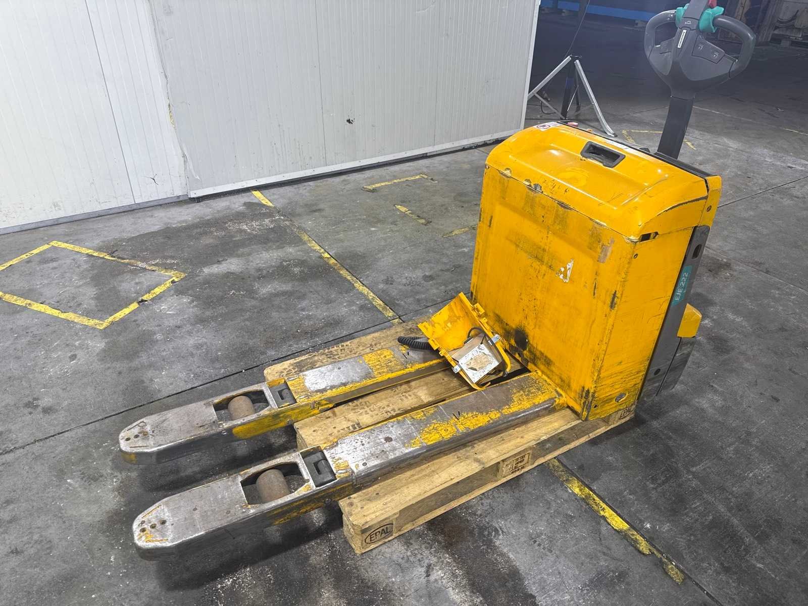 Voor onderdelen machine reeds gereed voor transport en op kijkdag te beoordelen No Merk: Jungheinrich Type: EJE 116 Bouwjaar: 2021 Serienummer: 98330205 Hefvermogen: 1600kg Hefhoogte: 190mm Lepellengte: 1395mm Eigen gewicht: 265kg Minimale doorrijhoogte: 900mm Totale afmeting L: 1950mm Totale afmeting Breedte: 750mm Totale afmeting Hoogte: 850mm