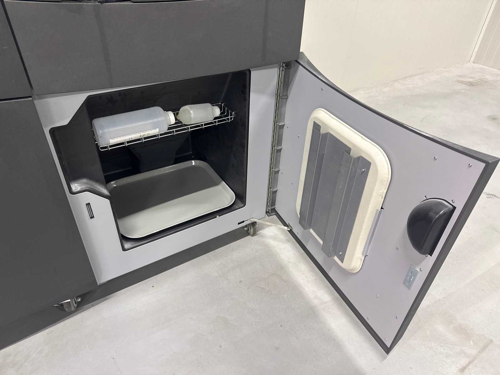 Printsnelheid en Resolutie Resolutie: 600 x 540 dpi. Kleurcapaciteit: Meer dan 6 miljoen kleuren (volledige 4-kanaals CMYK). Verticale bouwsnelheid: Maximaal 28 mm per uur. Minimale detailgrootte: 0,1 mm. Laagdikte: 0,089 tot 0,102 mm. Bouwvolume en Fysieke Eigenschappen Maximaal bouwvolume (X x Y x Z): 254 x 381 x 203 mm. Gewicht: 340 kg. Aantal printkoppen: 5 (voor CMYK en bindmiddel) met in totaal 1520 spuitmondjes. Materialen en Gebruik Basismateriaal: VisiJet PXL (een high-performance composiet poeder). Automatisering: Beschikt over een volledig geautomatiseerd systeem voor het laden, recyclen en verwijderen van poeder. Bestandsformaten: Ondersteunt STL, VRML, PLY, 3DS, FBX en ZPR. Toepassingen: Veelgebruikt voor architecturale modellen, medische visualisaties, prototypes voor consumentenproducten en kunst. No Merk: 3D Systems ProJet Model: 660 Pro Type: Professionele full-color 3D Printer Printoppervlak hoogte: 203mm Printoppervlak breedte: 381mm Printoppervlak diepte: 254mm Aantal printkoppen: 5pcs Materiaal: VisiJet PXL Gewicht: 340kg Lengte: 193cm Breedte: 75cm Hoogte: 144cm