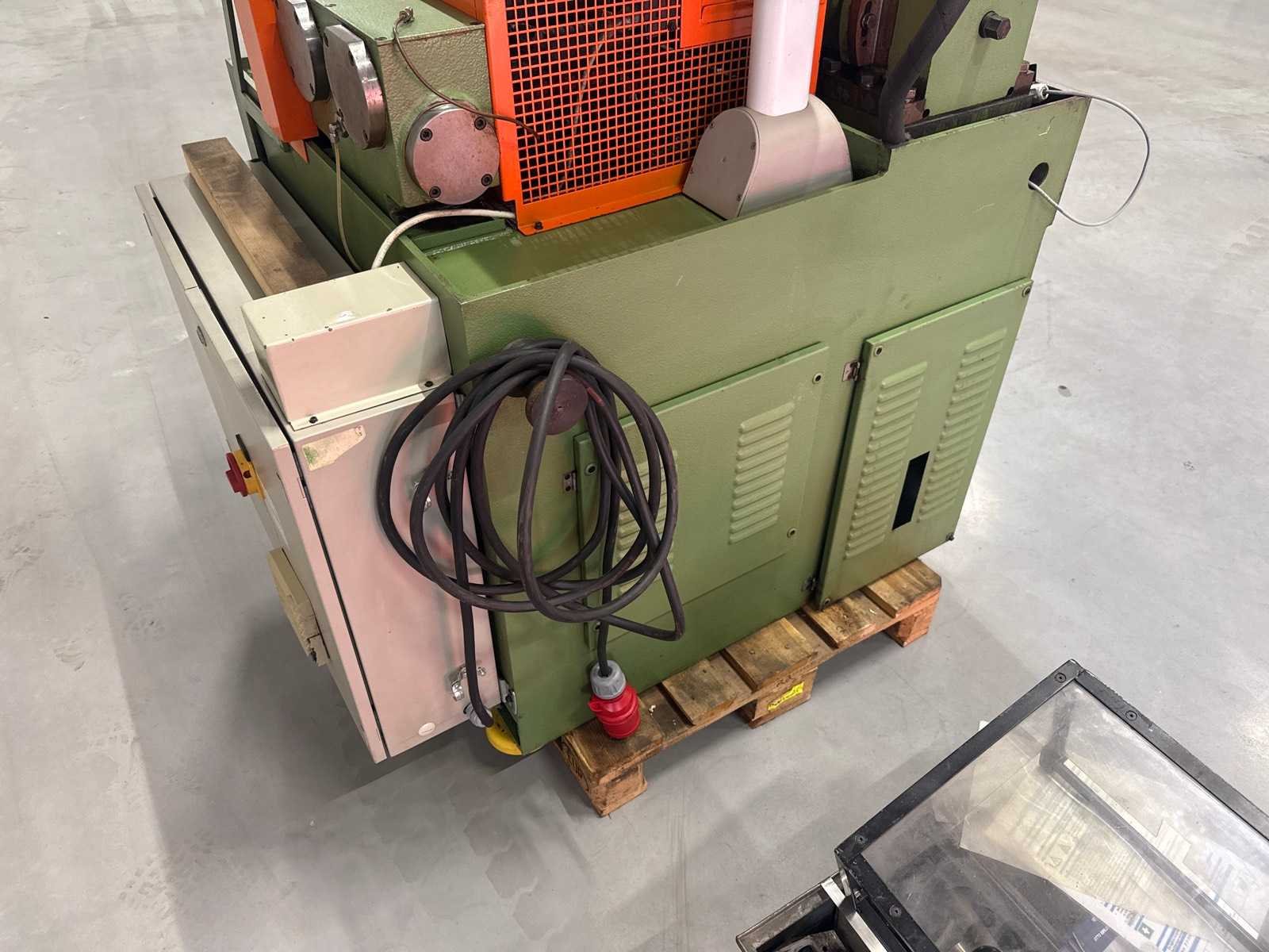Draadrolmachine ORT Italia - RT 10 Merk: ORT Italia Type: RT 10 Besturing: Siemens SIMATEC Bouwjaar: 1998 Maximale druk: 10T Maximale werkstuk: 30Ø Minimale werkstuk: 2Ø Minimale draadlengte:2mm Maximale draadlengte:65mm Pitch / lead: 30mm As Ø: 85 - 135mm Lengte: 1600mm Breedte: 1400mm Hoogte: 1800mm Gewicht: 2300kg No Merk: Ort Italia Type: RT 10 Bouwjaar: 1998 Capaciteit.: 10t Aansluiting: 380V Totale afmeting L: 1600mm Totale afmeting Breedte: 1400mm Totale afmeting Hoogte: 1800mm Eigen gewicht: 2300kg