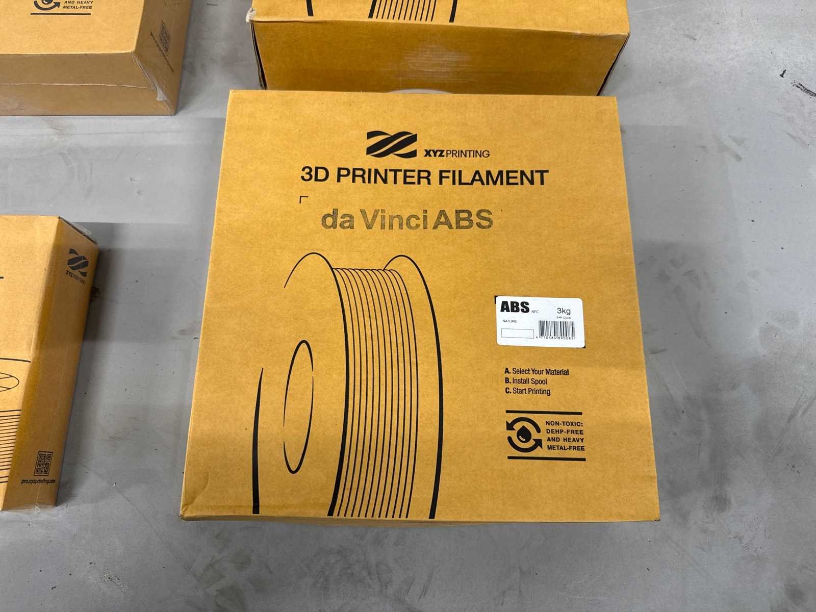 1x Red PLA 3KG 1x White PC 3KG 1x Nature ABS 3 KG 1x Nature BVOH 1KG No Merk: XYZ Printing Model: Filament Materiaal: PC, PLA, ABS en BVOH Gewicht: 10kg