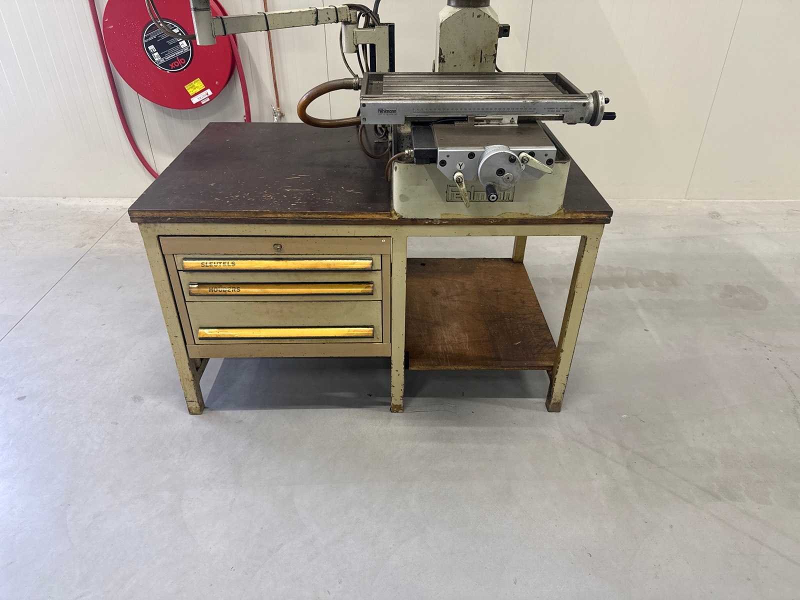 Inclusief gereedschap No Merk: Fehlmann Type: P18S Serienummer: 7821341 Boorcapaciteit: 18mm Spindelsnelheid van n =: 132rpm Spindelsnelheid tot n =: 4500rpm Toerental traploos: true Uitlading: 260mm Tafel afmeting l: 425mm Tafel afmeting b: 200mm Koelmiddelpomp: true Motorvermogen (kW): 1.1kW Aansluiting: 380V Machinegewicht: 500kg Afmeting l: 1220mm Afmeting b: 1100mm Afmeting h: 2100mm