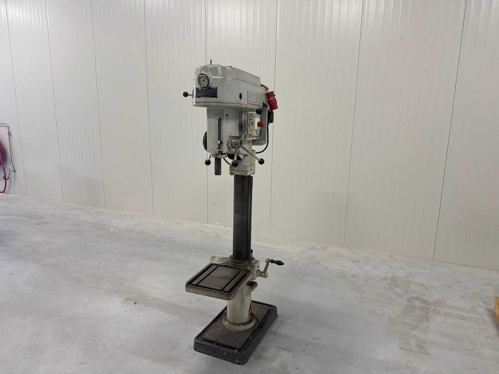 No Merk: Alzmetall Type: AB3IES Serienummer: 8639 Boorcapaciteit: 30mm Spindelsnelheid van n =: 160rpm Spindelsnelheid tot n =: 1420rpm Boordiepte: 150mm Tandwiel aangedreven: true Tafel afmeting l: 355mm Tafel afmeting b: 320mm Aansluiting: 380V Machinegewicht: 150kg Afmeting l: 900mm Afmeting b: 500mm Afmeting h: 1850mm