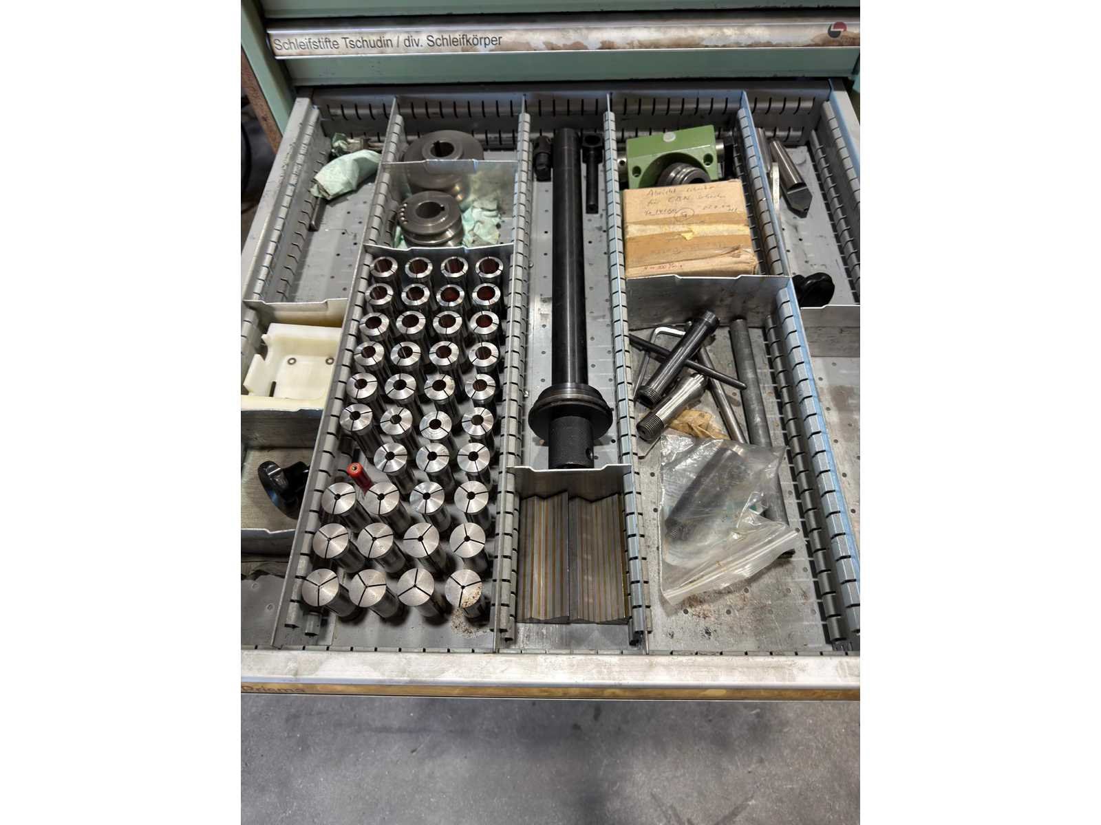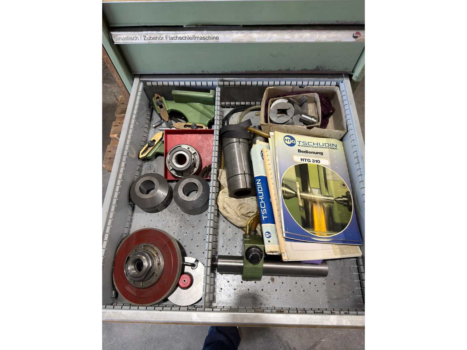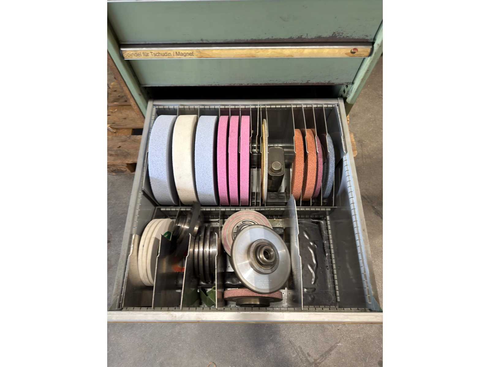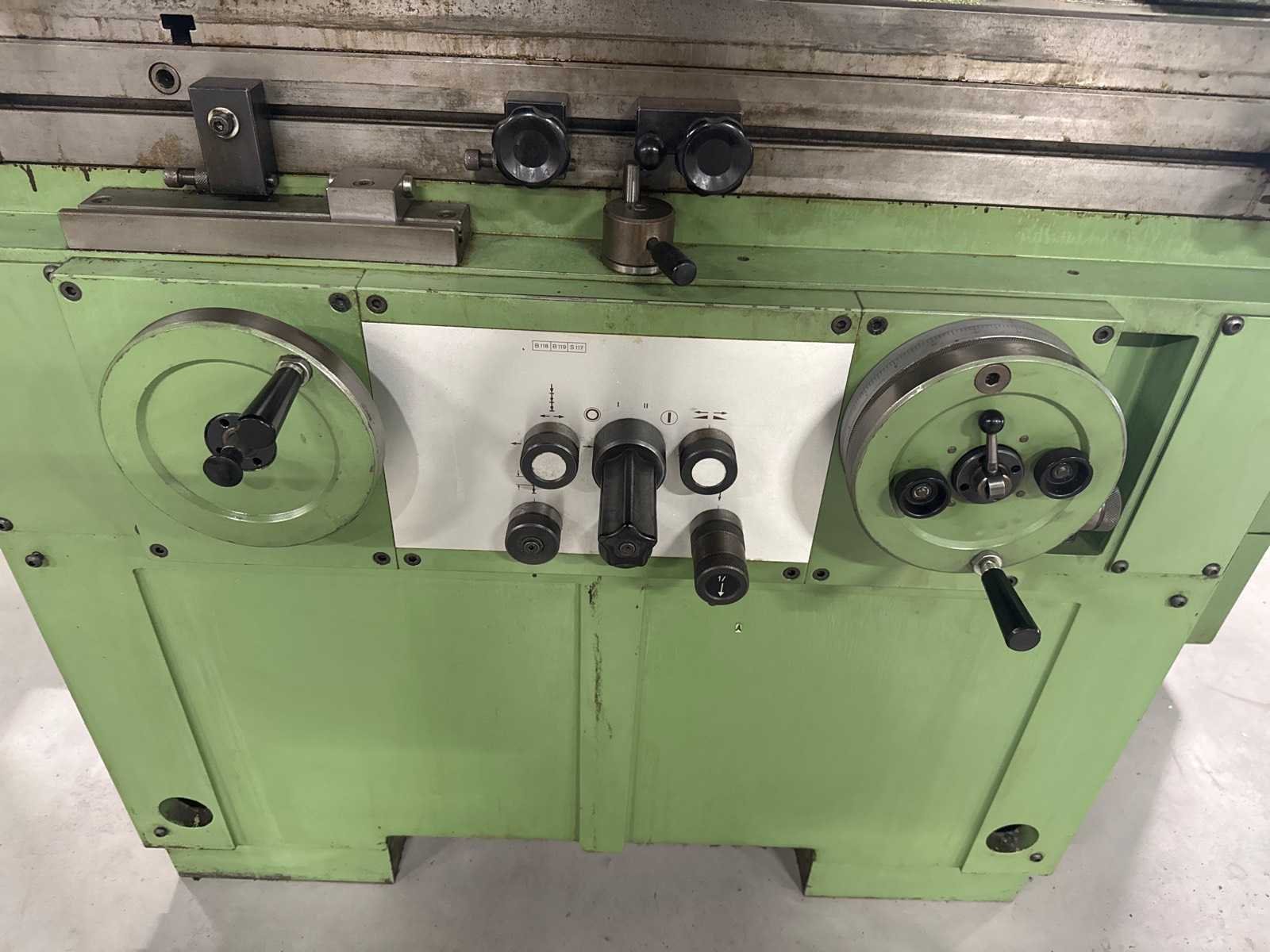 No Merk: Tschudin Type: HTG ui50/ui80 Bouwjaar: 1989 Slijpbereik: 340mm Slijpsteen Ø: 200mm Snelheid tot n =: 1800rpm Motorvermogen (kW): 1.1kW Aansluiting: 500V Machinegewicht: 1700kg Afmeting l: 2020mm Afmeting b: 1200mm Afmeting h: 1450mm