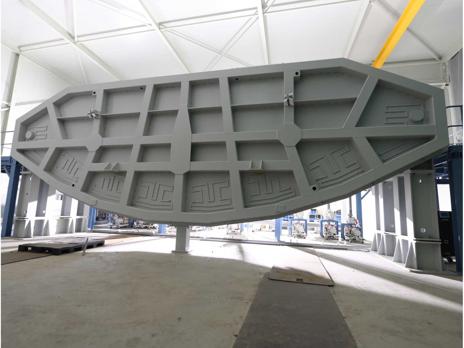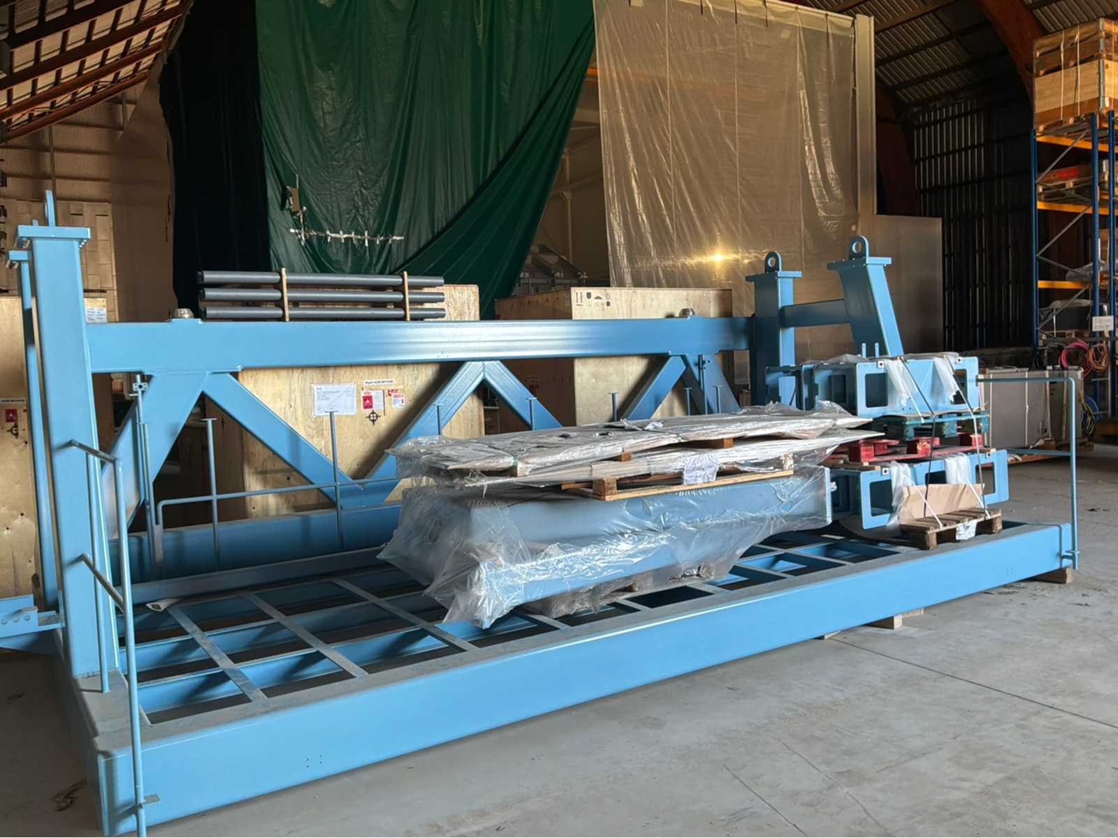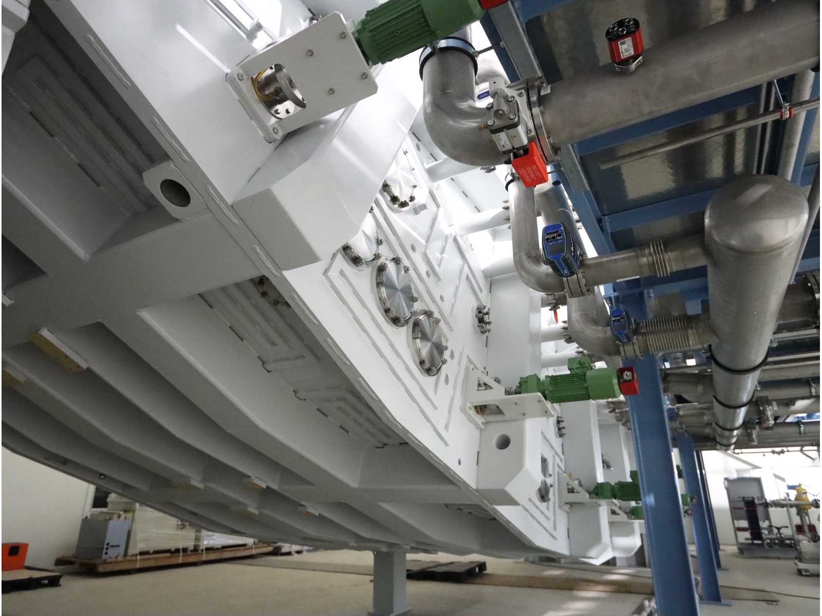 Ongebruikt!, bestaande uit: stalen kamerromp met diverse bevestigingen zoals sensoren, kleppen en leidingen, stalen constructie met platform en trap 5x vacuümklep spruitstukkast, veel stalen constructies (niet gemonteerd), cascoafmetingen ongeveer 13.000x5000x4000mm, totaal gebruikte vloeroppervlak ongeveer 12.000x20.000mm No Merk: Sidrabe Type: PECVD roll-to-roll Bouwjaar: 2023 Aansluiting: 400V