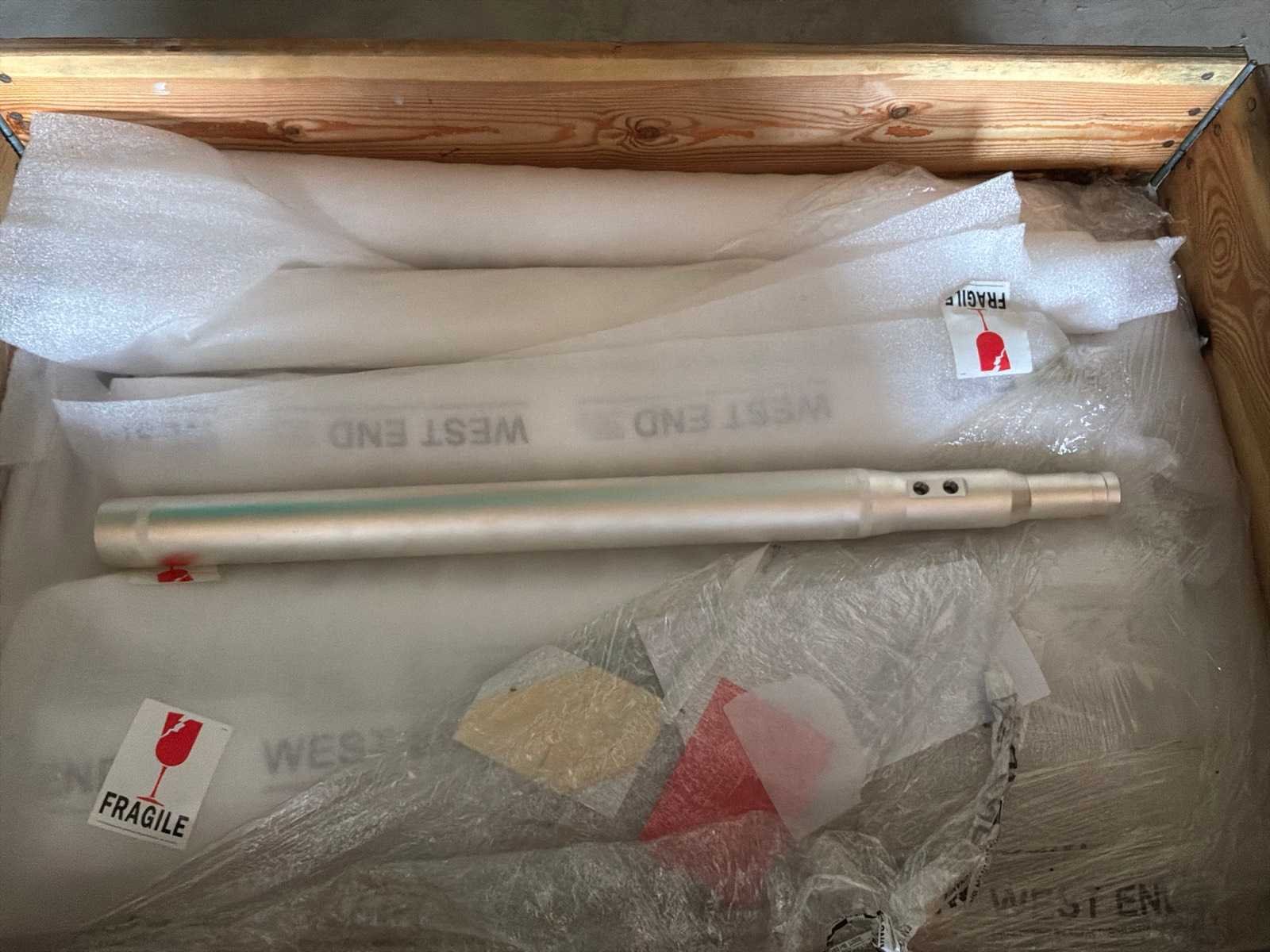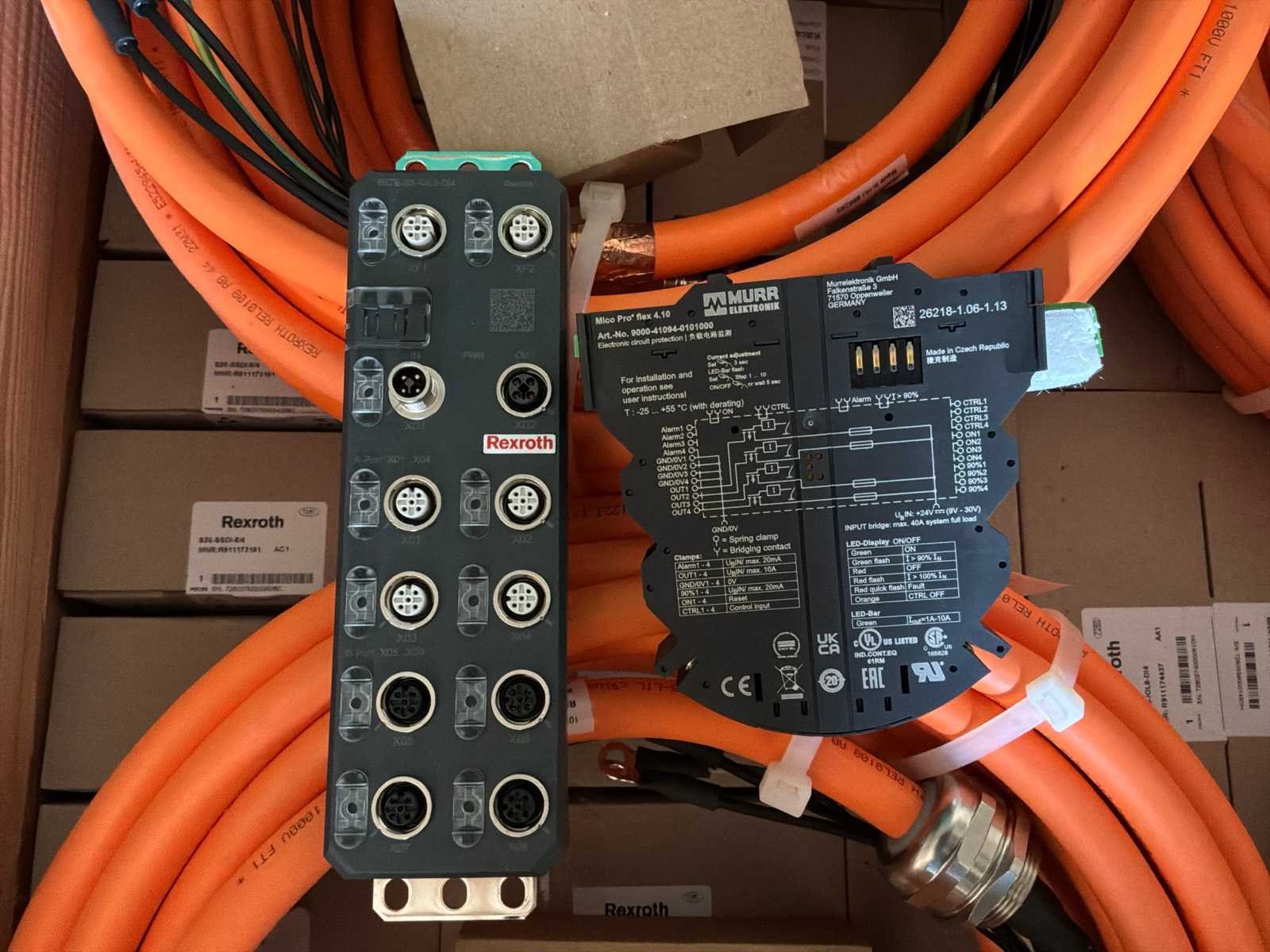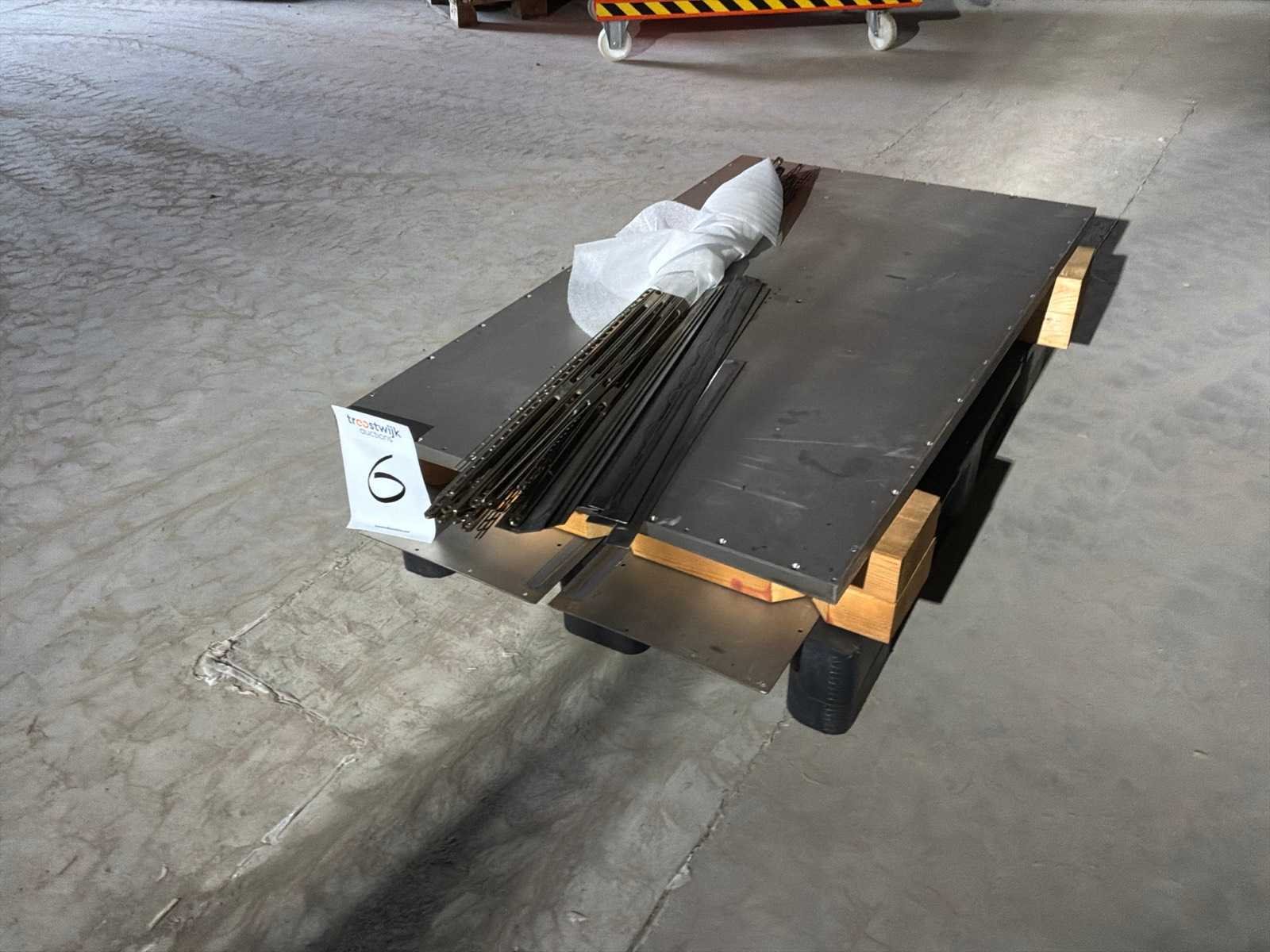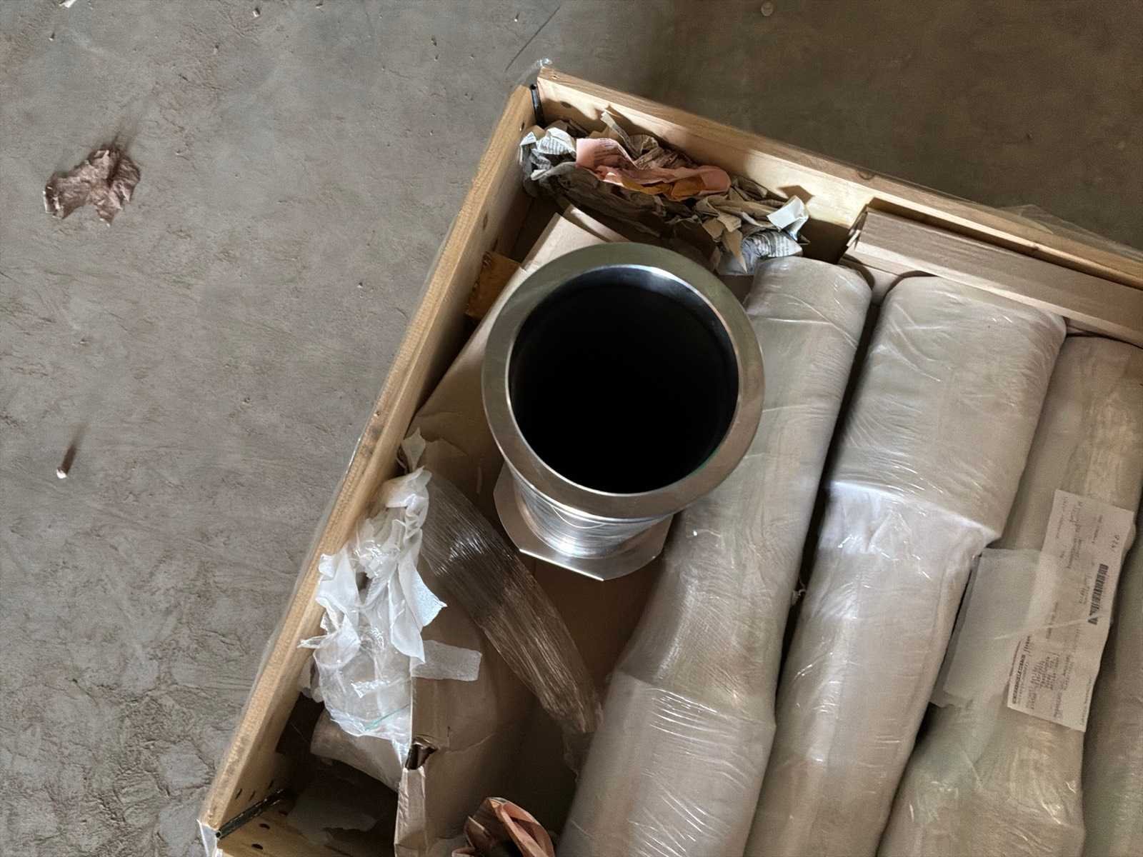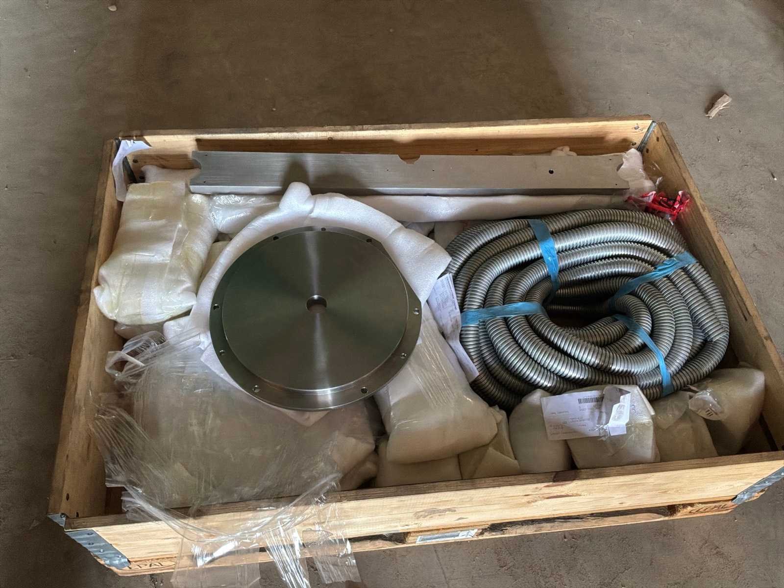 Diverse machineonderdelen behorend tot lot nr. 5, bestaande uit onder andere: roestvrijstalen onderdelen, diverse elektrische componenten, drukkleppen, klemmen, kabels, AC-aandrijvingen, flowmeter, aluminium buizen, diverse hozes, 2x mobiele opslagrekken. No