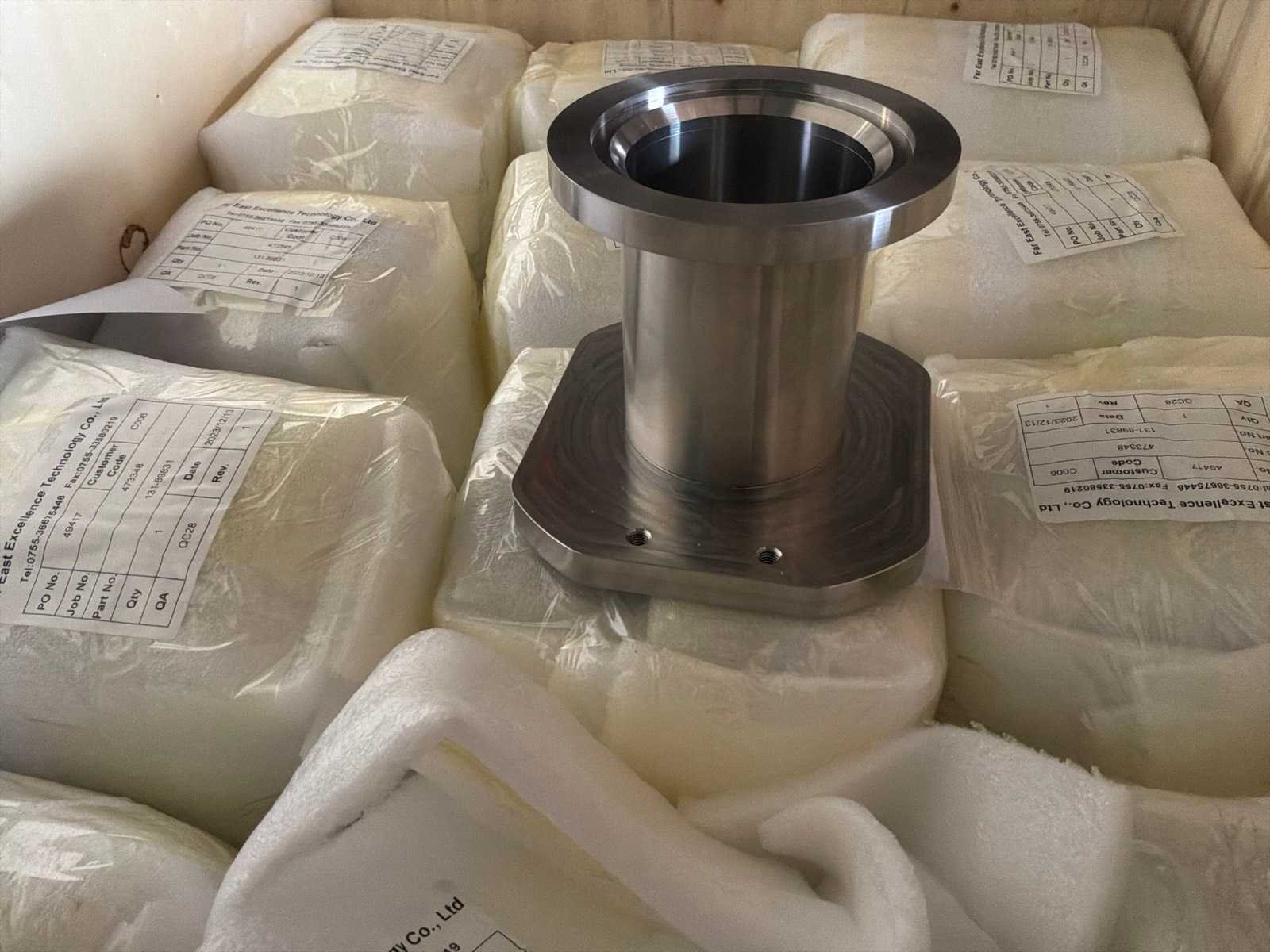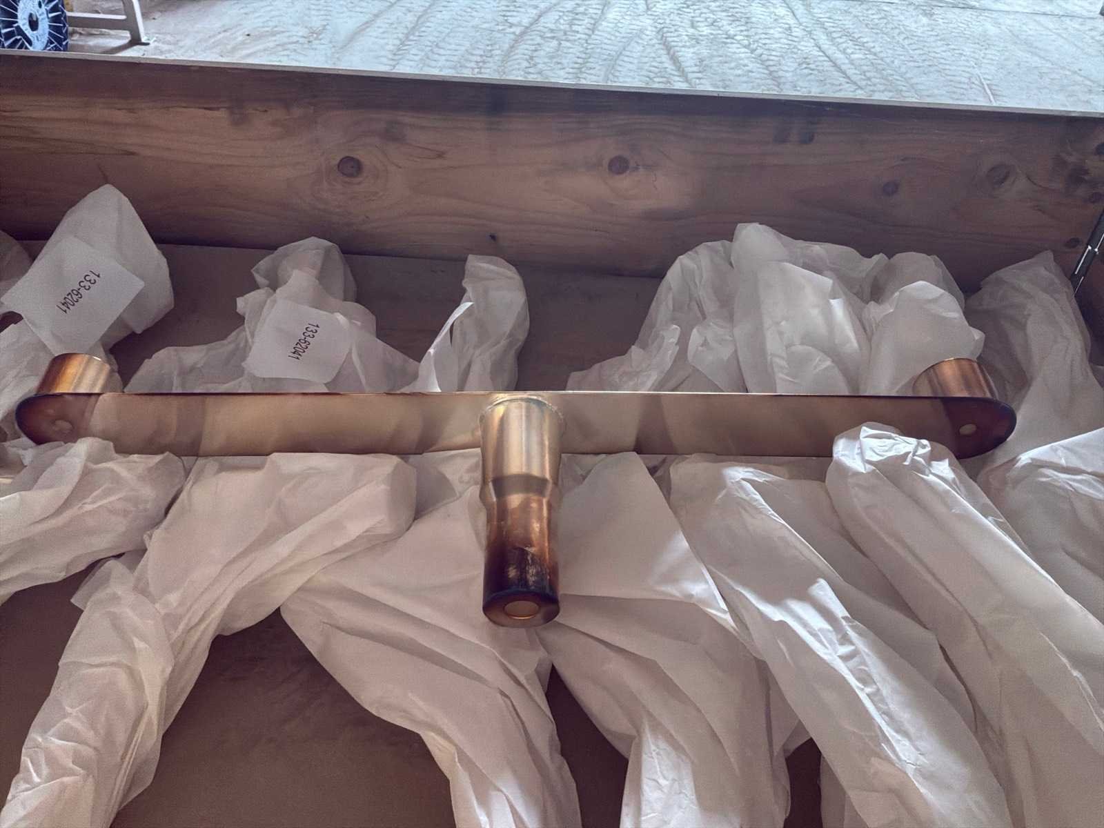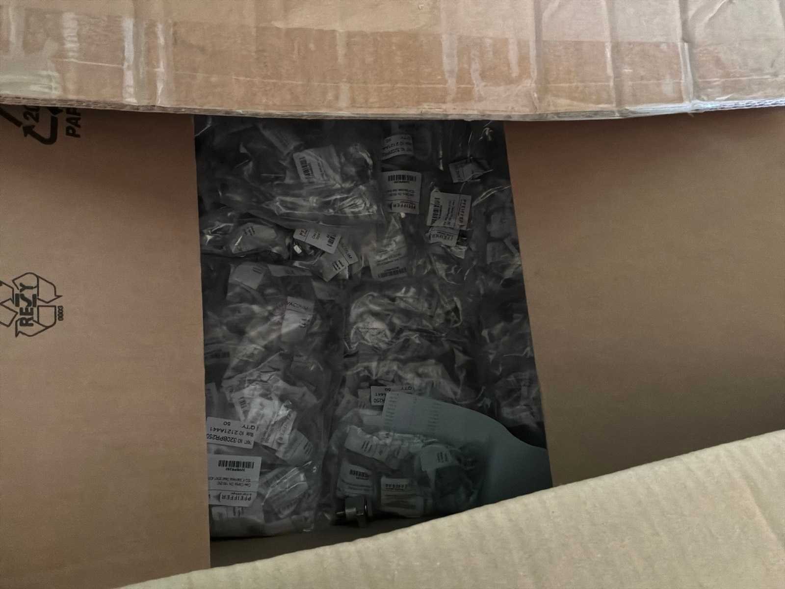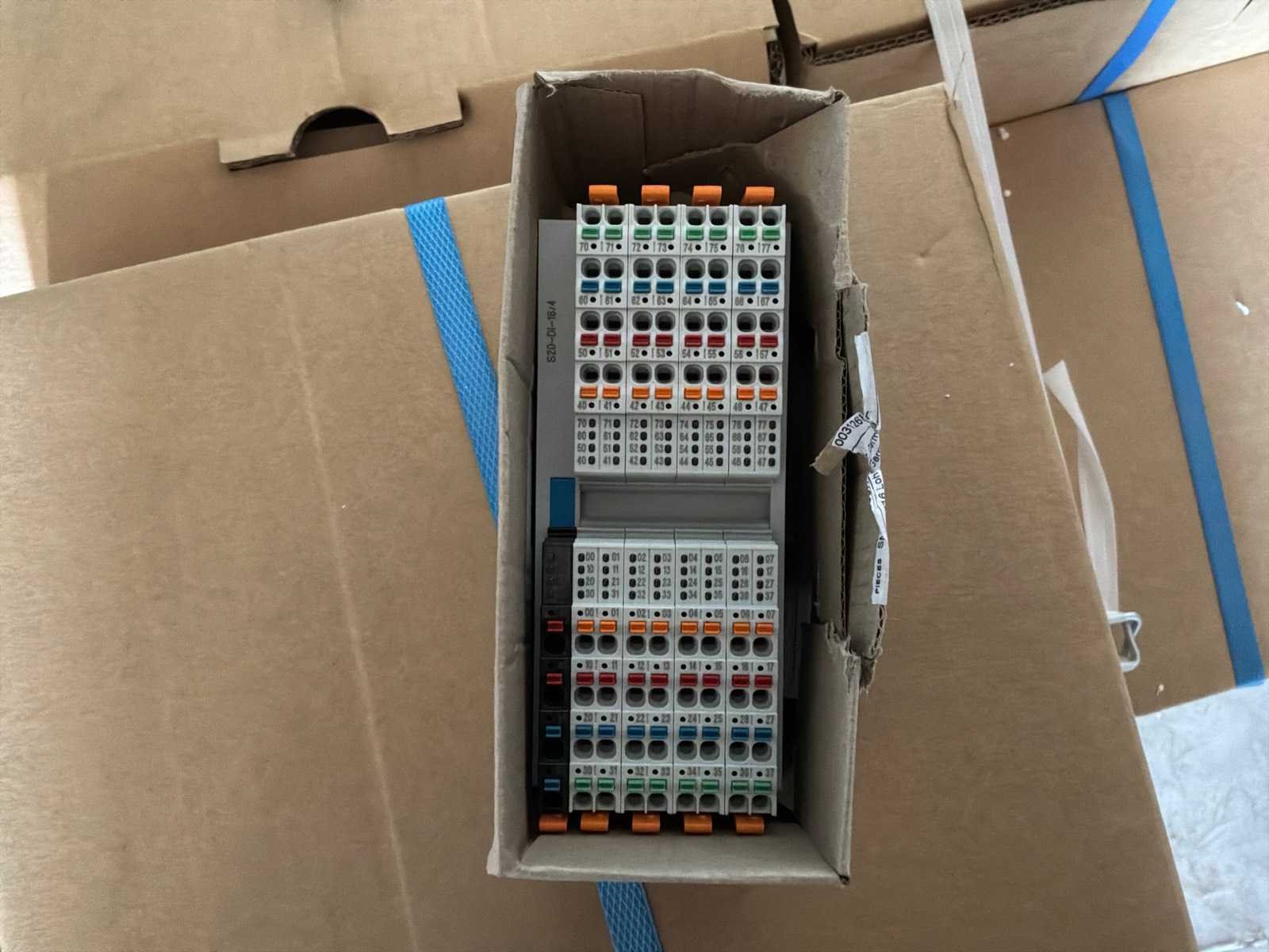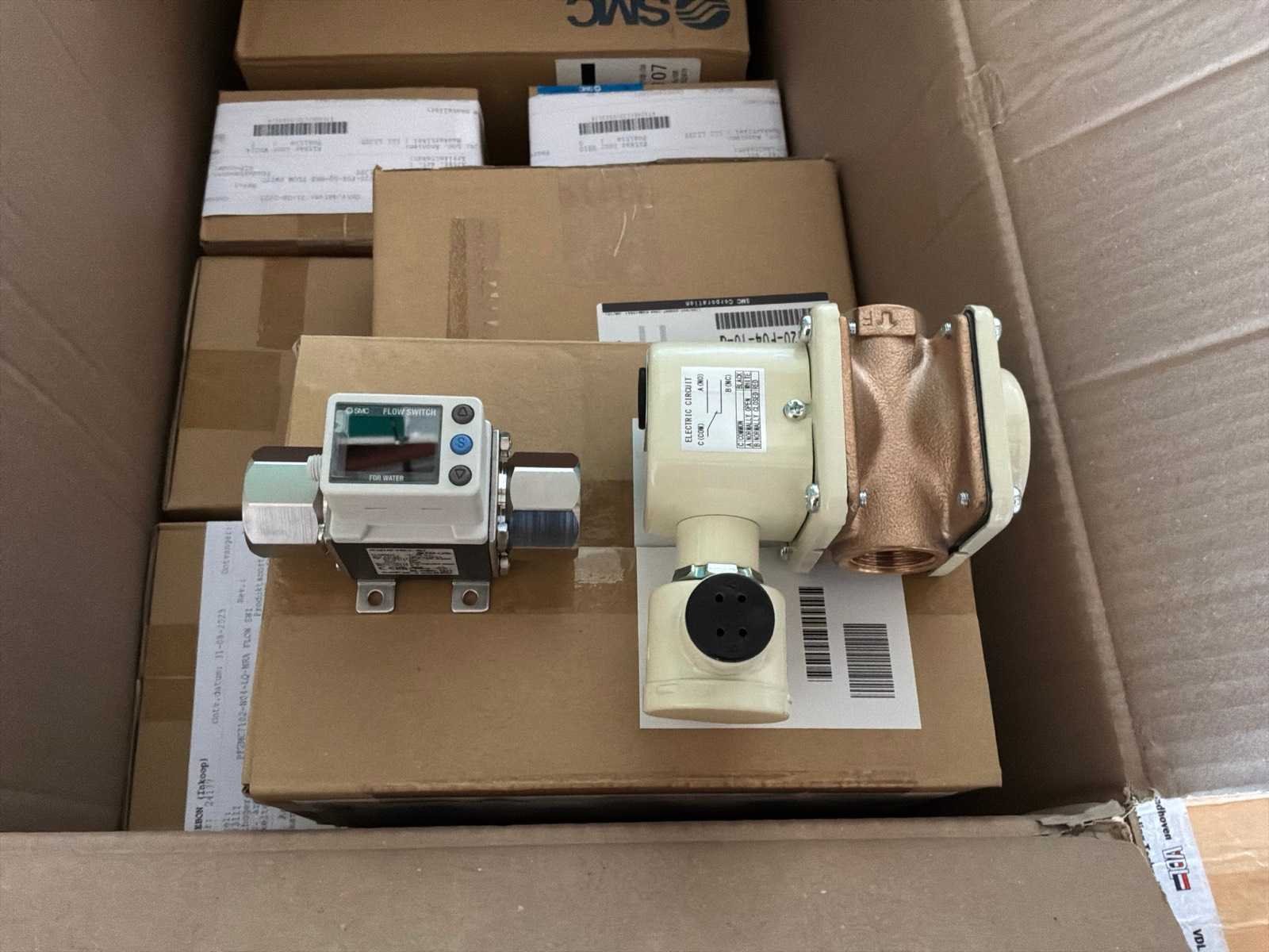 Diverse machineonderdelen behorend tot lot nr. 5, bestaande uit onder andere: roestvrijstalen onderdelen, diverse elektrische componenten, drukkleppen, klemmen, kabels, AC-aandrijvingen, flowmeter, aluminium buizen, diverse hozes, 2x mobiele opslagrekken. No