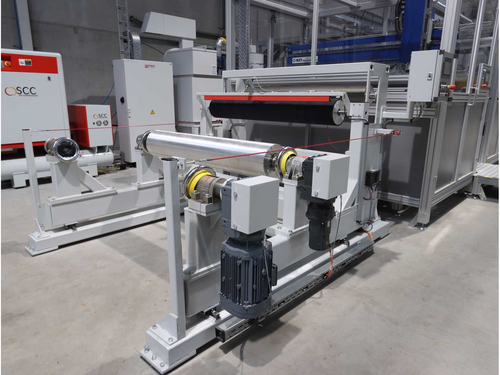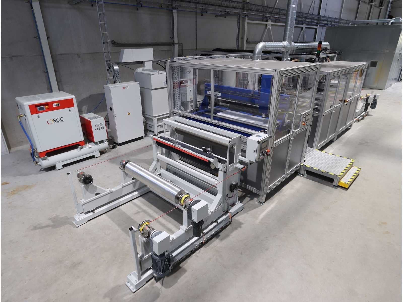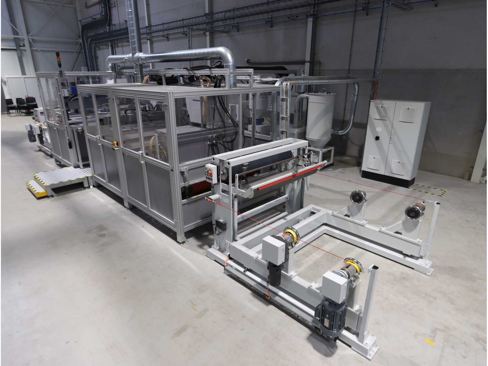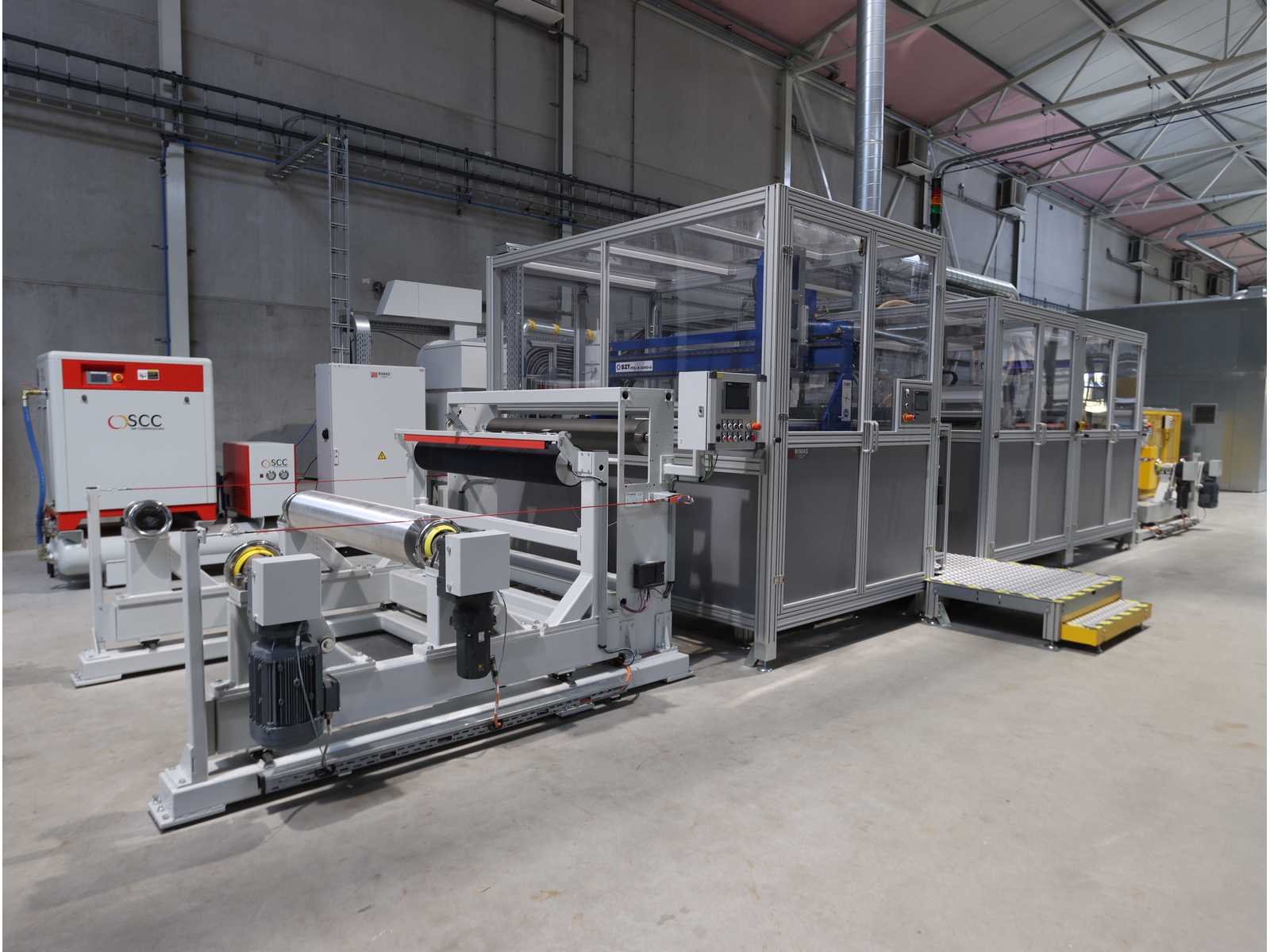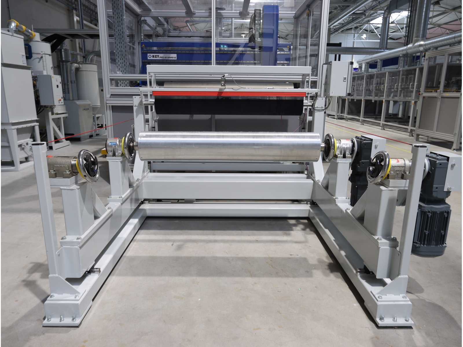 Bestaande uit: 1x "BZT" 3-assige brugfreesmachine type PFU-S 1020-G met "Siemens" touchscreenpaneel en "Vevor" industriële koeler type CW-5200, 1x "Rösler" dwarsstraalkop met "Rösler" droogstraalunit gecombineerd met "Nederman" stofafzuiger type MJC-MINI (2023), 1x borstelwalsreinigingsunit met "Milltech" stofafzuiger type HVU solo 18 performance, 2x "Schuur" winder type AFW-2-1400-1200-12-B 1x uitgerust met "Siemens" touchscreenpaneel en 2-deurs schakelkast, Gebruikte vloeroppervlakte ongeveer 12.500x6200 mm No Merk: Rimas Type: roll-to-roll Bouwjaar: 2022 Werkbreedte: 1400mm Aansluiting: 400V