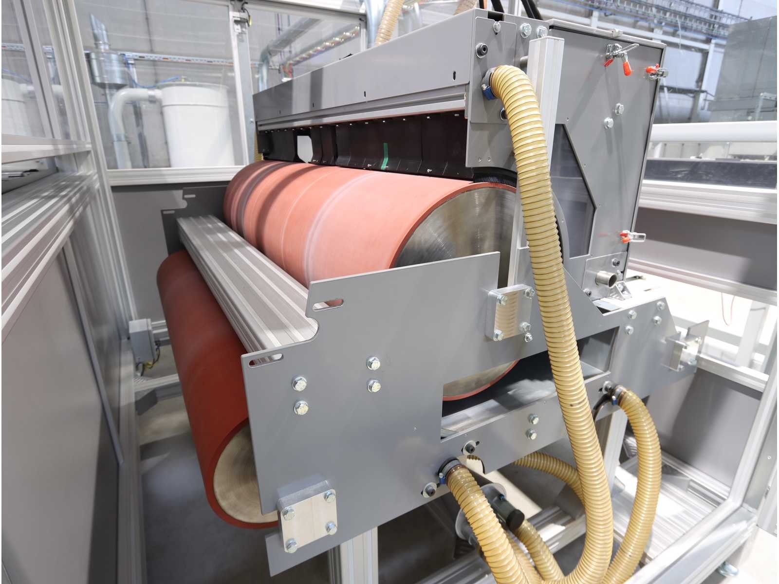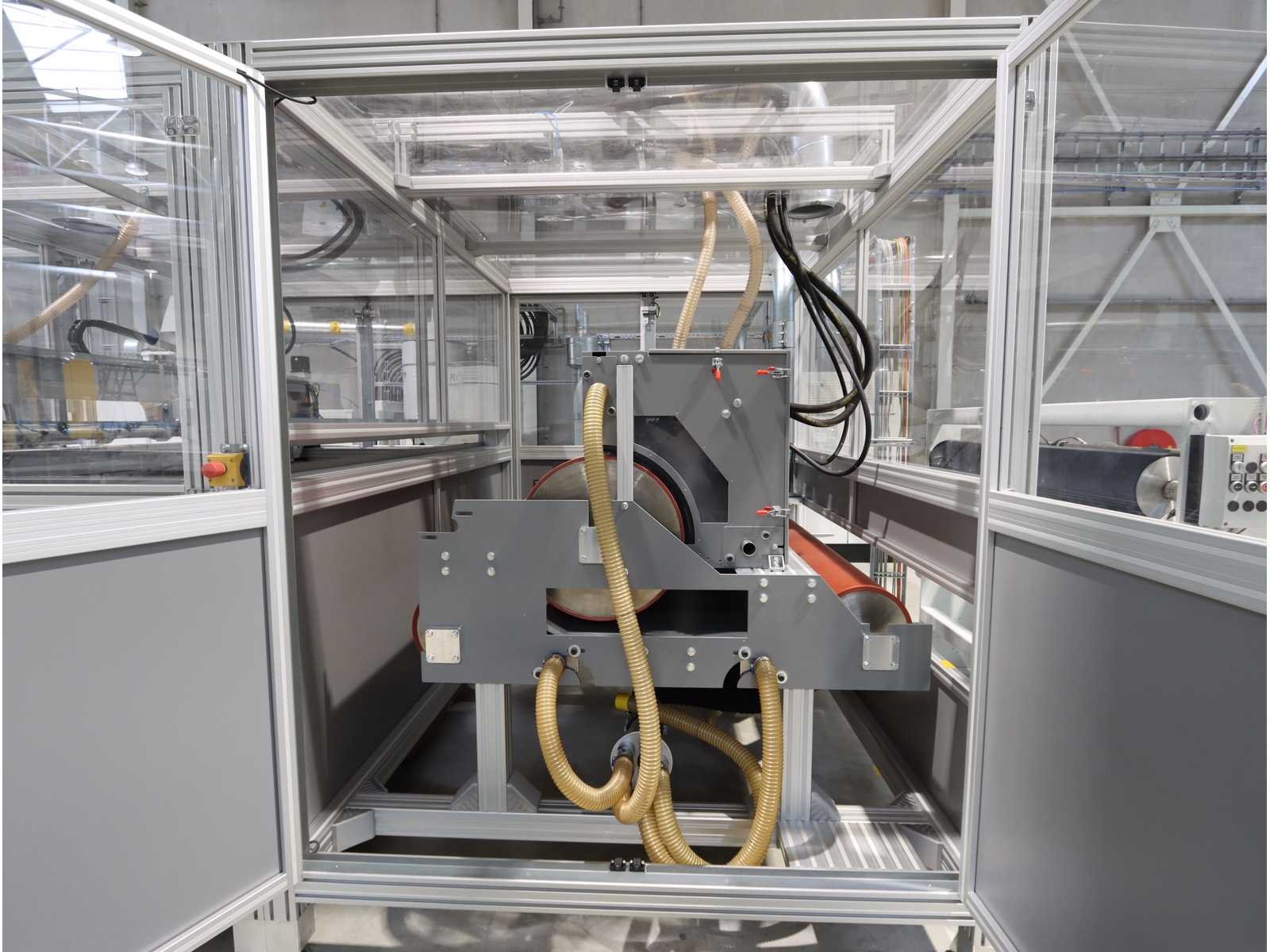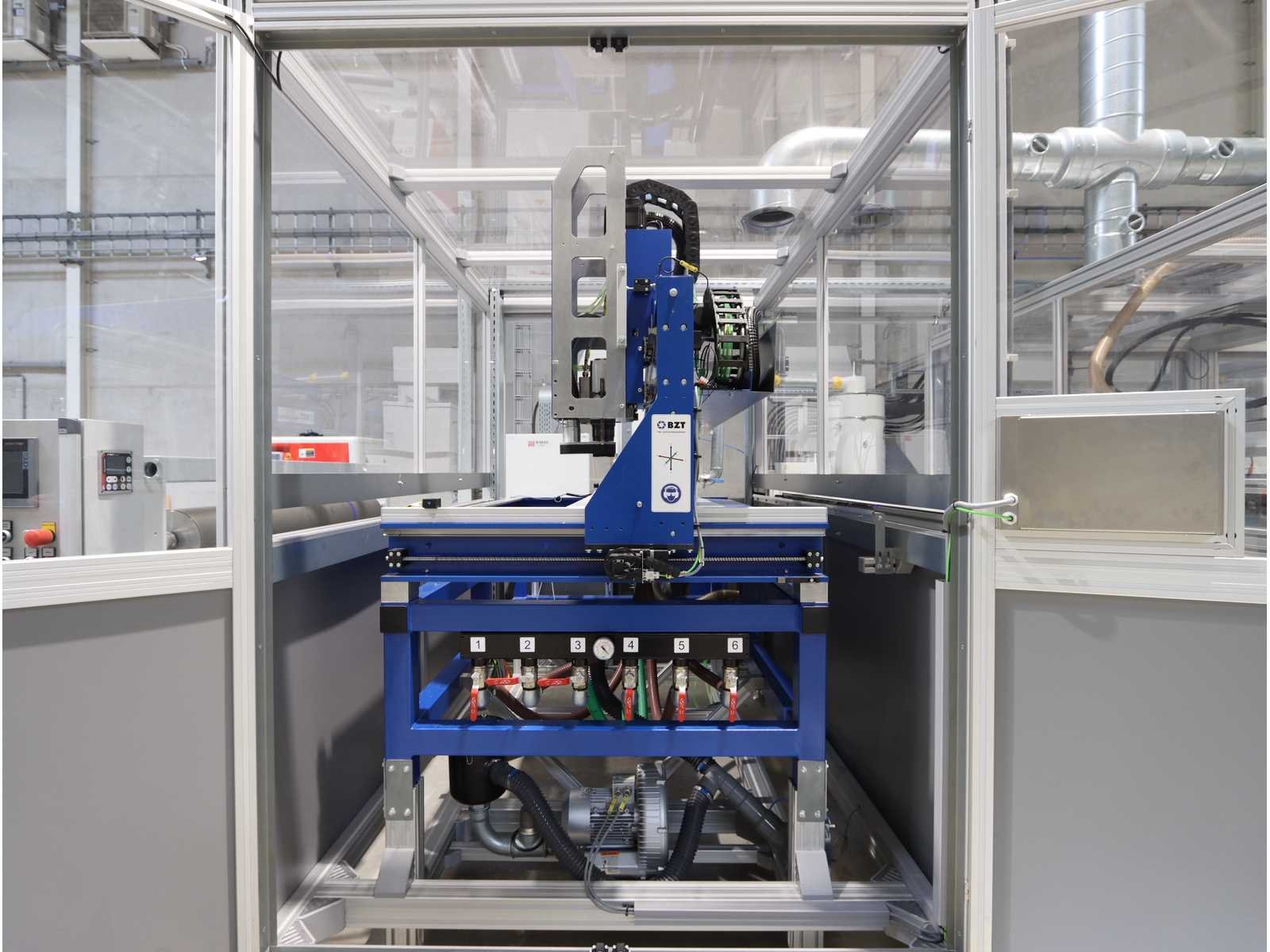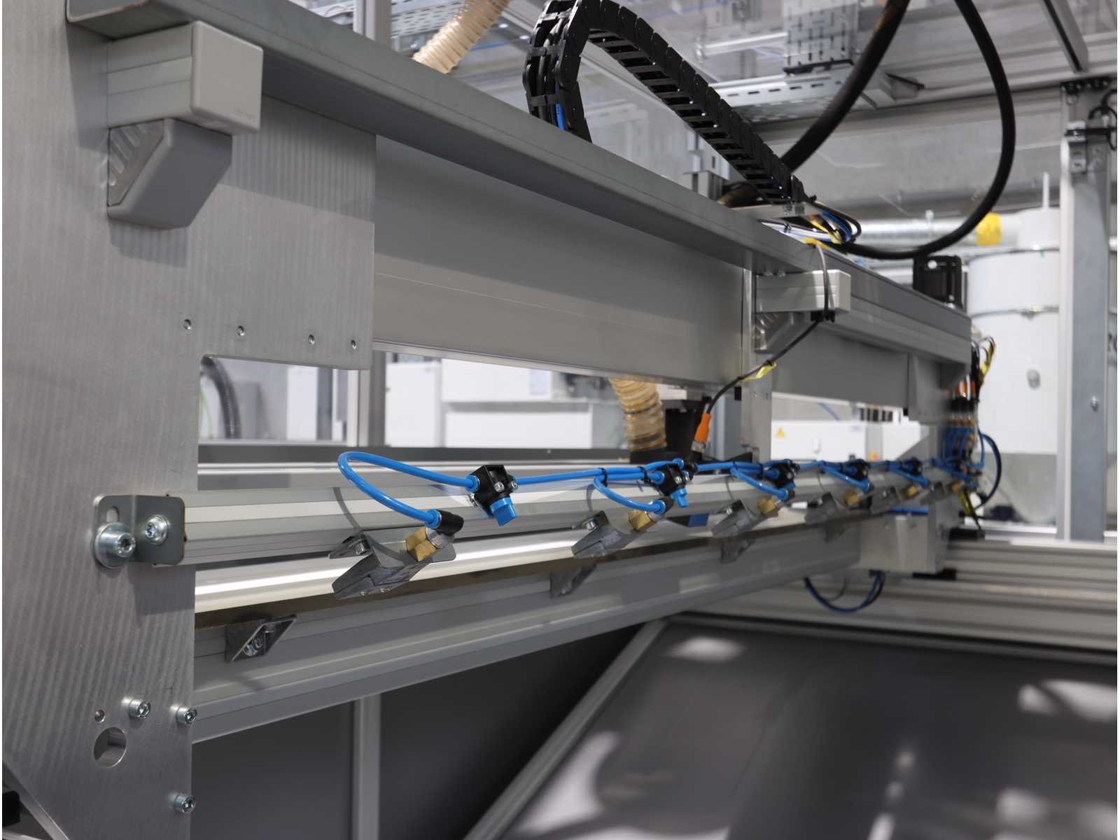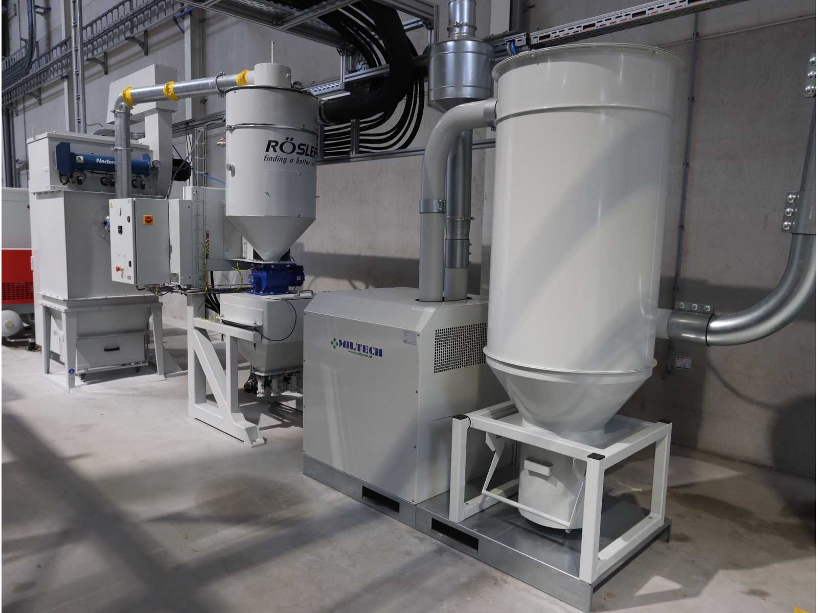 Bestaande uit: 1x "BZT" 3-assige brugfreesmachine type PFU-S 1020-G met "Siemens" touchscreenpaneel en "Vevor" industriële koeler type CW-5200, 1x "Rösler" dwarsstraalkop met "Rösler" droogstraalunit gecombineerd met "Nederman" stofafzuiger type MJC-MINI (2023), 1x borstelwalsreinigingsunit met "Milltech" stofafzuiger type HVU solo 18 performance, 2x "Schuur" winder type AFW-2-1400-1200-12-B 1x uitgerust met "Siemens" touchscreenpaneel en 2-deurs schakelkast, Gebruikte vloeroppervlakte ongeveer 12.500x6200 mm No Merk: Rimas Type: roll-to-roll Bouwjaar: 2022 Werkbreedte: 1400mm Aansluiting: 400V