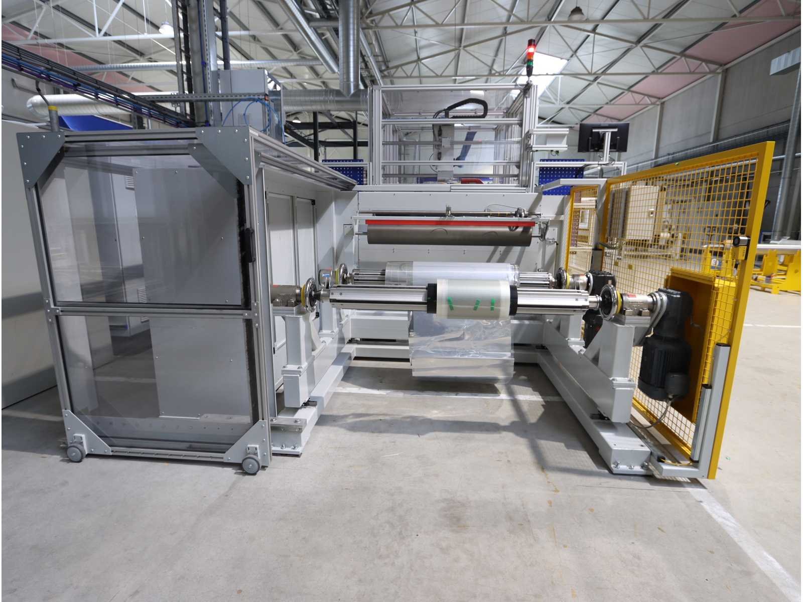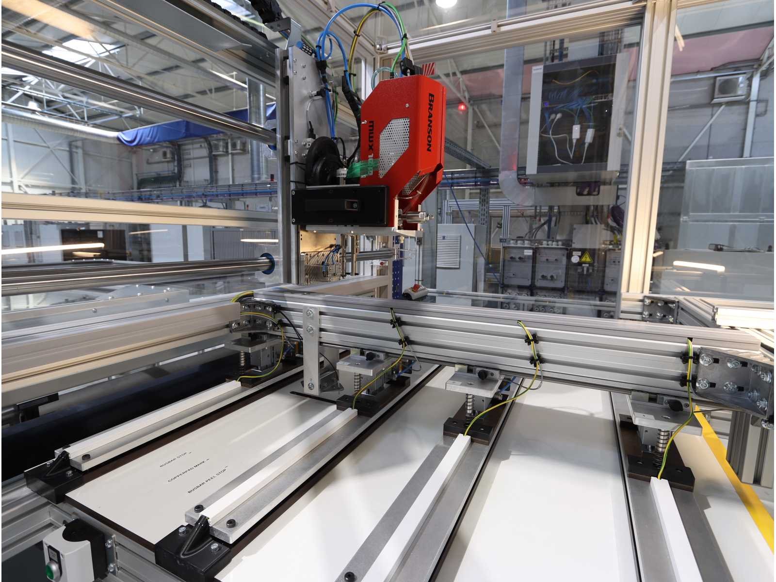 Bestaande uit: "Branson" lasunit type MWX100 gebouwd op een dwarssysteem met besturingsmodule type VersaGraphix en reservelasunit MWX100, 2x "Sander" winder types ABW + AFW-2-1400-1200-12-B met 1x "Siemens" touchscreenpaneel, beide uitgerust met koelventilatie en behuizing, "Sander" 2-deurs schakelkast, gebruikte vloeroppervlakte ongeveer 7.800x3600 mm, totaalgewicht ongeveer 5000 kg No Merk: Rimas/Branson Bouwjaar: 2023 Type: roll-to-roll Werkbreedte: 1400mm Aansluiting: 400V