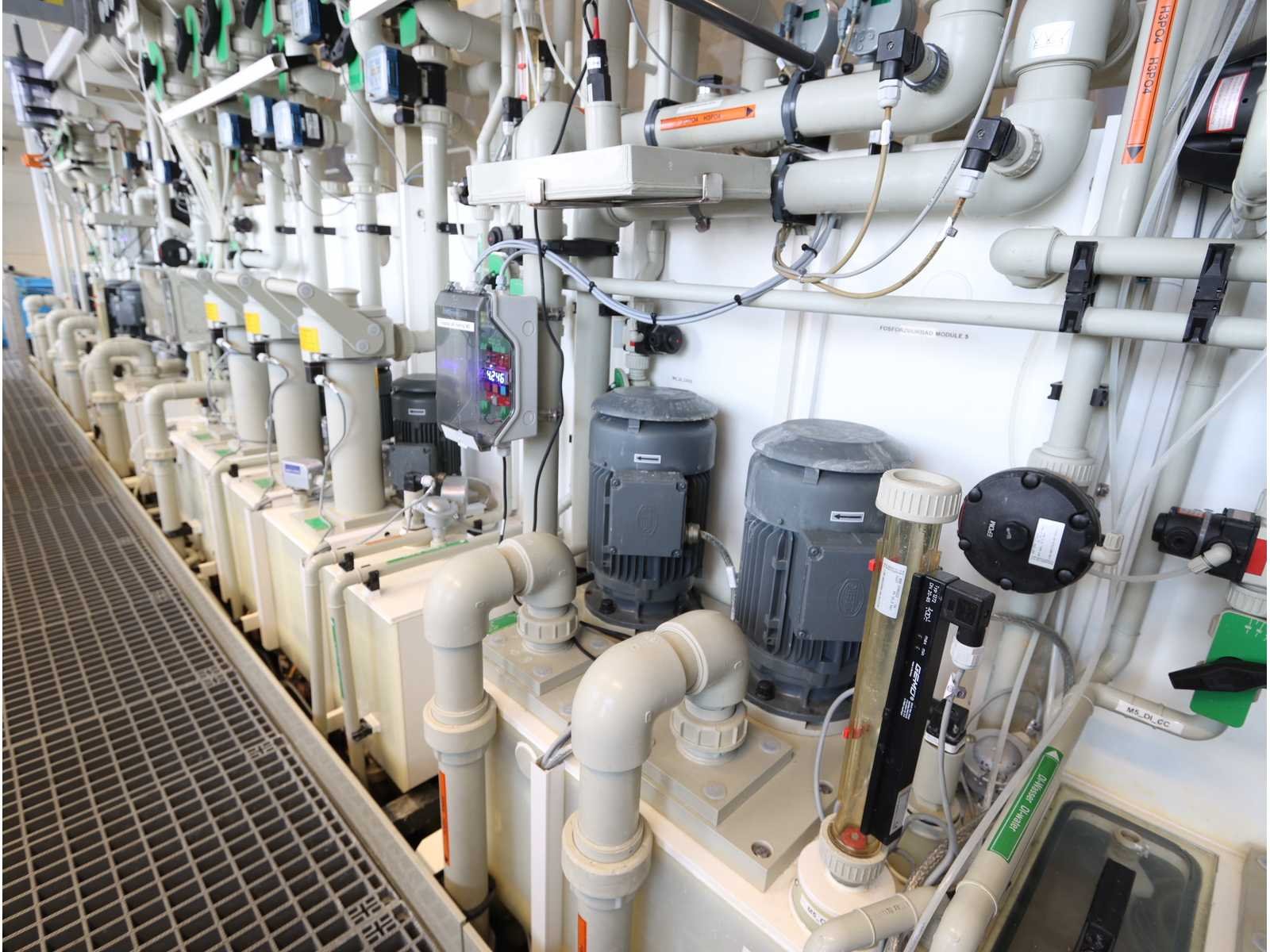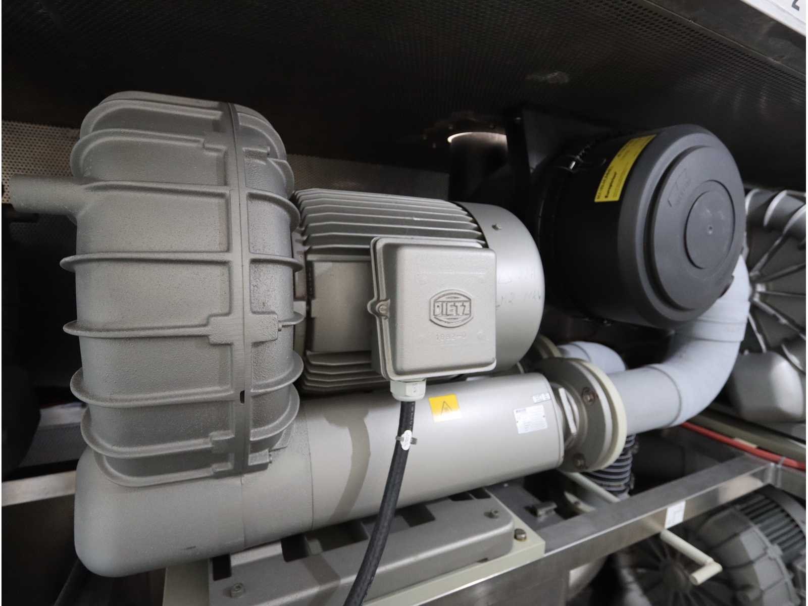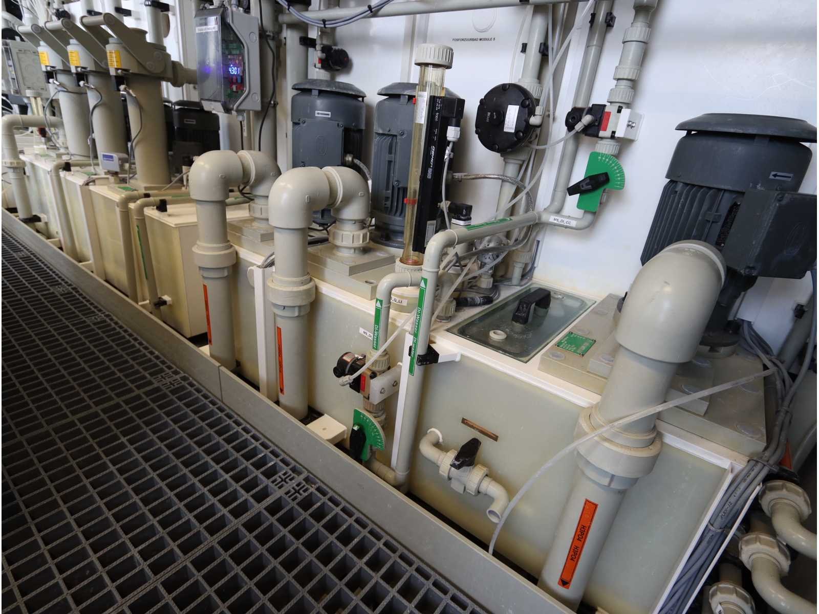 Bestaande uit: 8 verbonden procesmodules: toevoer, voorspoeling, blow-off, bijtenbad, blaasafblaas, spoelbad met 4-staps cascadespoeler, zuur, flush met 4-stap cascade spoelmachine, isolatie- en droogmodule, 2x "Kampf" winder/unwinder unit met "Boschert" veiligheidschucks, 2-deurs elektrische schakelkast, 4x "Becker" vacuümpomp type SV5.1050/1-01 verborgen in een geluidsdichte roestvrijstalen kast (2008), Poederdoserings-/mengunit, 6-deurs elektrische schakelkast, roestvrijstalen loopplatforms met een plastic roostervloer en trap, gebruikte vloeroppervlak ongeveer 17.500x6000 mm No Merk: TSK SCHILL Bouwjaar: 2022 Type: roll-to-roll Werkbreedte: 1400mm Aansluiting: 400V