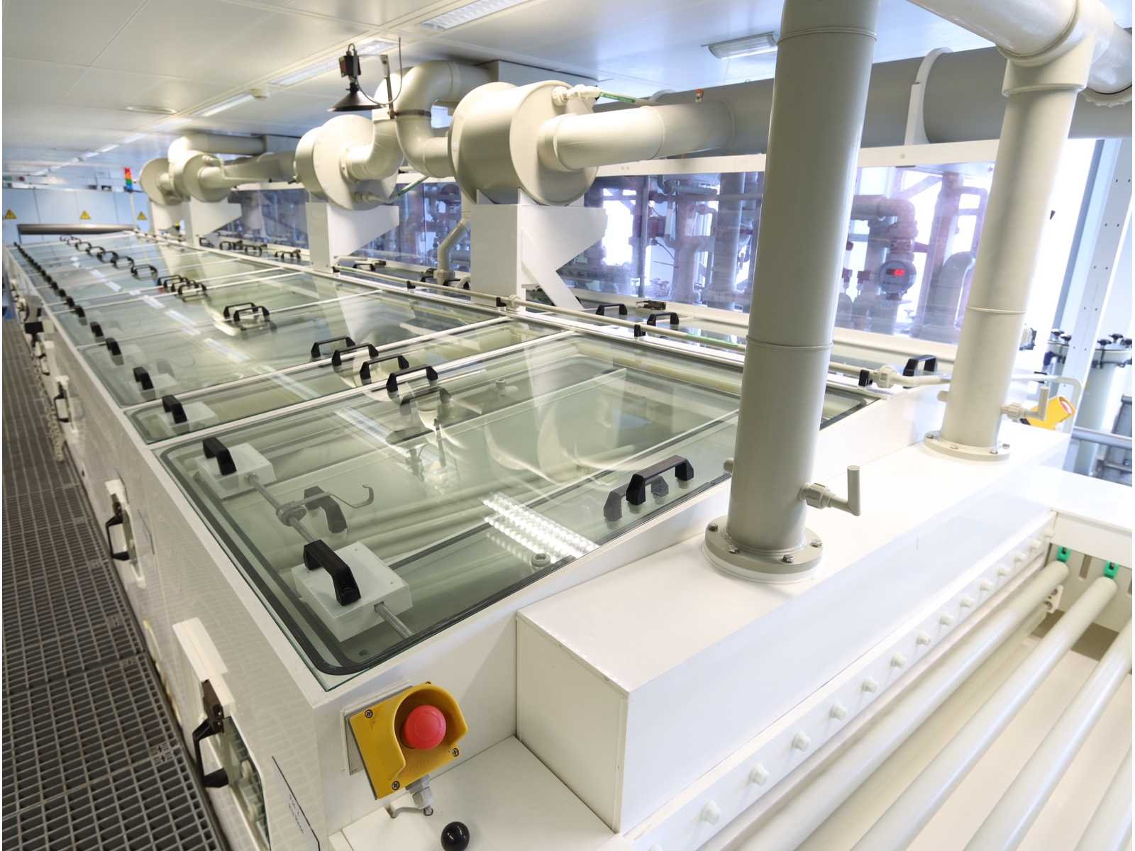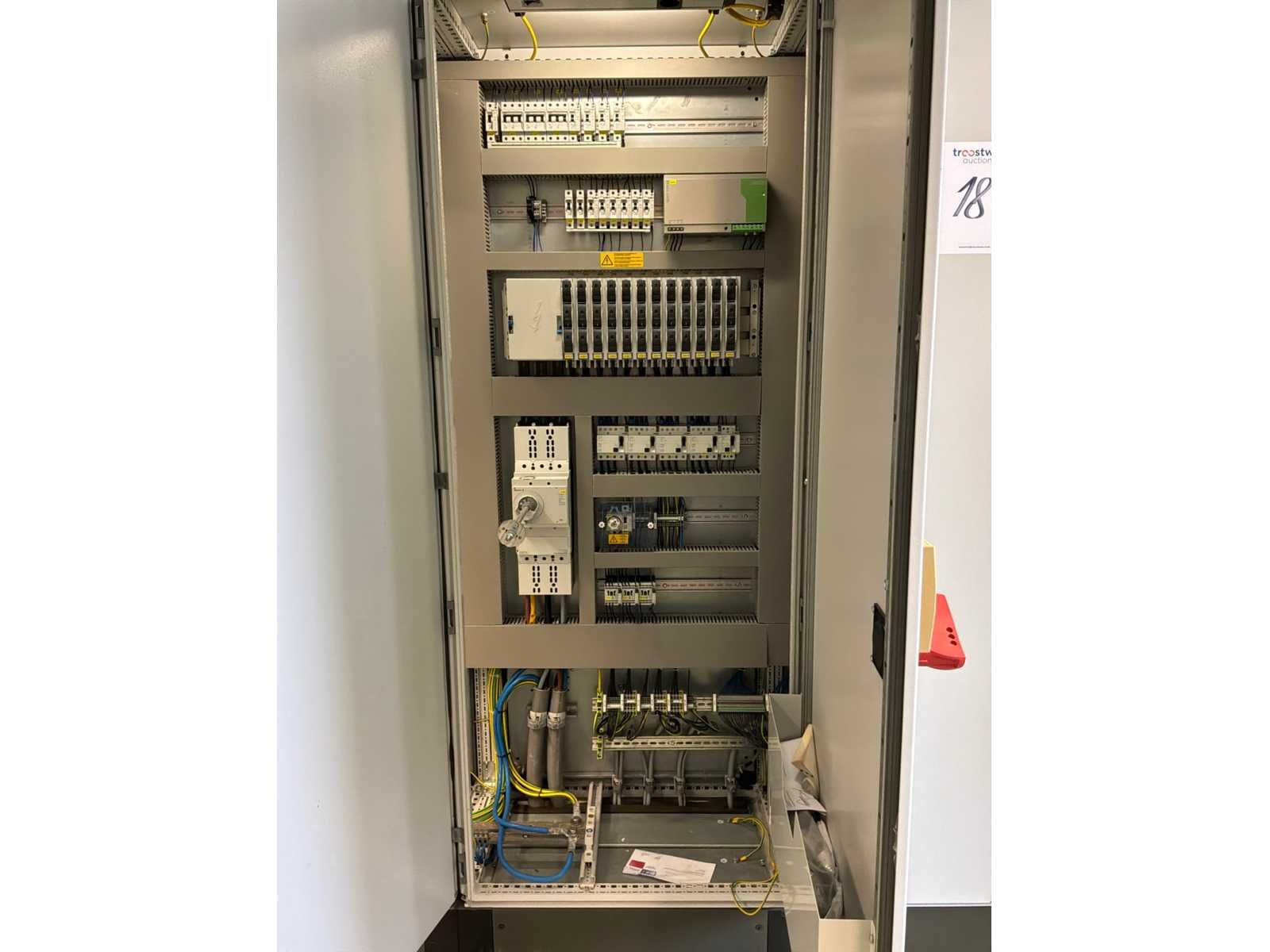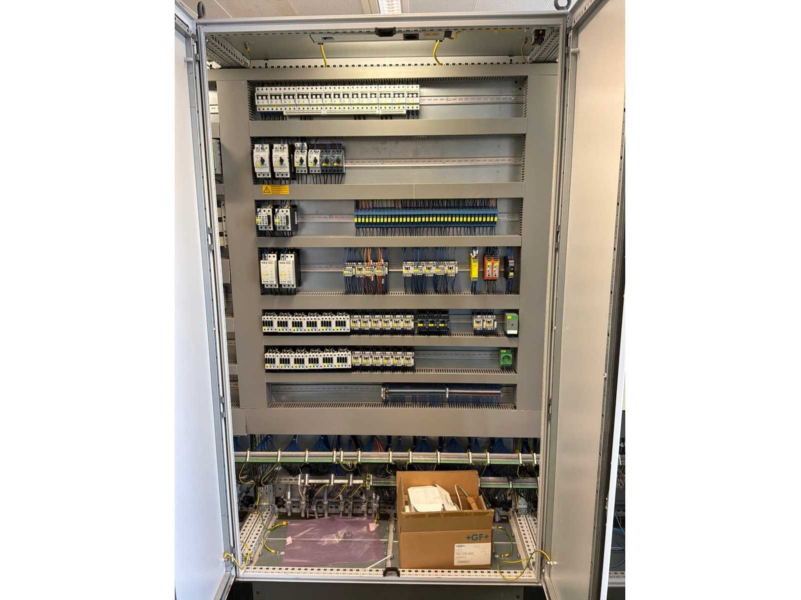 Bestaande uit: 8 verbonden procesmodules: toevoer, voorspoeling, blow-off, bijtenbad, blaasafblaas, spoelbad met 4-staps cascadespoeler, zuur, flush met 4-stap cascade spoelmachine, isolatie- en droogmodule, 2x "Kampf" winder/unwinder unit met "Boschert" veiligheidschucks, 2-deurs elektrische schakelkast, 4x "Becker" vacuümpomp type SV5.1050/1-01 verborgen in een geluidsdichte roestvrijstalen kast (2008), Poederdoserings-/mengunit, 6-deurs elektrische schakelkast, roestvrijstalen loopplatforms met een plastic roostervloer en trap, gebruikte vloeroppervlak ongeveer 17.500x6000 mm No Merk: TSK SCHILL Bouwjaar: 2022 Type: roll-to-roll Werkbreedte: 1400mm Aansluiting: 400V
