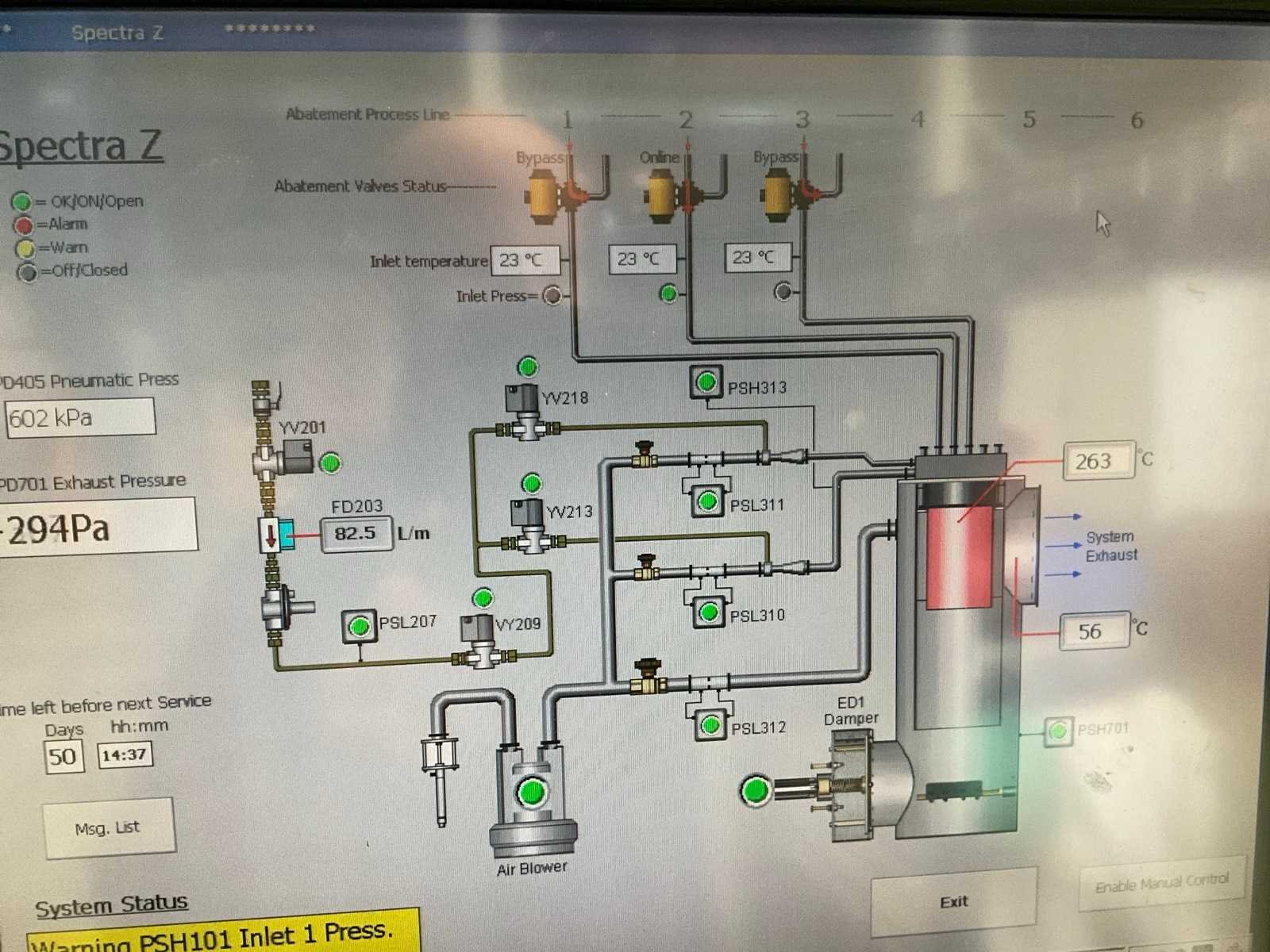 Bestaande uit een gasverbrandingssysteem, PLC-besturing, verzamelfilterunit (buiten geplaatst), filterunit vloeroppervlak 5200 x 3000 millimeter, 3x schuifkleppen, grote zak verzameling, centrifugaalventilator No Merk: EDWARDS Type: SPECTRA Z Bouwjaar: 2010 Serienummer: 106277528
