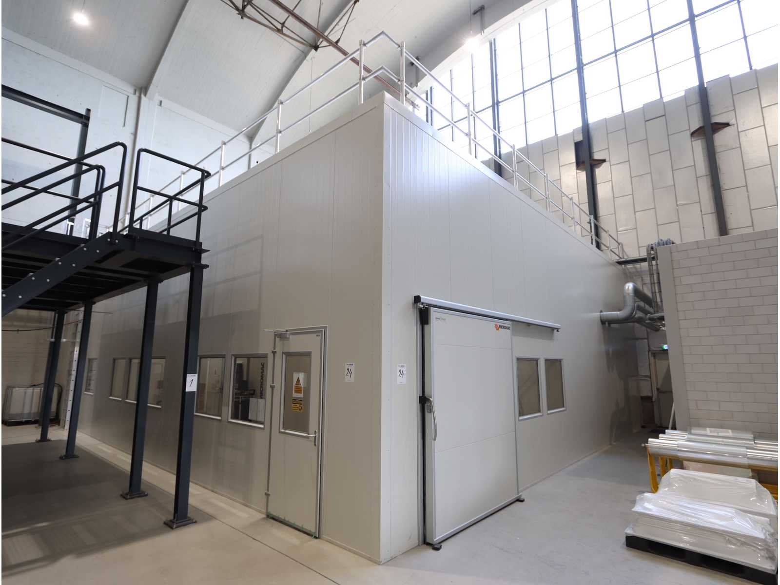 3-zijdig met schuifdeur, 8 ramen, instapdeur, overhangende reiskraan met "Konecranes" elektrische kettinghijscapaciteit 1250 kg, LED-lampen, stalen constructie en bovenop gebouwde "Robatherm" luchtbehandelingsunit type Tl50-09/12, capaciteit 7640m³, bestaande uit: 2 filterunits, 2 dempers, 2 ventilatoren, luchtbevochtiger en ingebouwde E-heater (koelunit niet inbegrepen) No Merk: Unisol Panel Bouwjaar: 2022 Totale afmeting L: 12500mm Totale afmeting Breedte: 15000mm Totale afmeting Hoogte: 5050mm